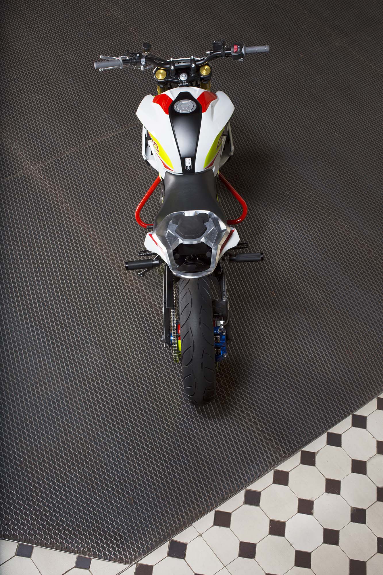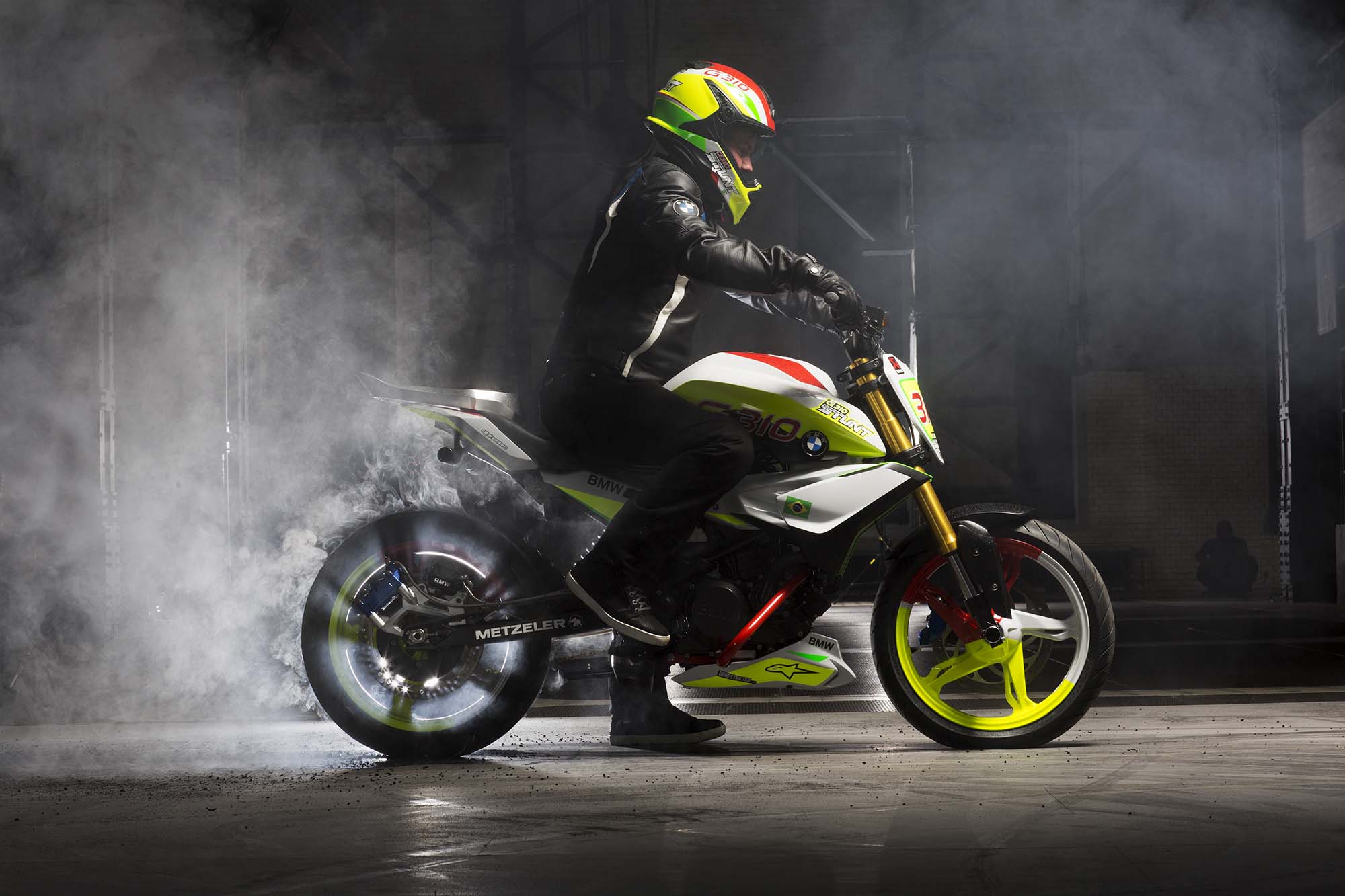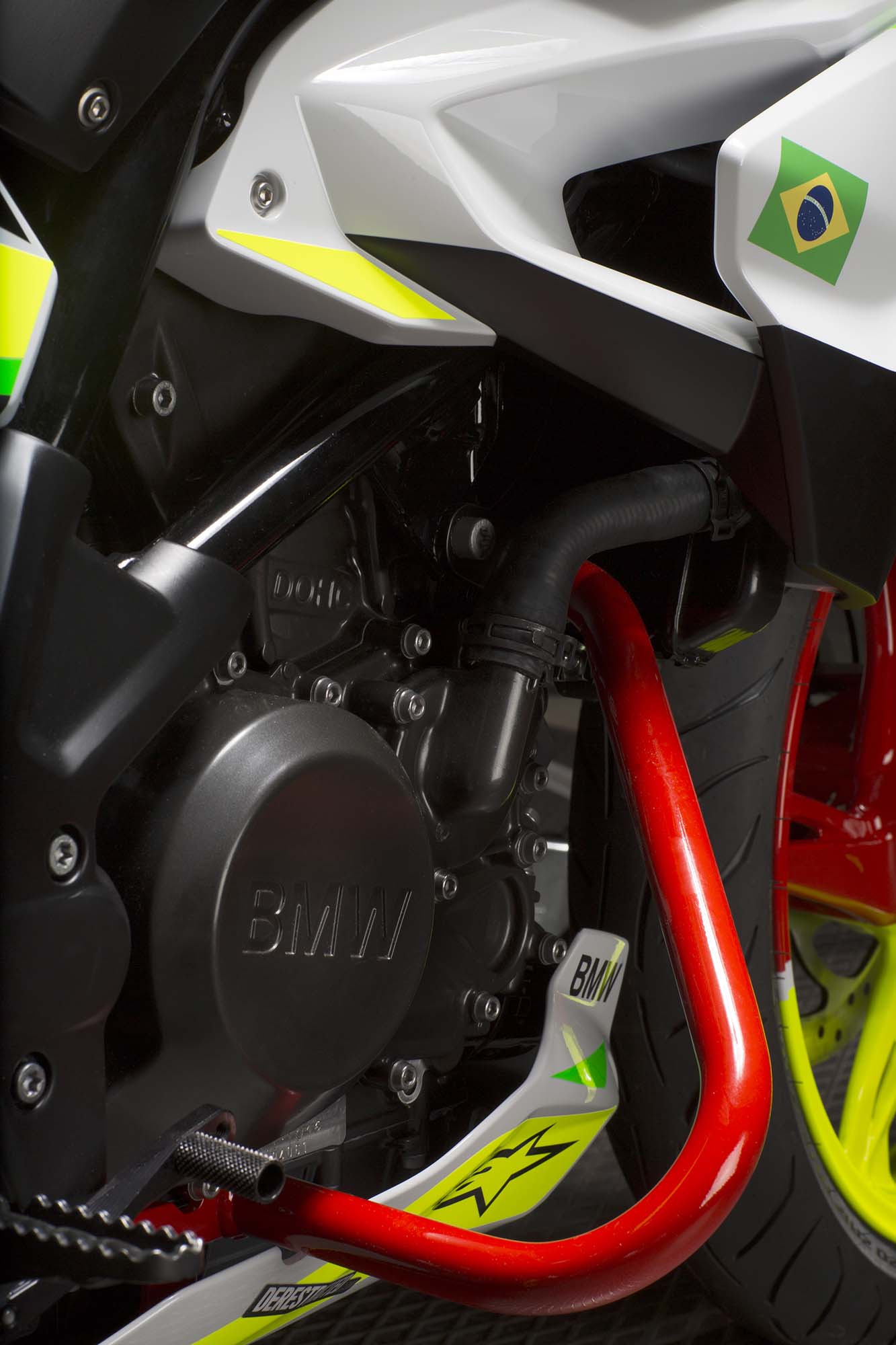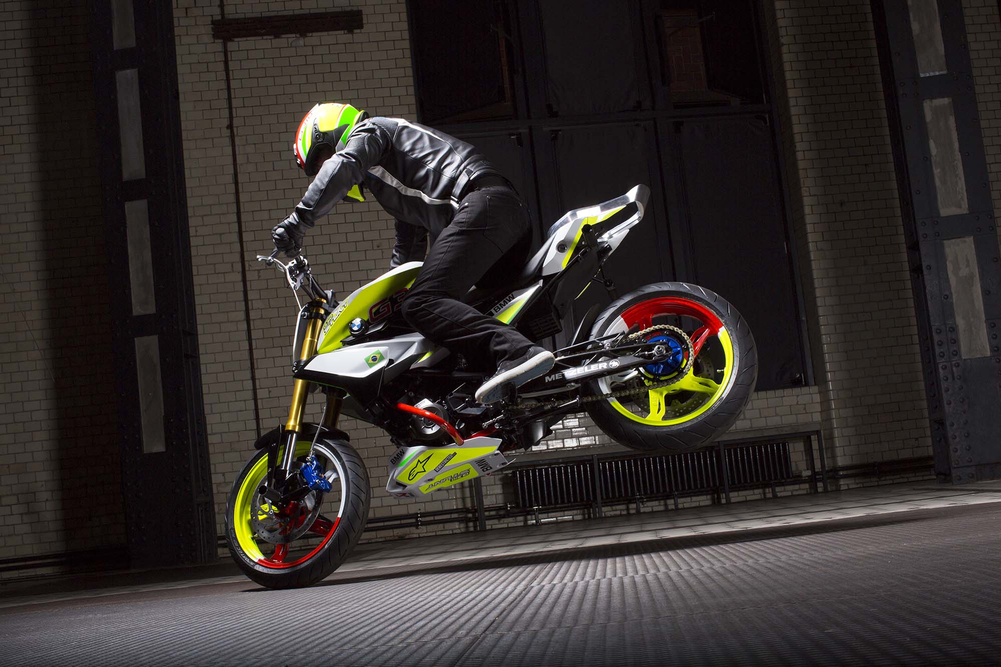 Overall the design is fetching, once your seizure from the bright colors stops. BMW seems to be using the same strategy that we say KTM employ when bringing out its small-displacement line: appealing to younger riders through hooligan antics.