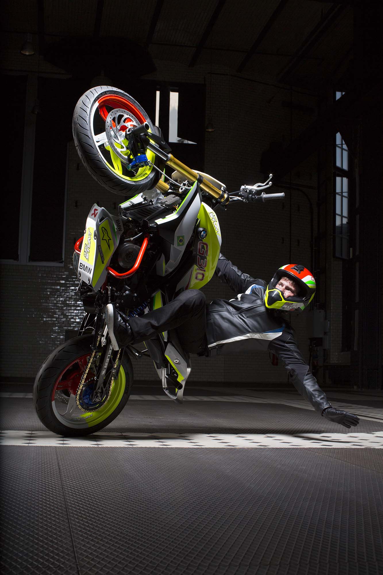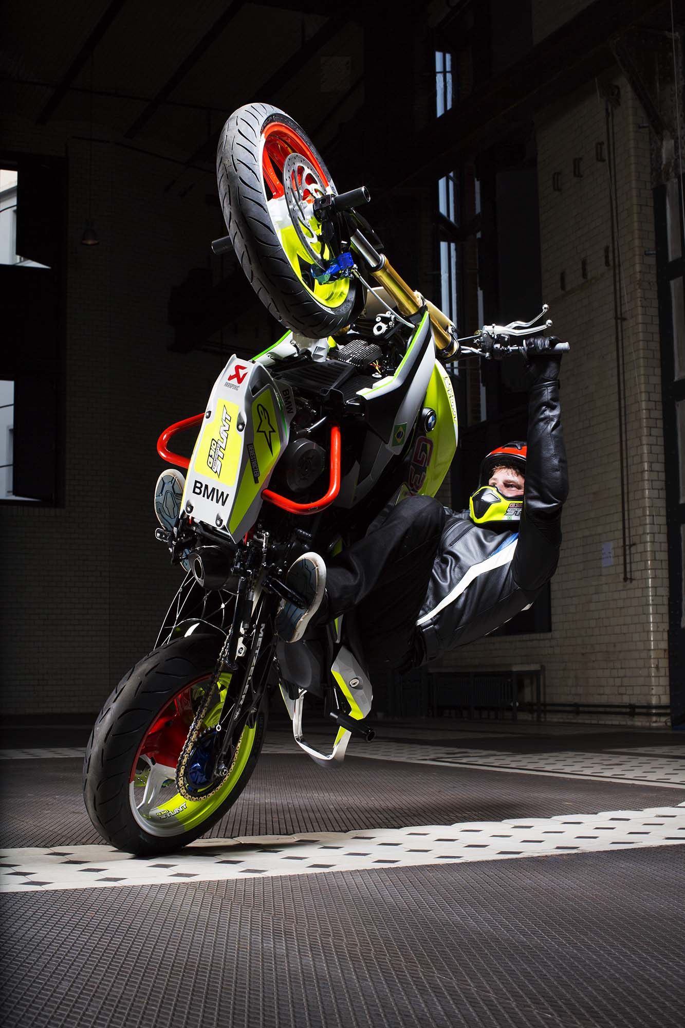 The now retired stunt rider helped BMW develop a number of stunting-focused features for the Stunt G 310. There is a lockable throttle, for when the stunter’s right hand is off the throttle. Also, the gear ratio has also been changed for down-low acceleration, while the rear brake disc has been oversized for easy stopping maneuvers.
