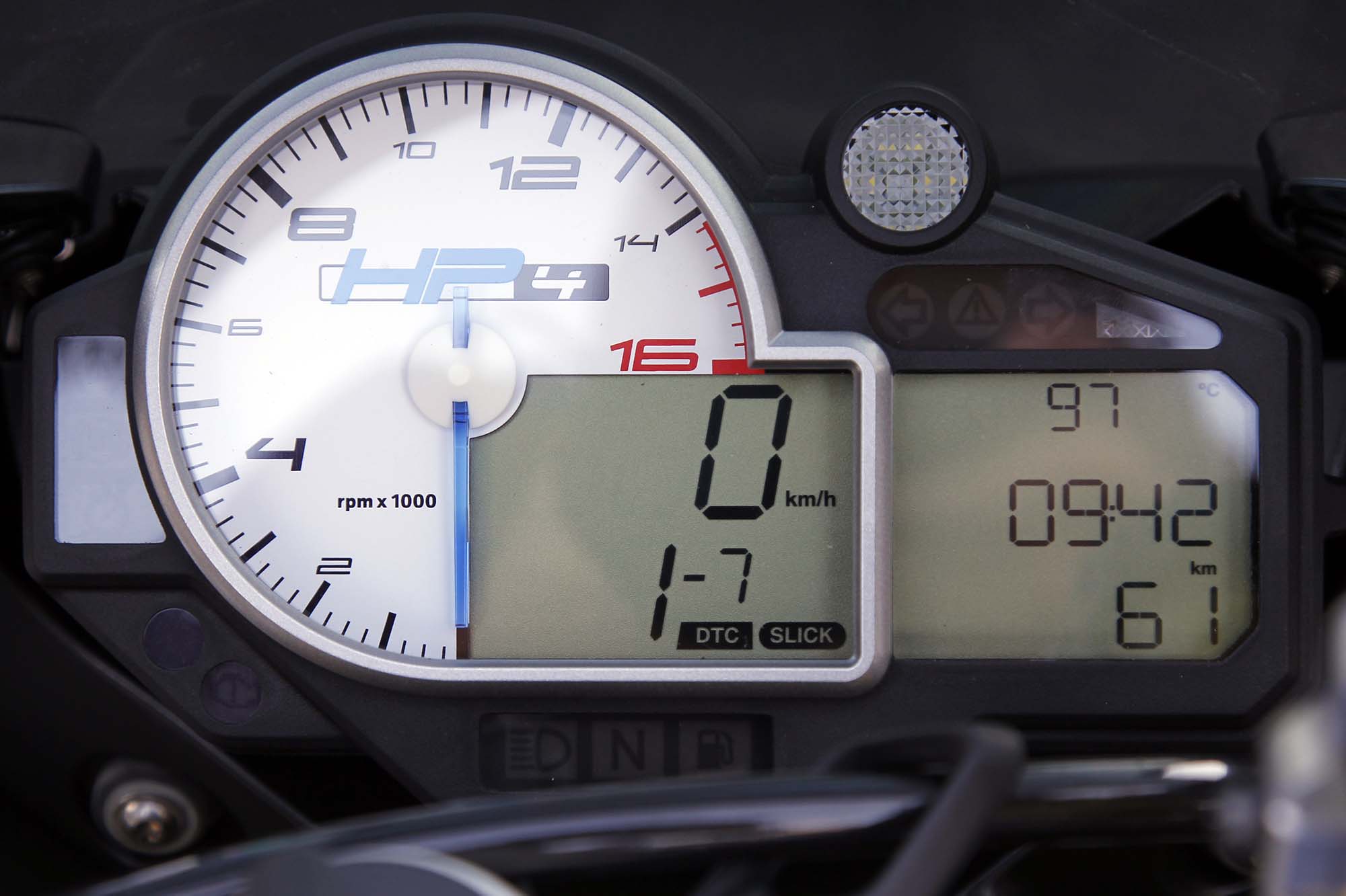 Getting a number of improvements over the S1000RR, the BMW HP4 maintains the same 193hp peak horsepower figure, but gets a boost from more mid-range torque. As we said, the BMW HP4 is also more svelte than its predecessor, as it sits at 439 lbs / 199 kg at the curb with the fuel tank 90% full — a full 13 lbs lighter when wet, and 26 lbs lighter when dry. Other changes include a revised traction control system, launch control, quick-shifter, and a 200/55 ZR 17 rear-tire size.
