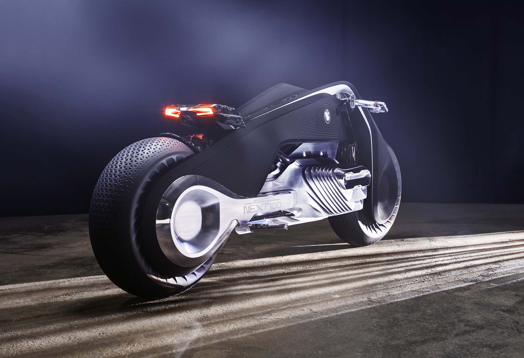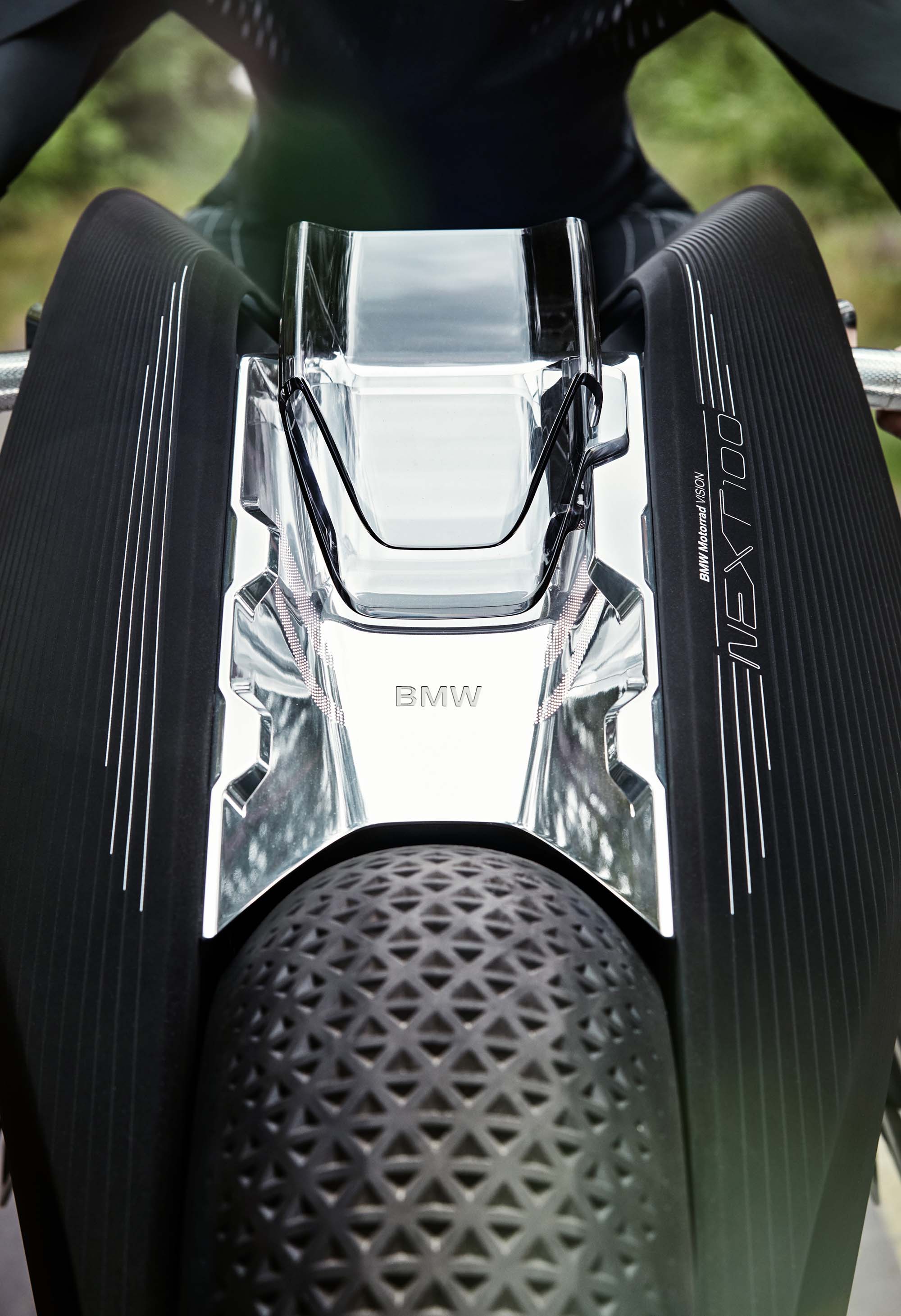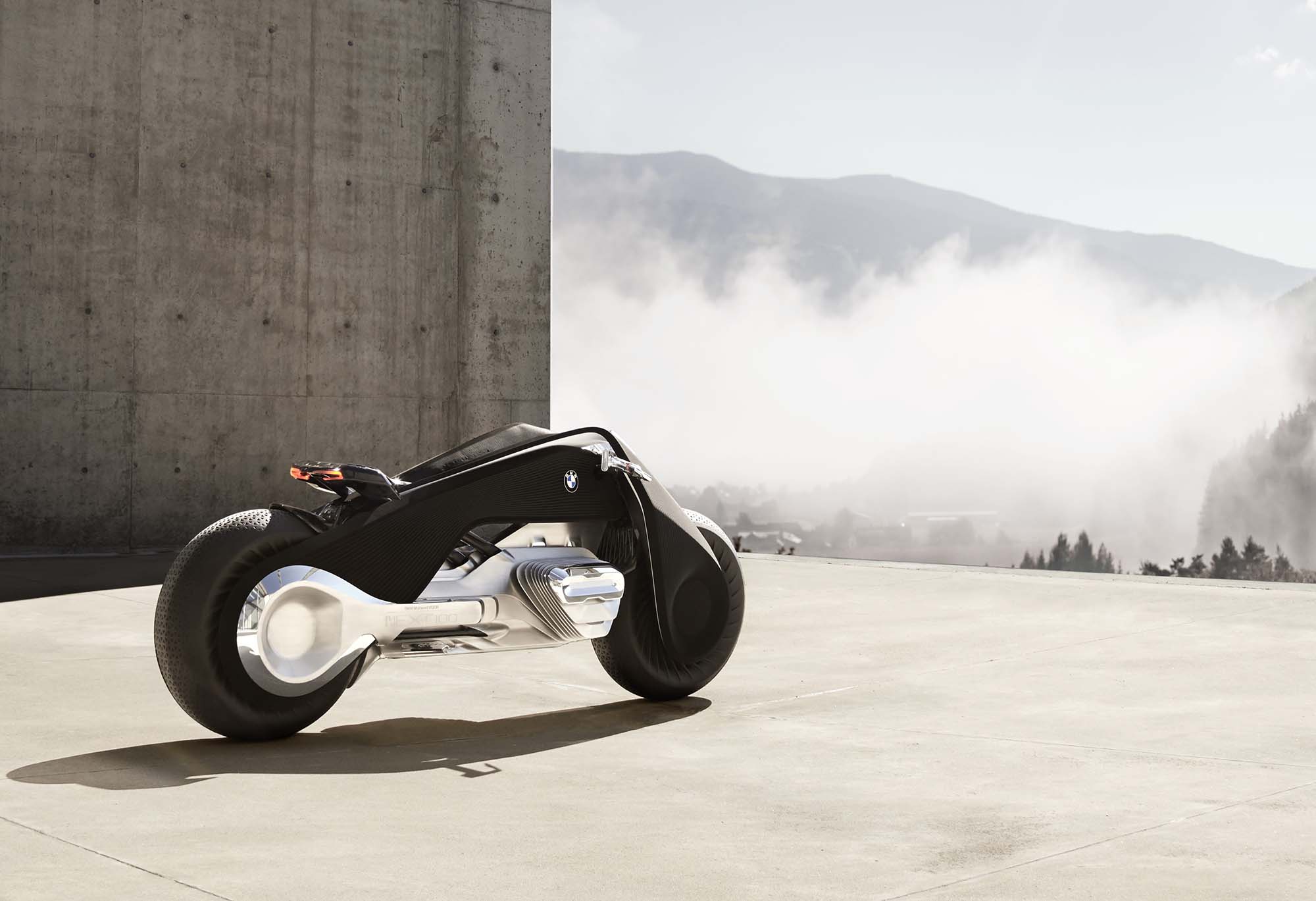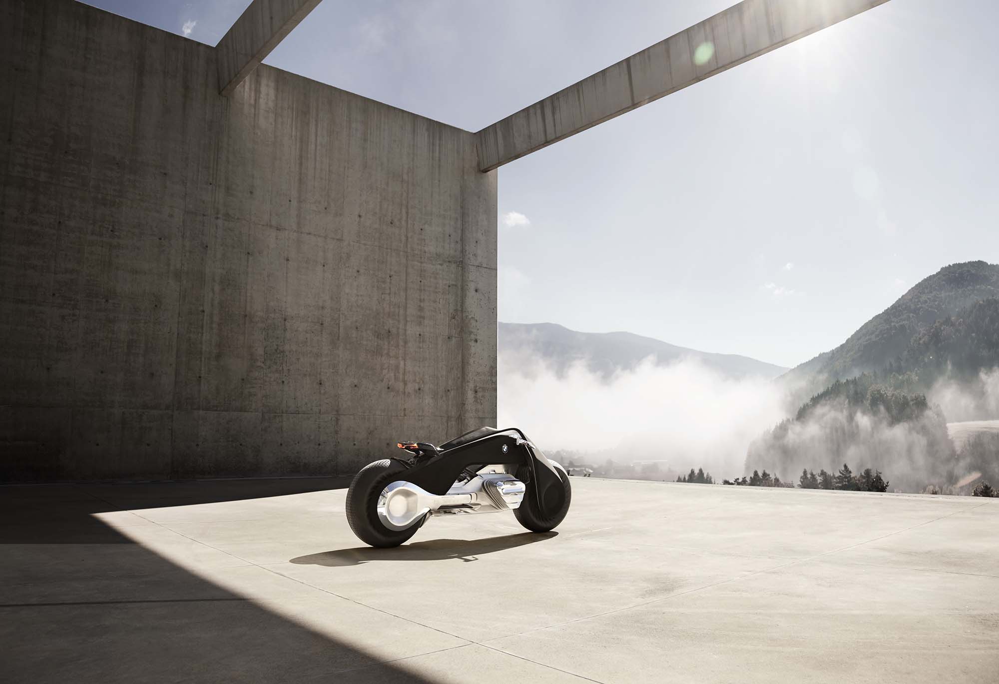 The BMW Motorrad VISION NEXT 100 is self-balancing, which means the bike not only stays upright when you park it, but the system also serves as type of stability control when the motorcycle is in motion.