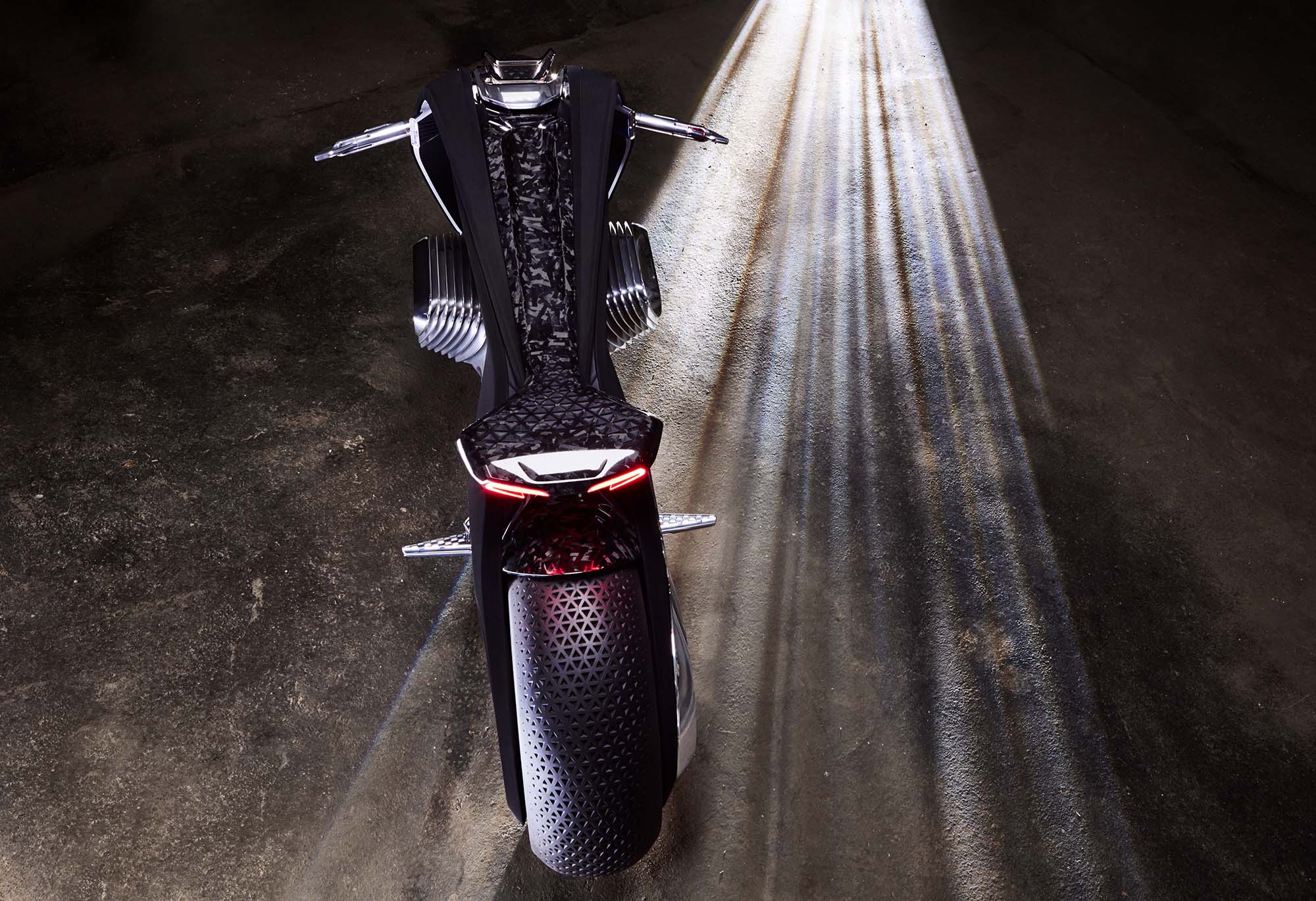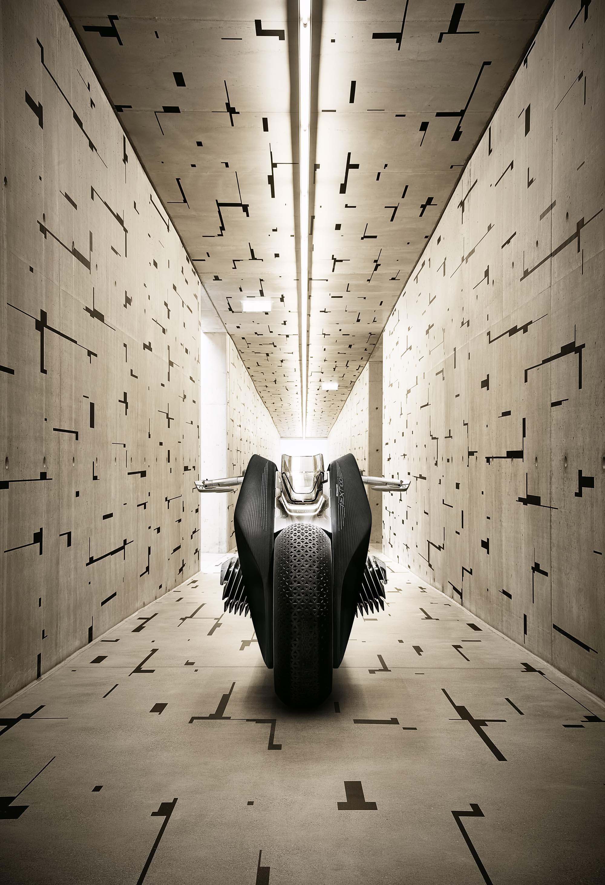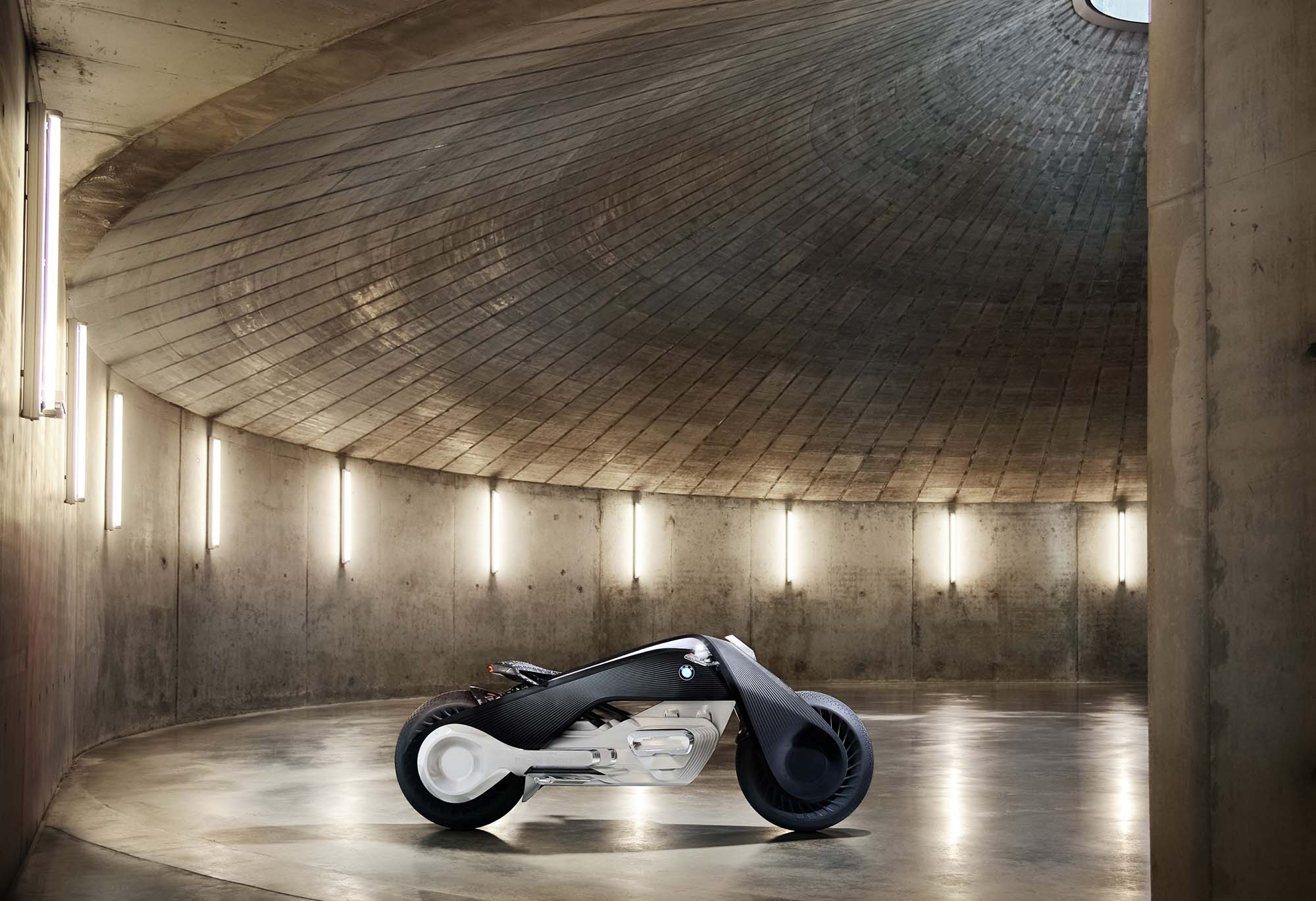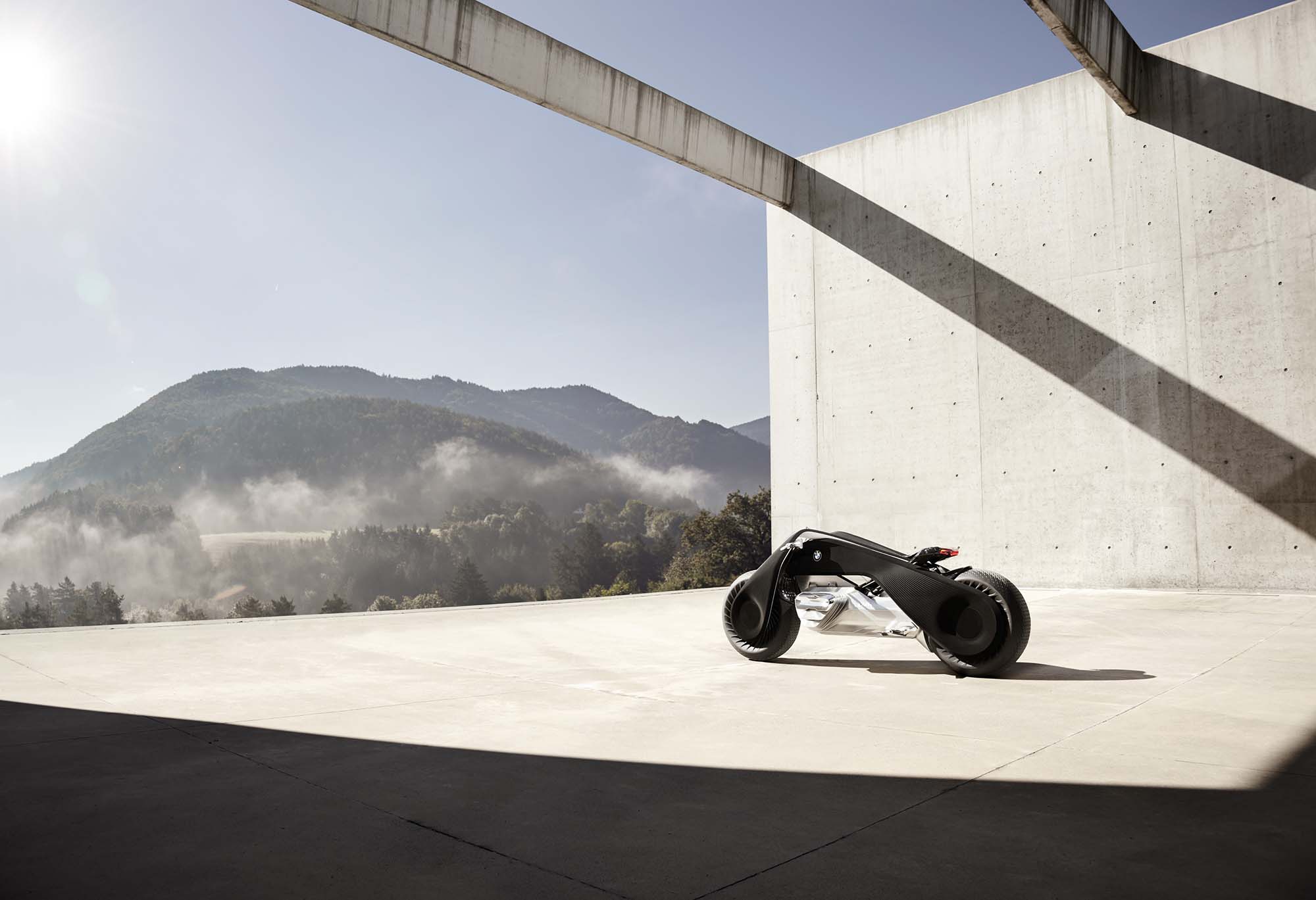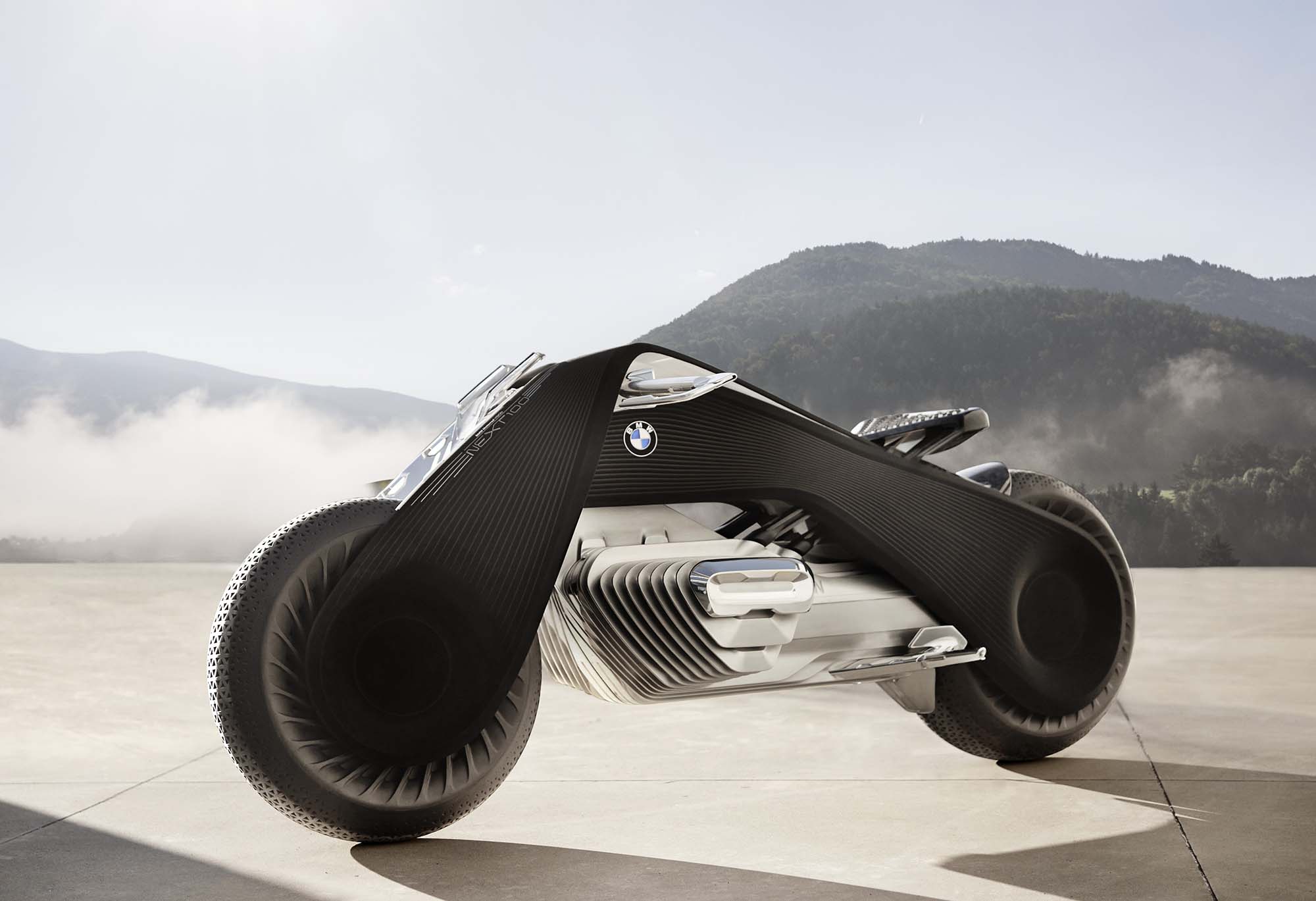 The BMW Motorrad VISION NEXT 100 is self-balancing, which means the bike not only stays upright when you park it, but the system also serves as type of stability control when the motorcycle is in motion.