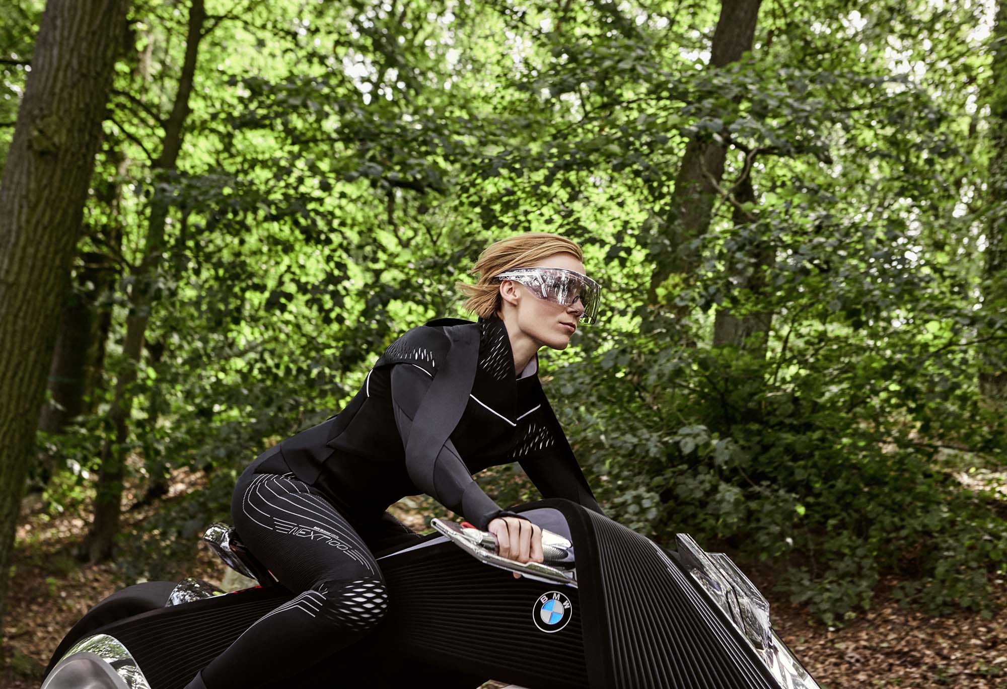 BMW actually sees a future where electronics are so advanced that they make wearing protective gear superfluous. Thus, riding apparel centers around comfort, not safety.