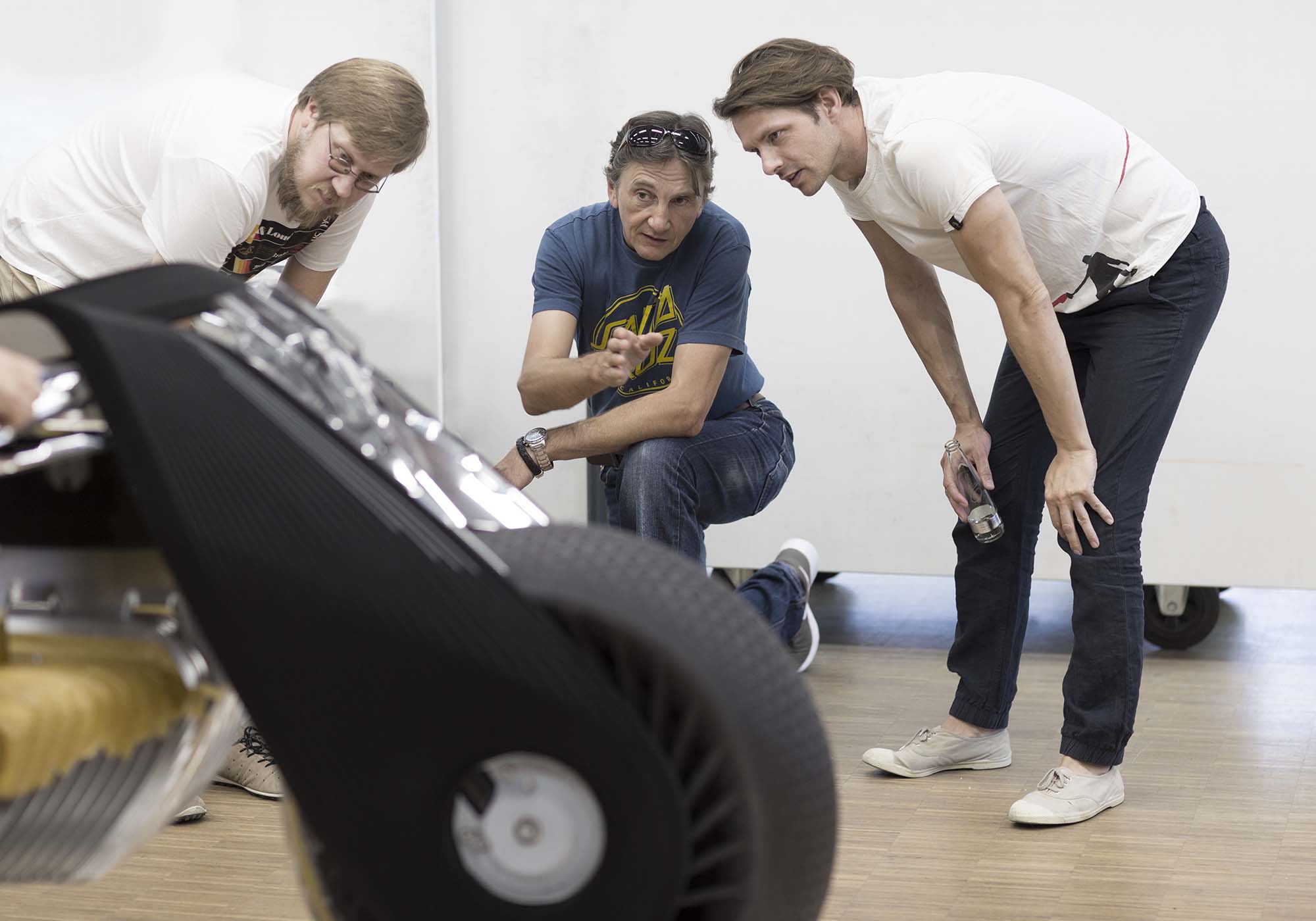Suspension damping is provided by the large tires, whose variable tread adjusts to suit the ground conditions – adapting dynamically to the road grip.
