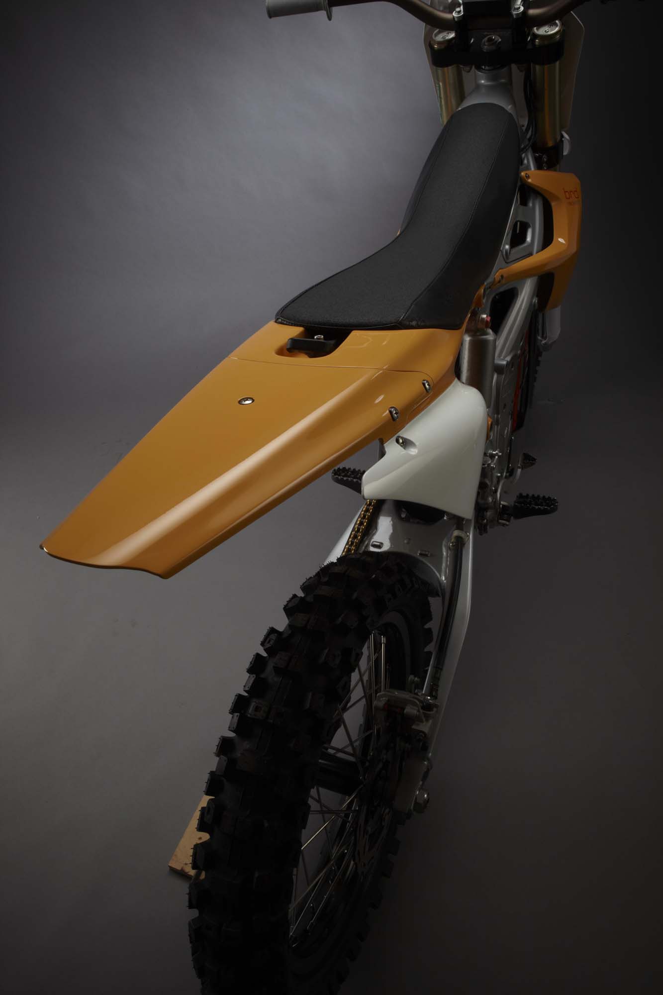Tipping the scales at 270 lbs in street trim, the BRD RedShift MX is a paltry 250 lbs in racing form, which makes for a very competitive power-to-weight ratio in this category of dirt bike. Priced at $14,995, this electric dirt bike is still an expensive proposition (even with its WP suspension), though its competitive race performance, low-cost of use, and super-smooth electric drive train helps make it a more attractive package for more serious riders. Enjoy the high-resolution photos after the jump.
