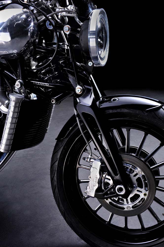 Using an magnesium alloy for the fork legs, and titanium for the suspension triangle, the reincarnation of Brough Superior is true to the original, and is using the most advanced engineering and materials available on the market for its work.