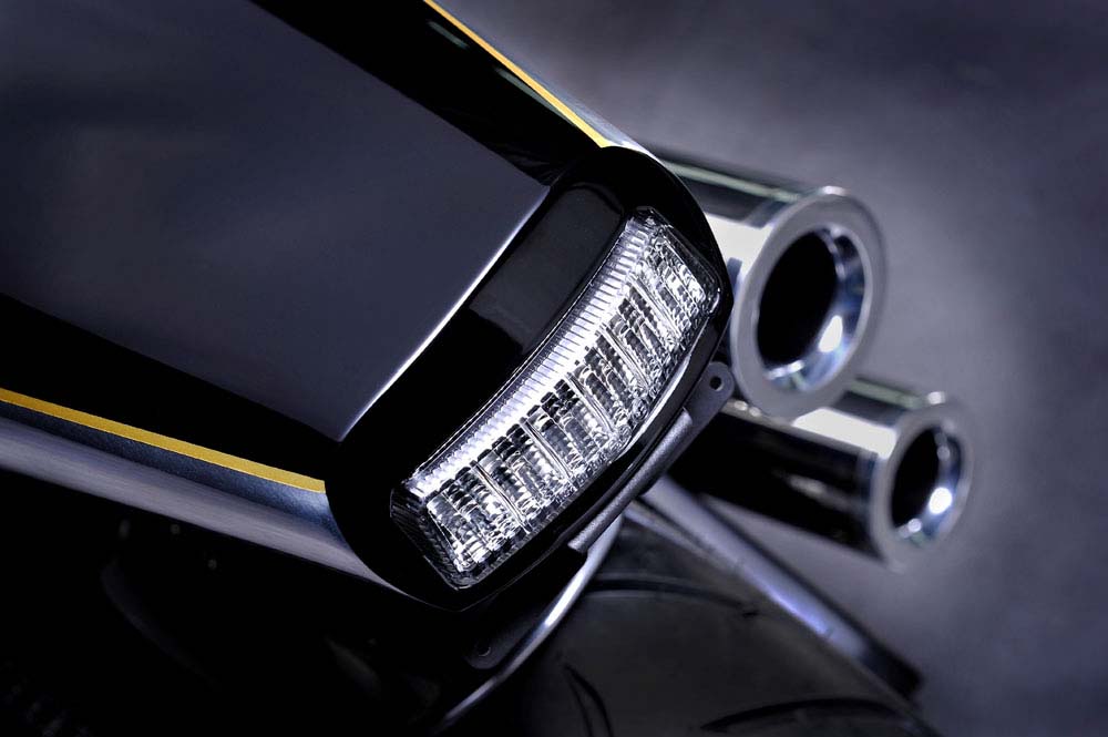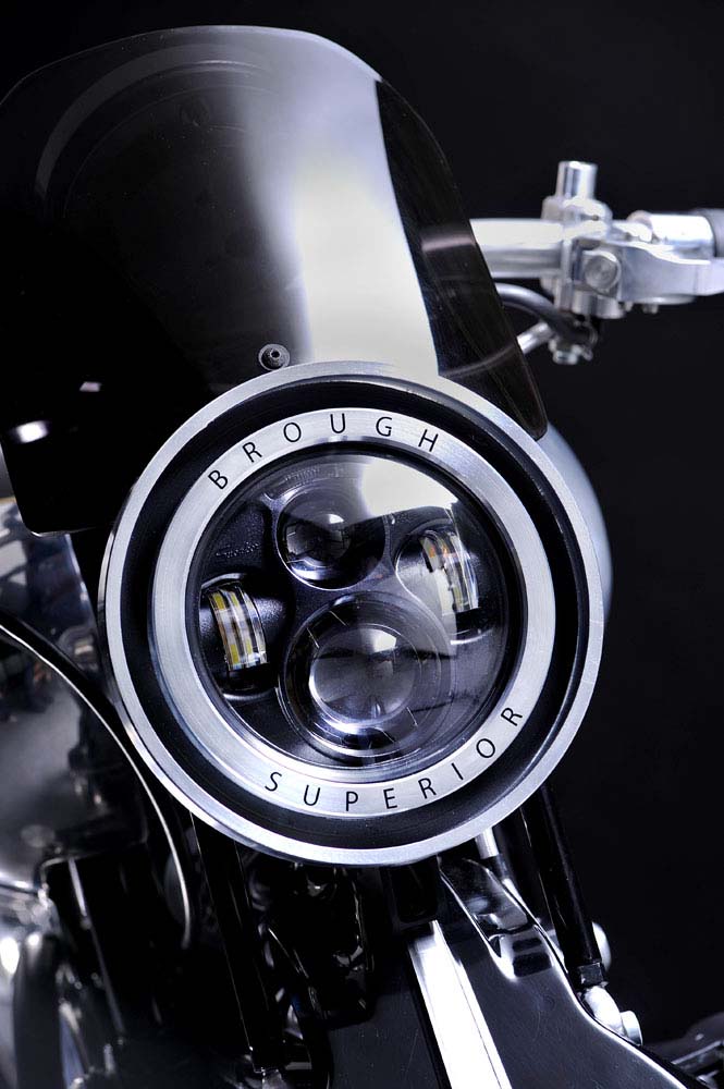 The headlight is a full LED unit, which is a nice piece of tech, though it is probably our one issue with Boxer Design’s choices for the Brough Superior SS100. An aftermarket piece that has been around the block on everything from Harley-Davidson cruisers to Zero electric bikes, the LED headlight chosen doesn’t fit with the rest of the machine that drips exclusivity and premium refinement.