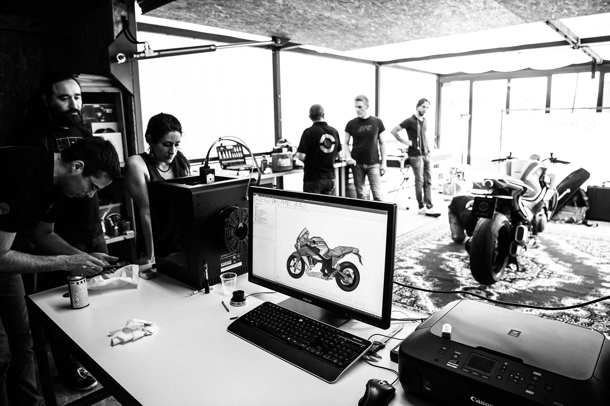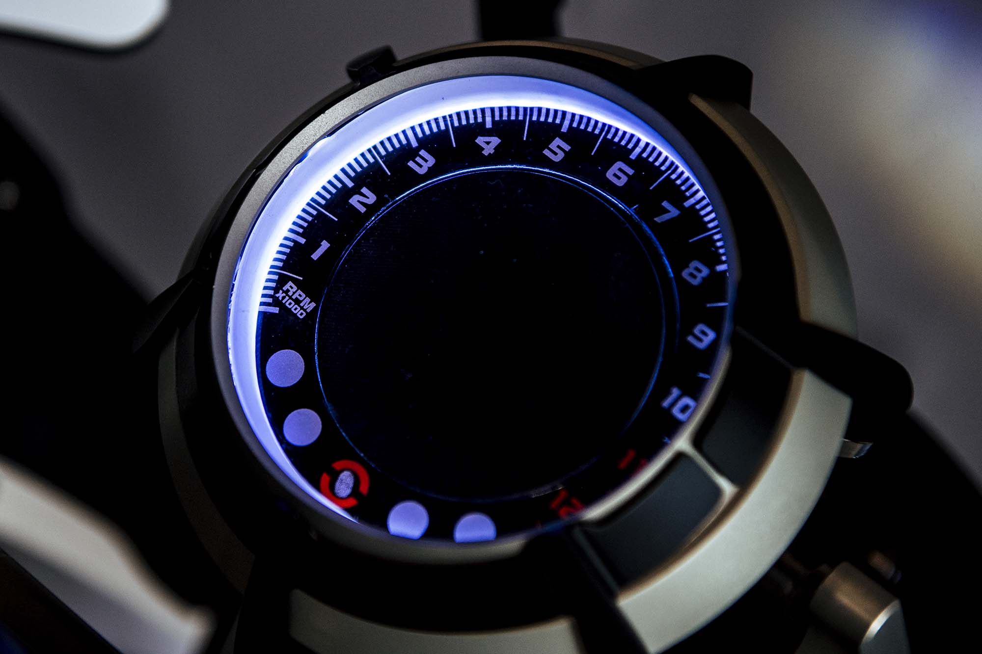 Drudi and his team have shaved off 60 lbs from the VFR1200’s mass, for a curb weight of 530 lbs. In the process, they have added Öhlins NIX 30 forks, Öhlins TTX 36 GP rear shock, Nissin brakes, and a custom Akrapovi? exhaust (our favorite part) to make things a bit more peppy.