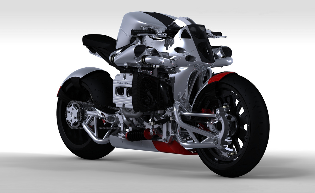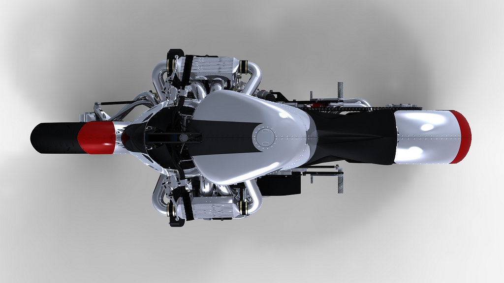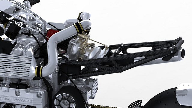 What you see above is the work of one Ian McElroy. It’s a render, done in SolidWorks, of a concept motorcycle that has a Subaru WRX motor at its core. With twin-intercoolers, underseat turbocharger, and a hub-steering chassis, the KickBoxer, as McElroy calls it, is an impressive looking machine, but what’s most impressive is that Ian didn’t know a lick of SolidWorks before he set out to make this design. Photos and spec’s after the jump.