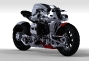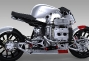 Surprisingly in the concept, the motor & transmission from the Subaru don’t look nearly as looming as one would suspect. In his design, McElroy uses both front and rear single-sided swingarms, with perimeter rim disc-brakes. Reminiscent of the Confederate Wraith, the overall effect of the KickBoxer is a sportier, and probably better handling street shredder.
