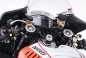 Also, the 90 degree V4 engine has been rocked backwards, giving more room to the front tire, and thus a more compact stature inside the frame.
