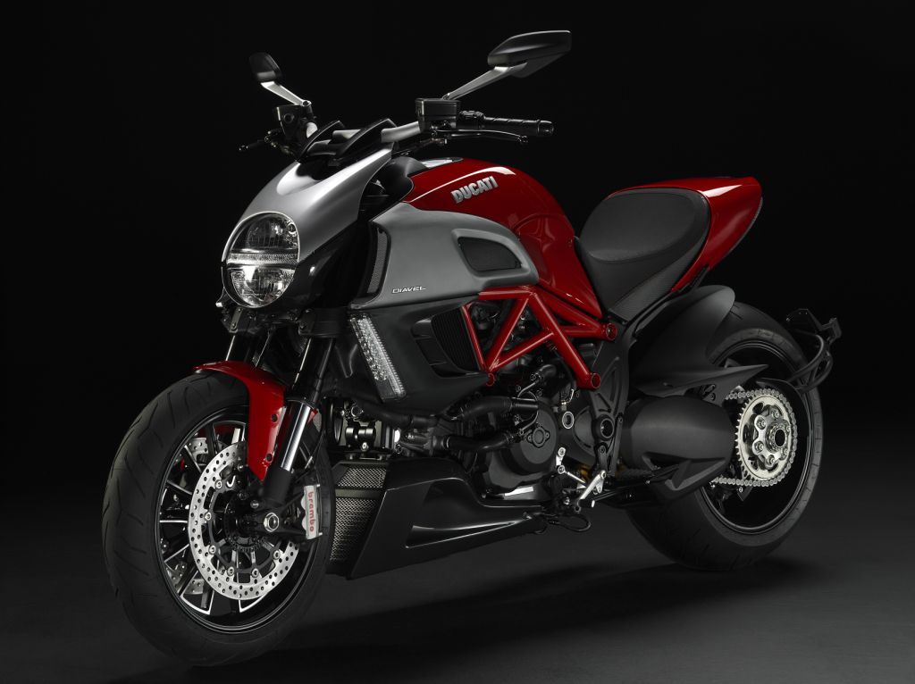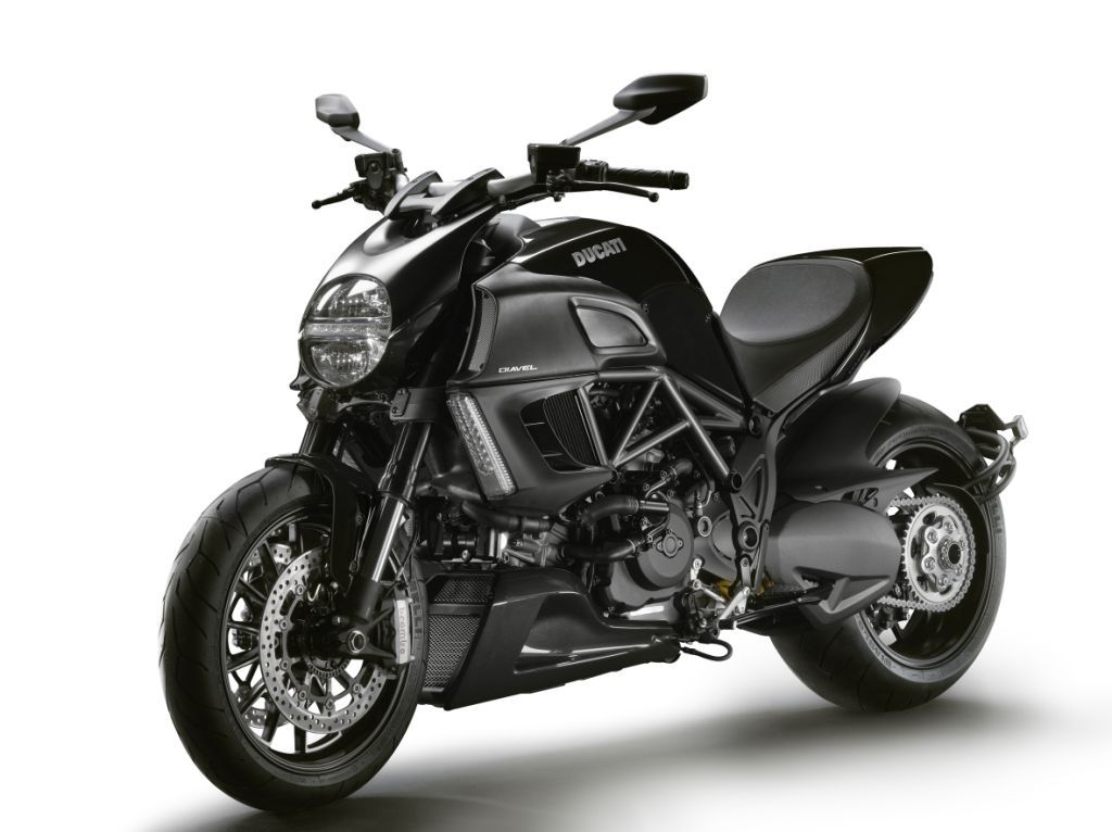 In addition to the Diamond Black, Ducati will also be dropping the red Diavel’s ugly as sin brushed metal looking air intakes for the matte black revisions, which should help bring that bike’s style into more appealing standards (we’d go with color-matched intakes, but hey that’s just us talking).