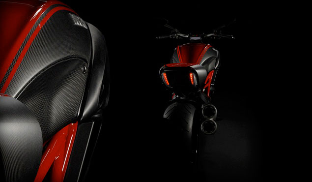 Ducati has just released the first official images of the 2011 Ducati Diavel on its website and Facebook page, thus beginning the teasing process as we lead up to the EICMA show in Milan in three weeks (and confirming the name Diavel in the process). Showing the ass end of the power cruiser, we get our first good glimpse of the carbon tank on the Diavel (rumors are the Ducati Diavel will come in two trim levels). Ducati has also announced that the Diavel will sport ABS, Ducati Traction Contorl, multiple riding modes, and weigh 456lbs.