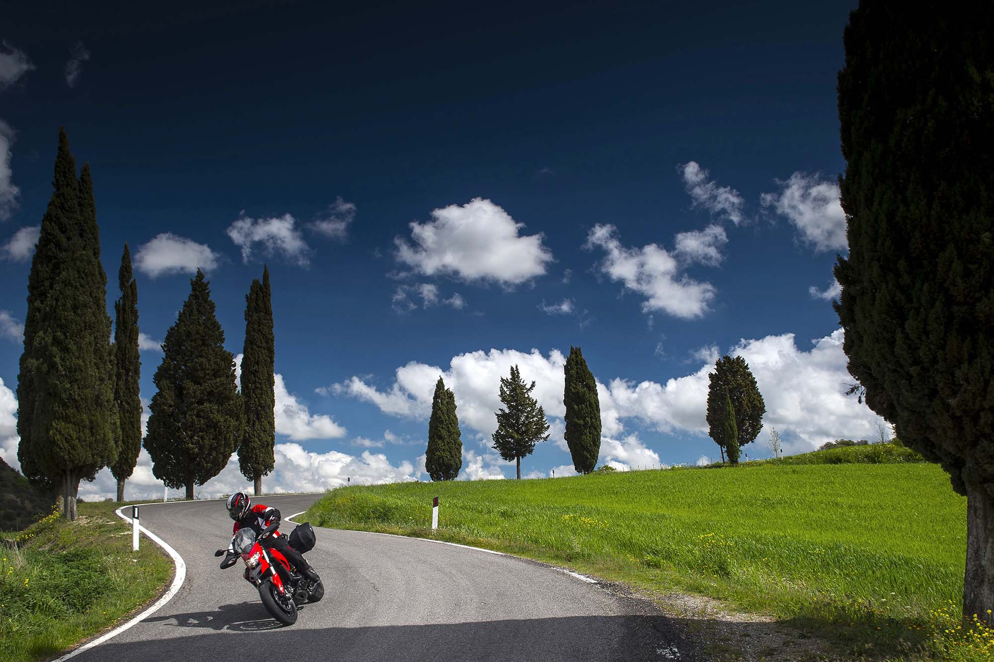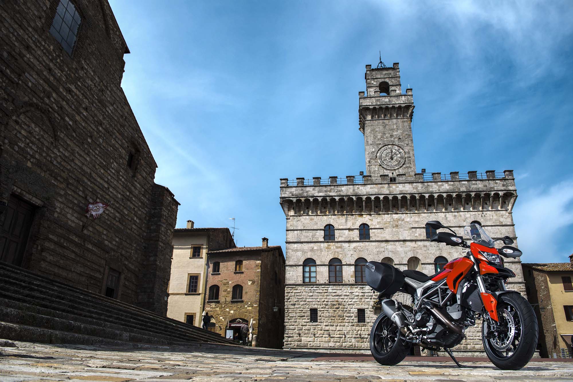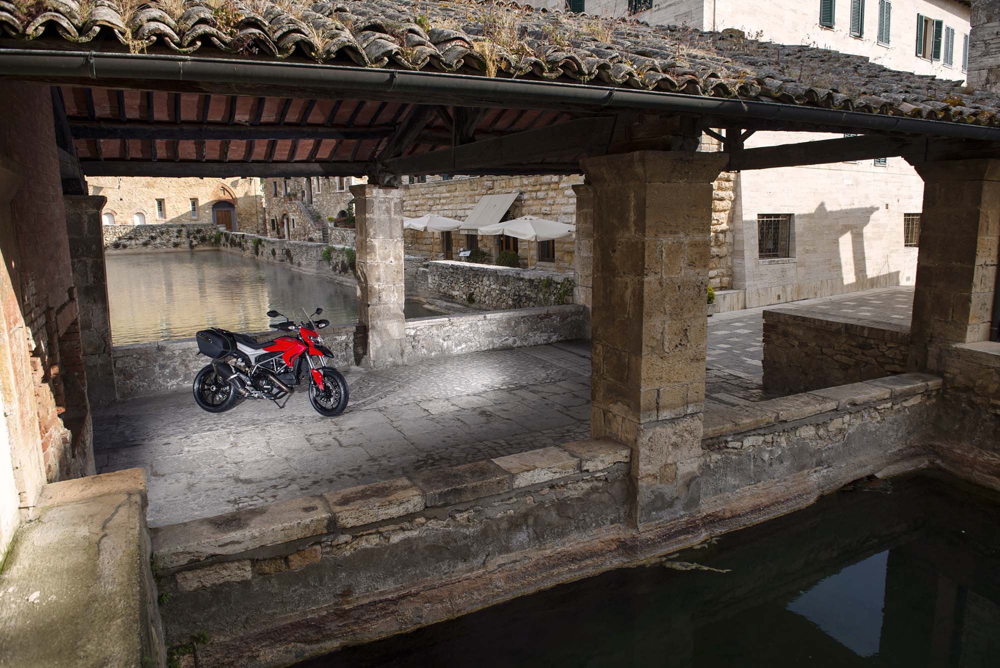 Other obvious changes are the 50 liters of removable side luggage, helping to emphasize the touring purpose of the Hyperstrada. A motorcycle built to travel the Italian countryside, so it should come as no surprise then that when it came time for Ducati to debut the Hyperstrada to the international press, the Italians didn’t have far to look for a suitable venue.