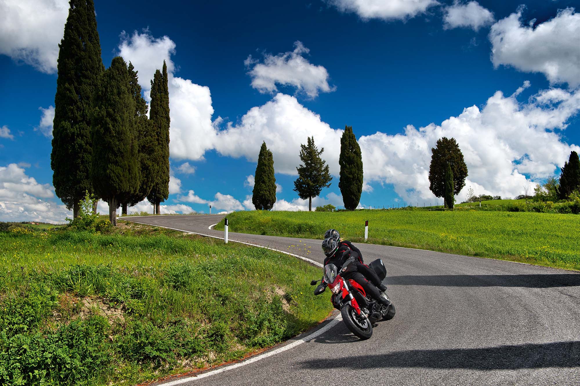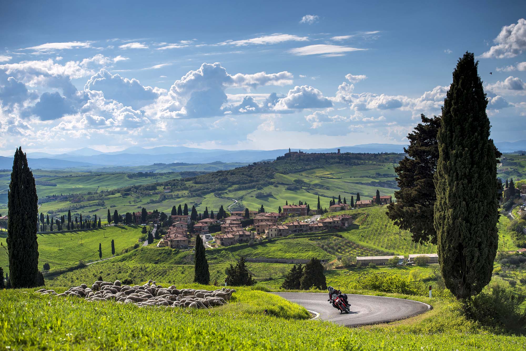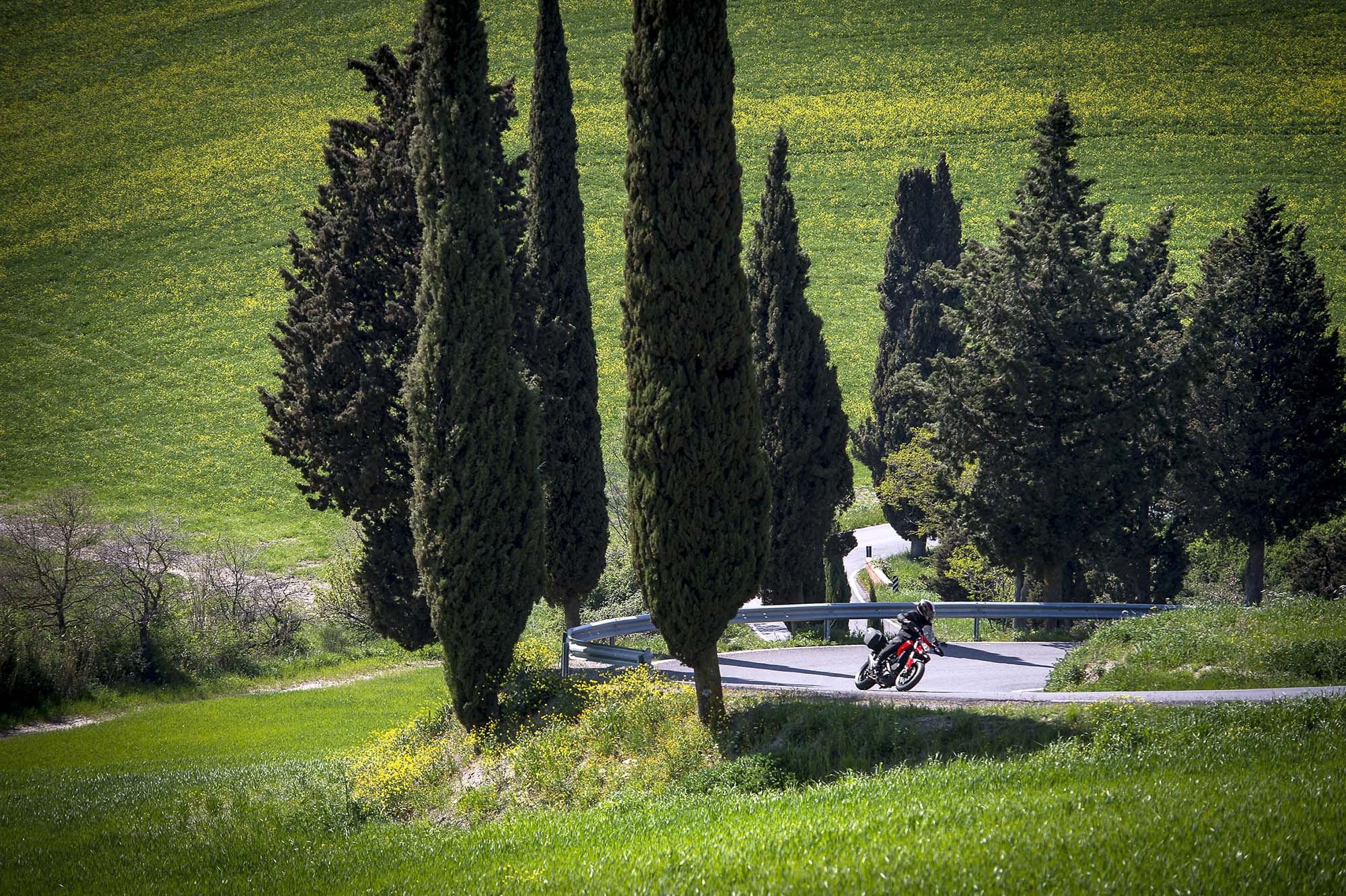 Other obvious changes are the 50 liters of removable side luggage, helping to emphasize the touring purpose of the Hyperstrada. A motorcycle built to travel the Italian countryside, so it should come as no surprise then that when it came time for Ducati to debut the Hyperstrada to the international press, the Italians didn’t have far to look for a suitable venue.