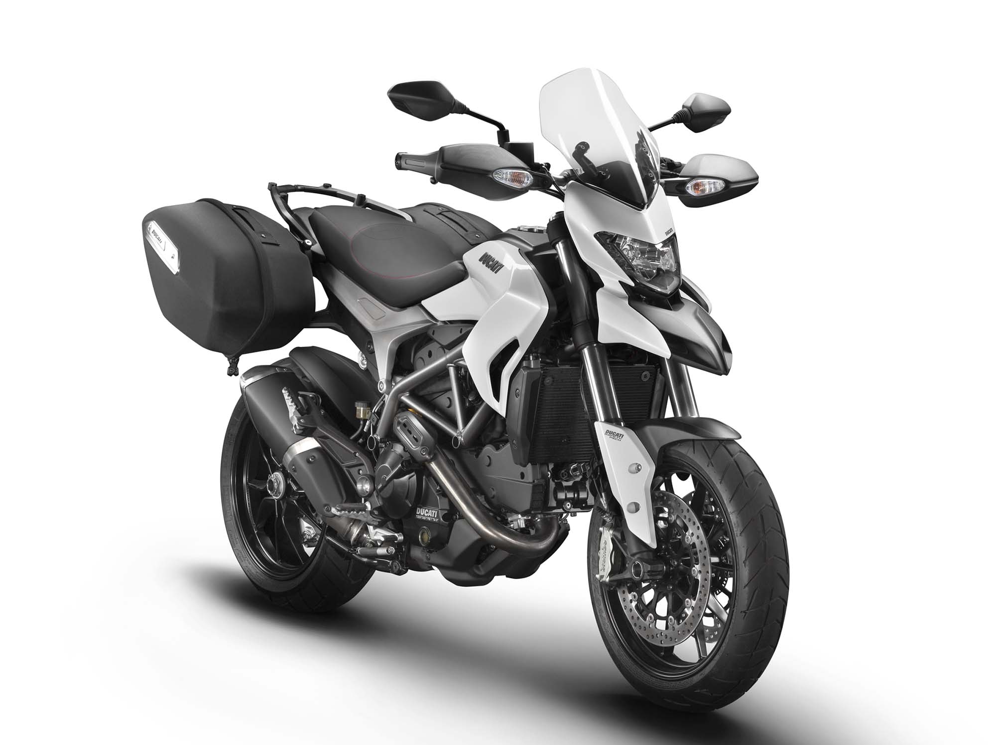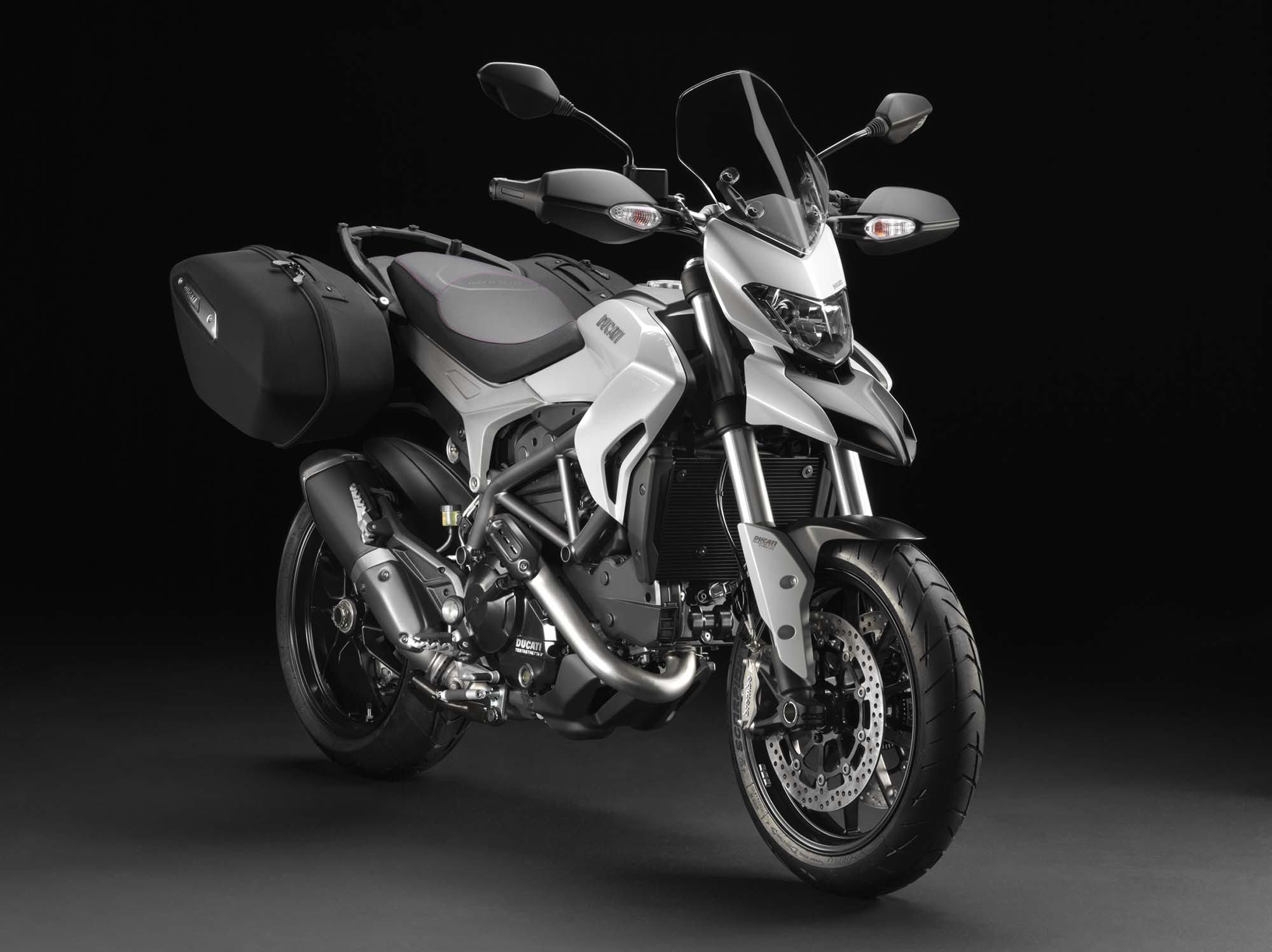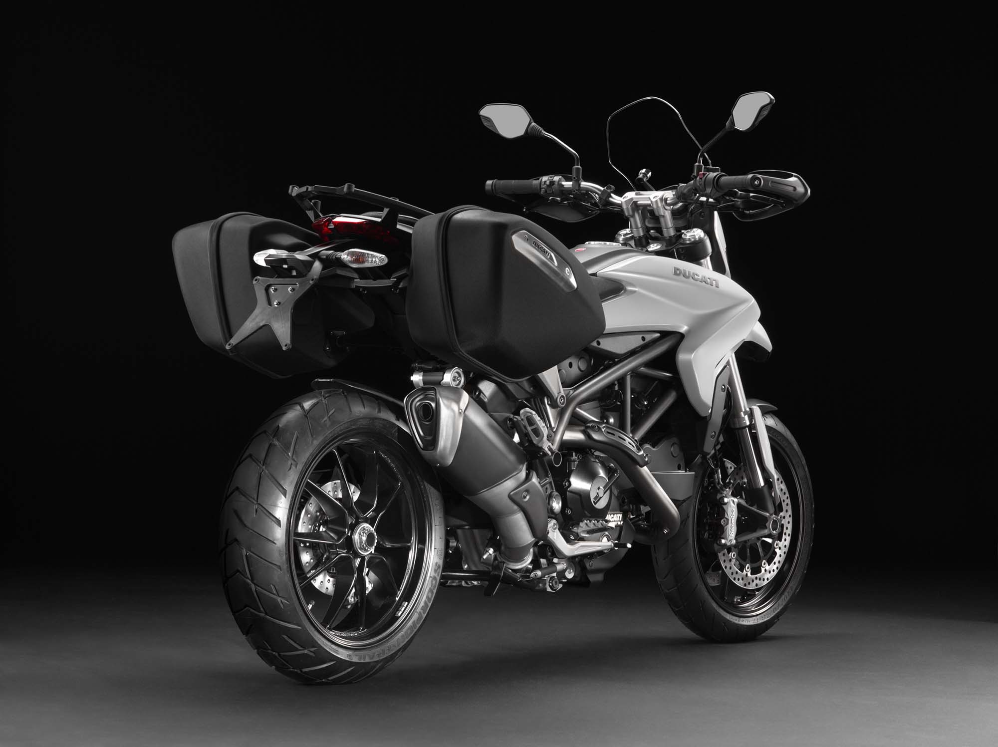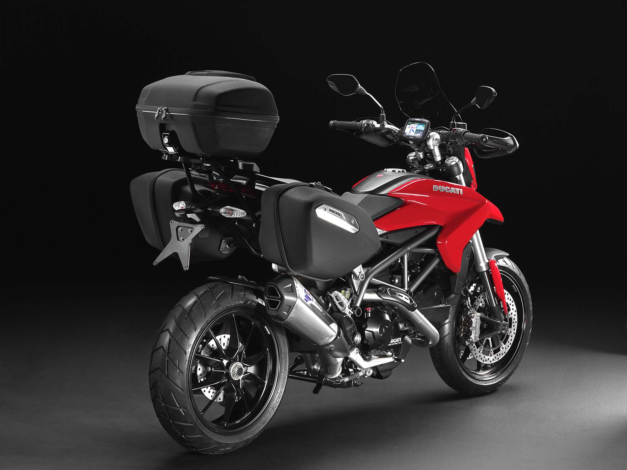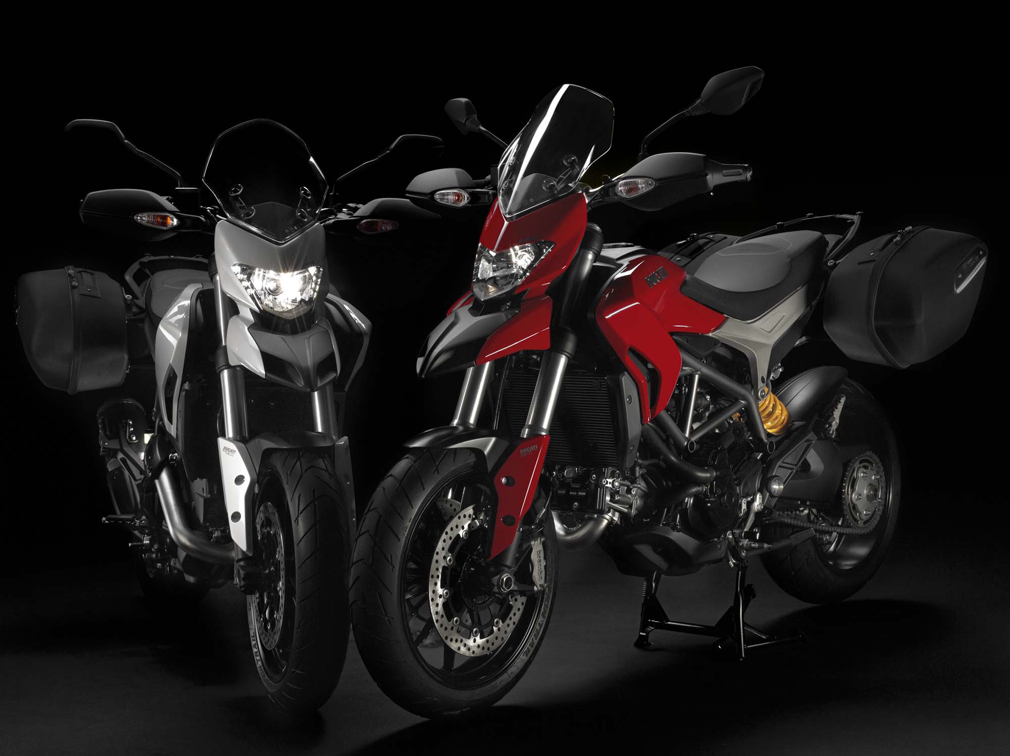 Based off the 2013 Ducati Hypermotard, which got all the attention at EICMA, the 2013 Ducati Hyperstrada is the more touring friendly version of the new water-cooled maxi-motard machine from Bologna. Like its tardy sibling, the Hyperstrada features the new 821cc Testastretta 11° engine, which is good for 110hp, incorporates among other things a lower seat and suspension package for easier on-road touring.