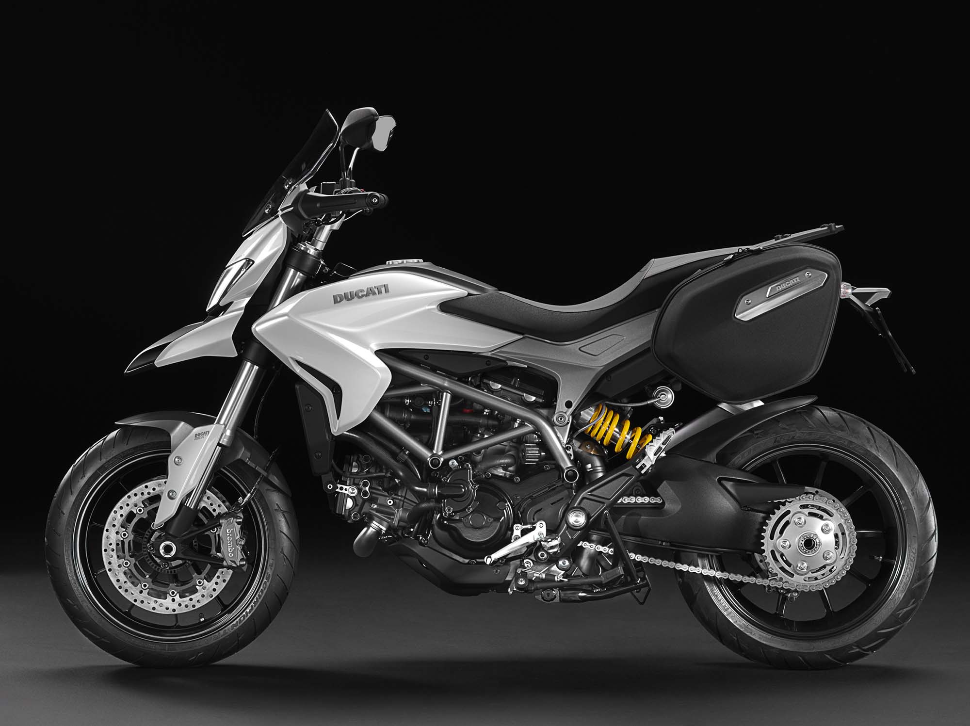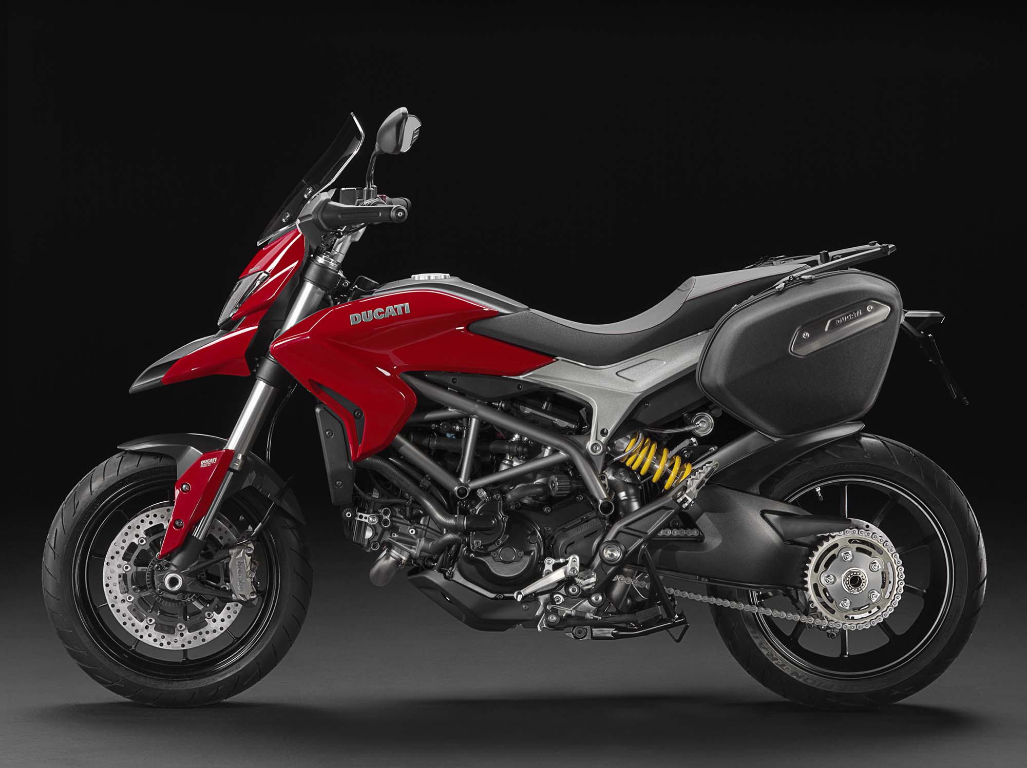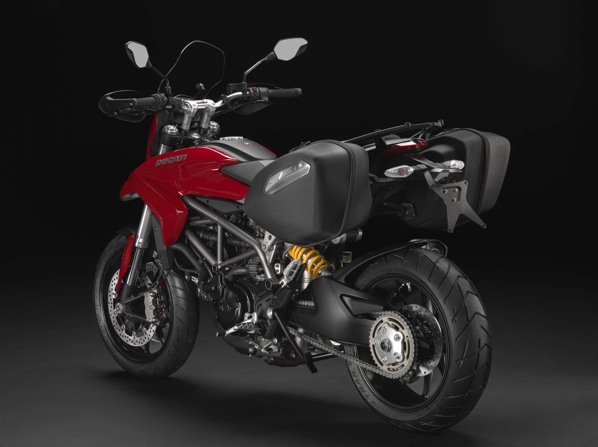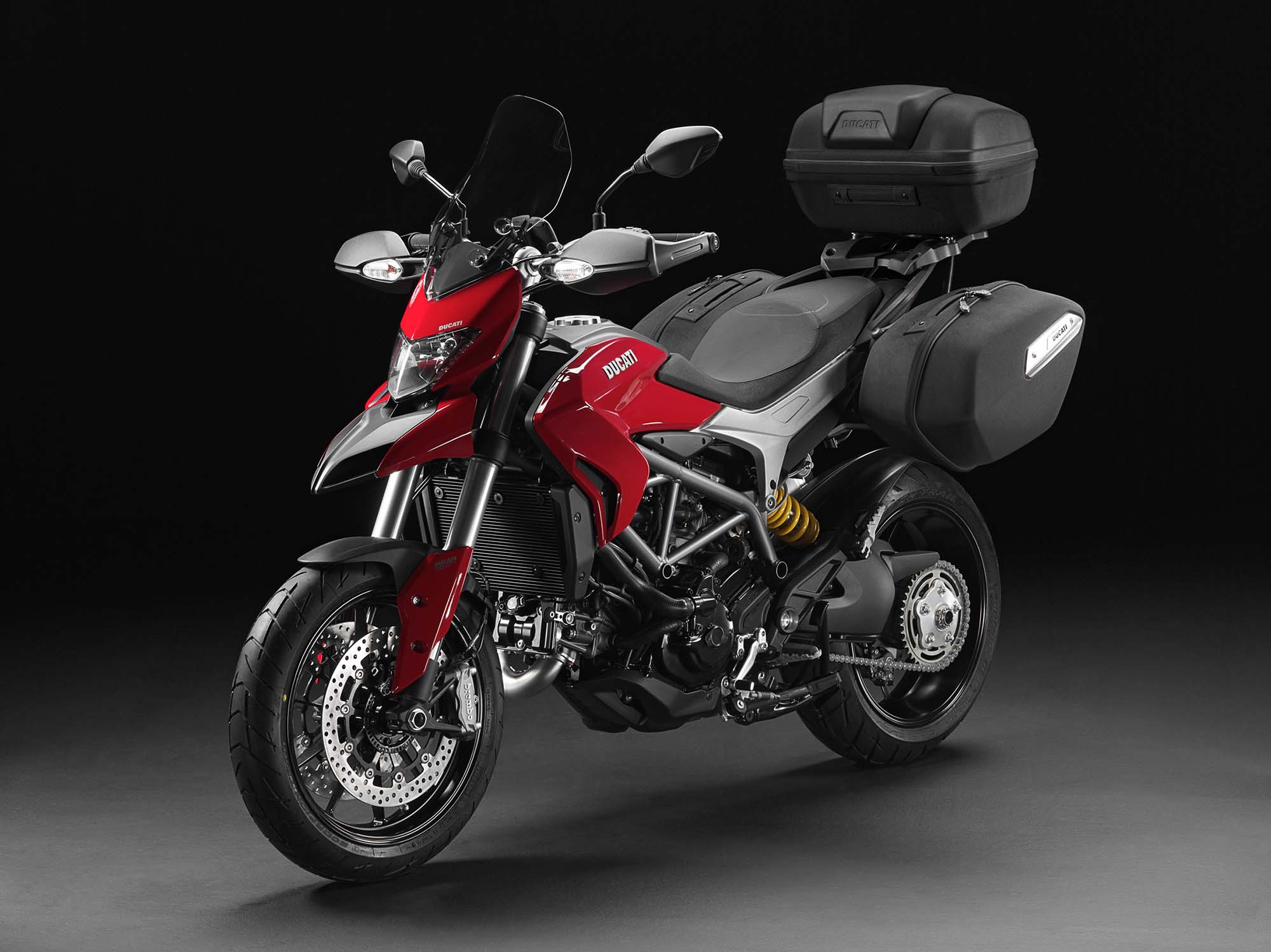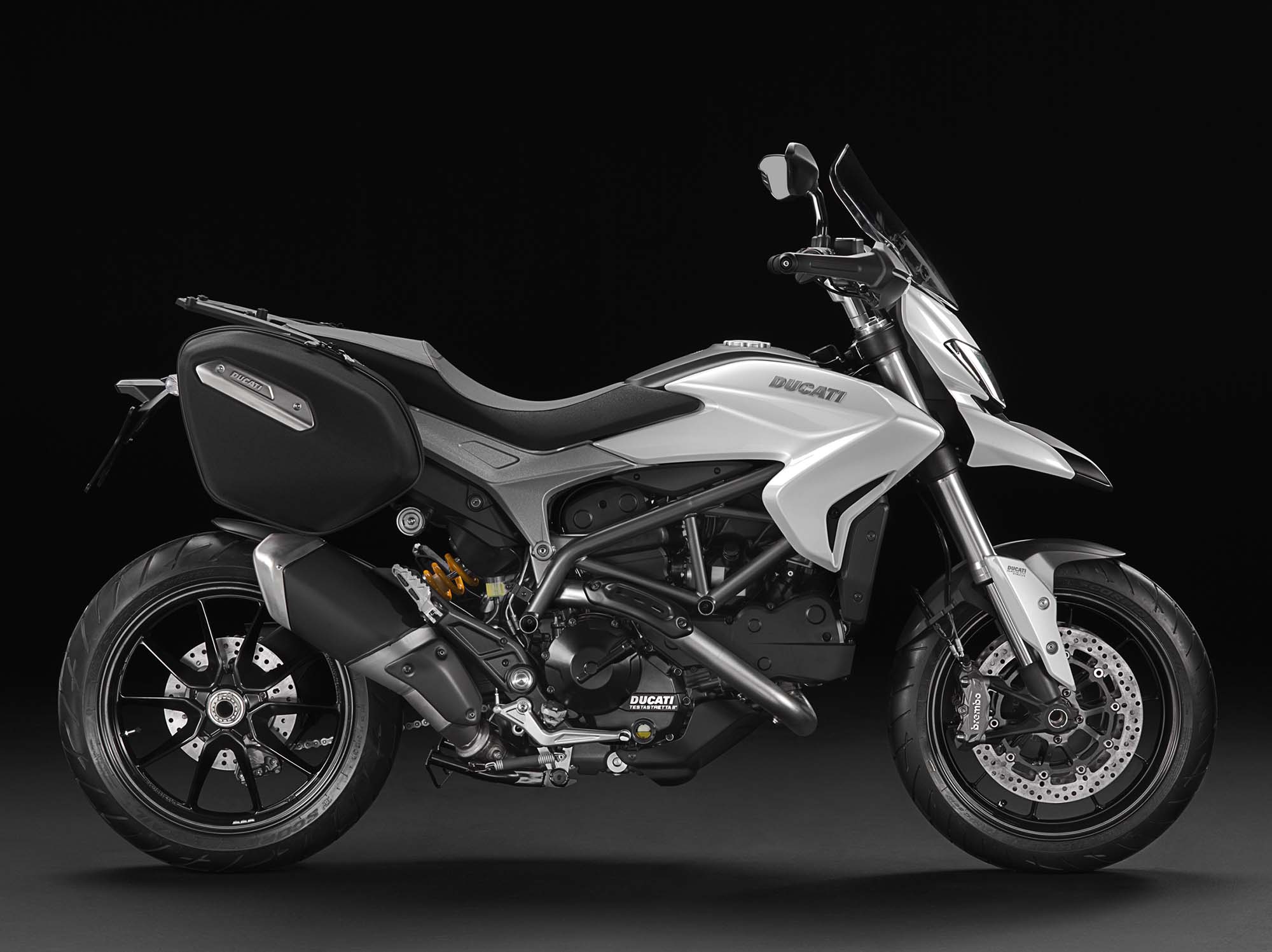 Based off the 2013 Ducati Hypermotard, which got all the attention at EICMA, the 2013 Ducati Hyperstrada is the more touring friendly version of the new water-cooled maxi-motard machine from Bologna. Like its tardy sibling, the Hyperstrada features the new 821cc Testastretta 11° engine, which is good for 110hp, incorporates among other things a lower seat and suspension package for easier on-road touring.