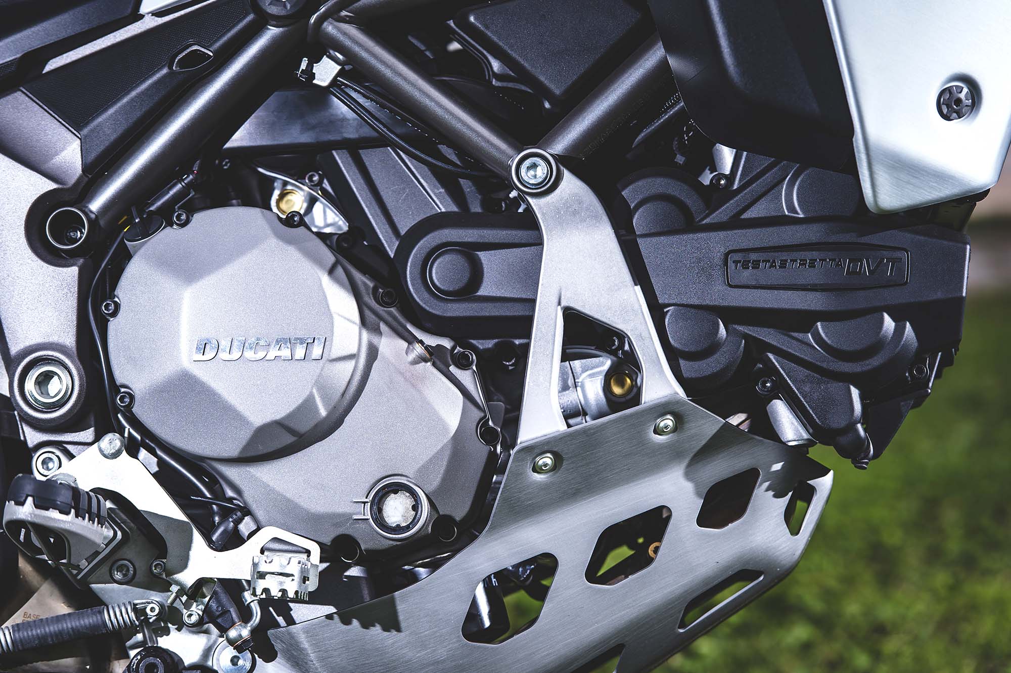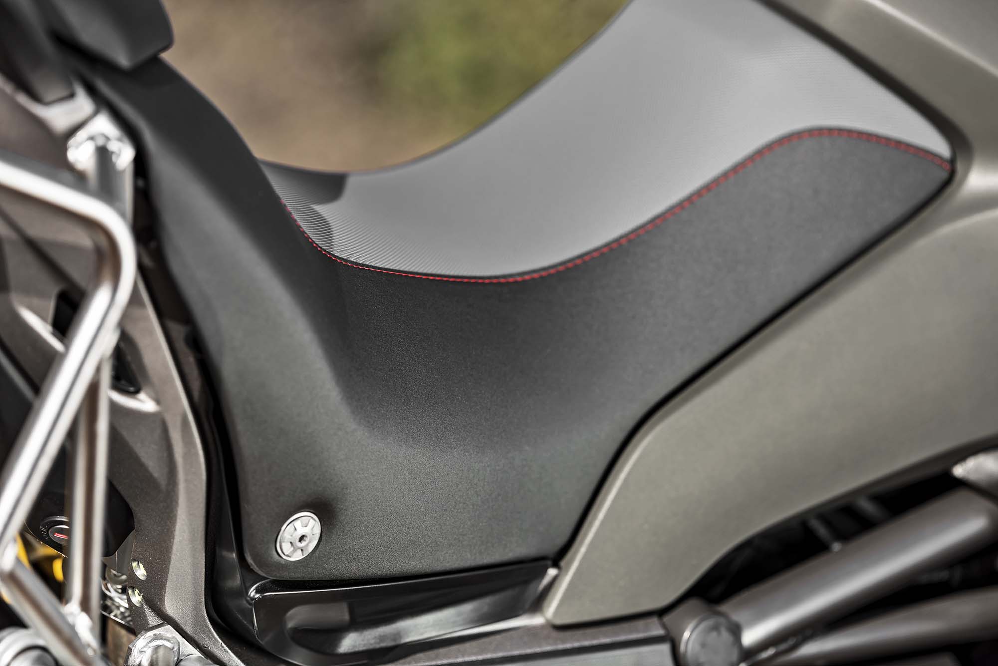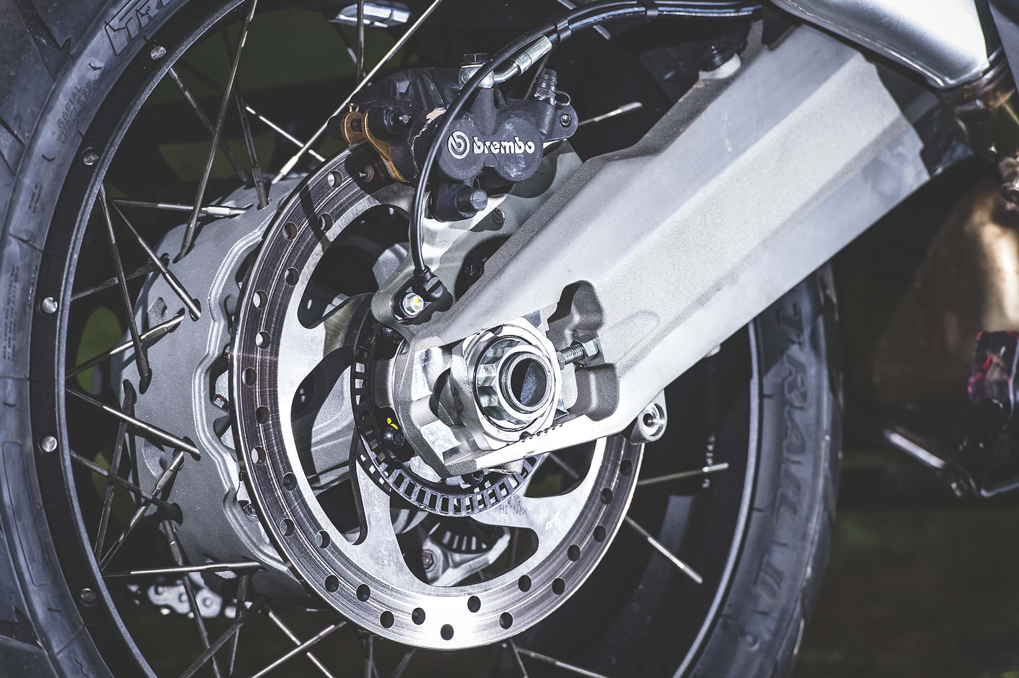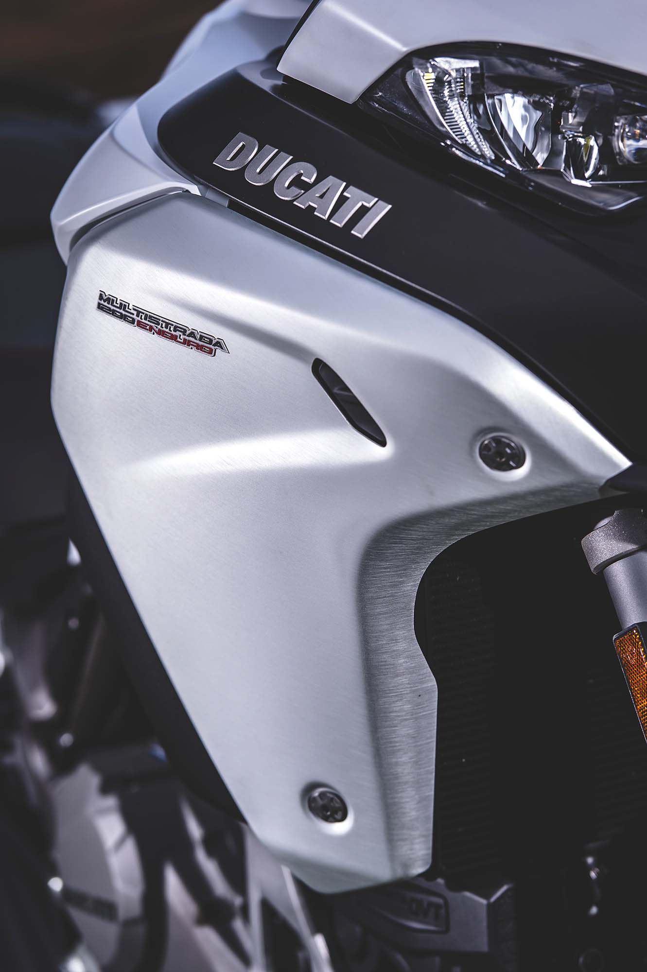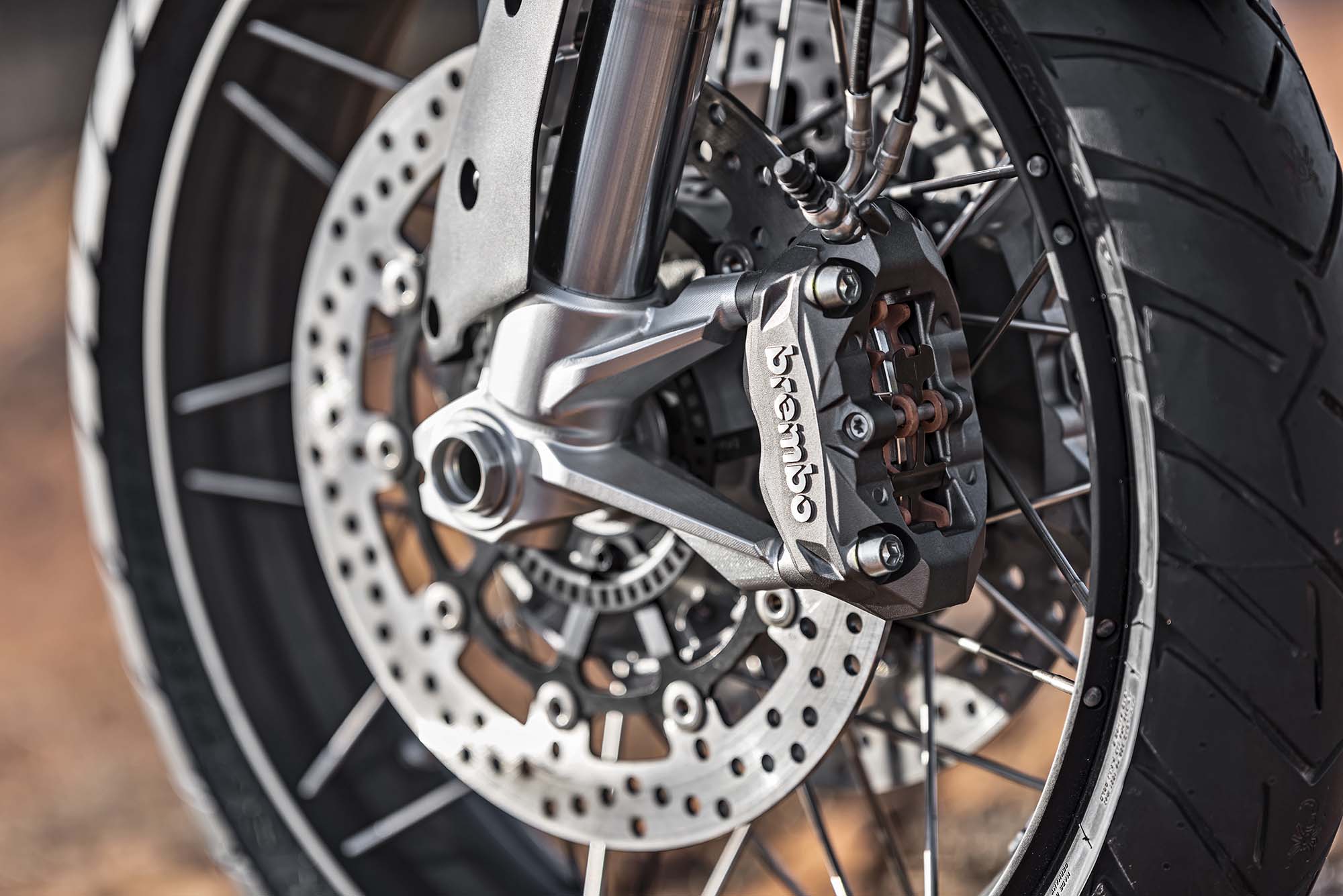 Ducati has made some obvious changes to its Multistrada 1200 platform to make the Enduro model ready for the dirt, the most noticeable of which are the spoked wheels (with a 19-incher up front) and the beefier double-sided swingarm. The optionally equipped Pirelli Scorpion Rally tires, slimmer exhaust can, and crash bars help complete the transformation, as well.