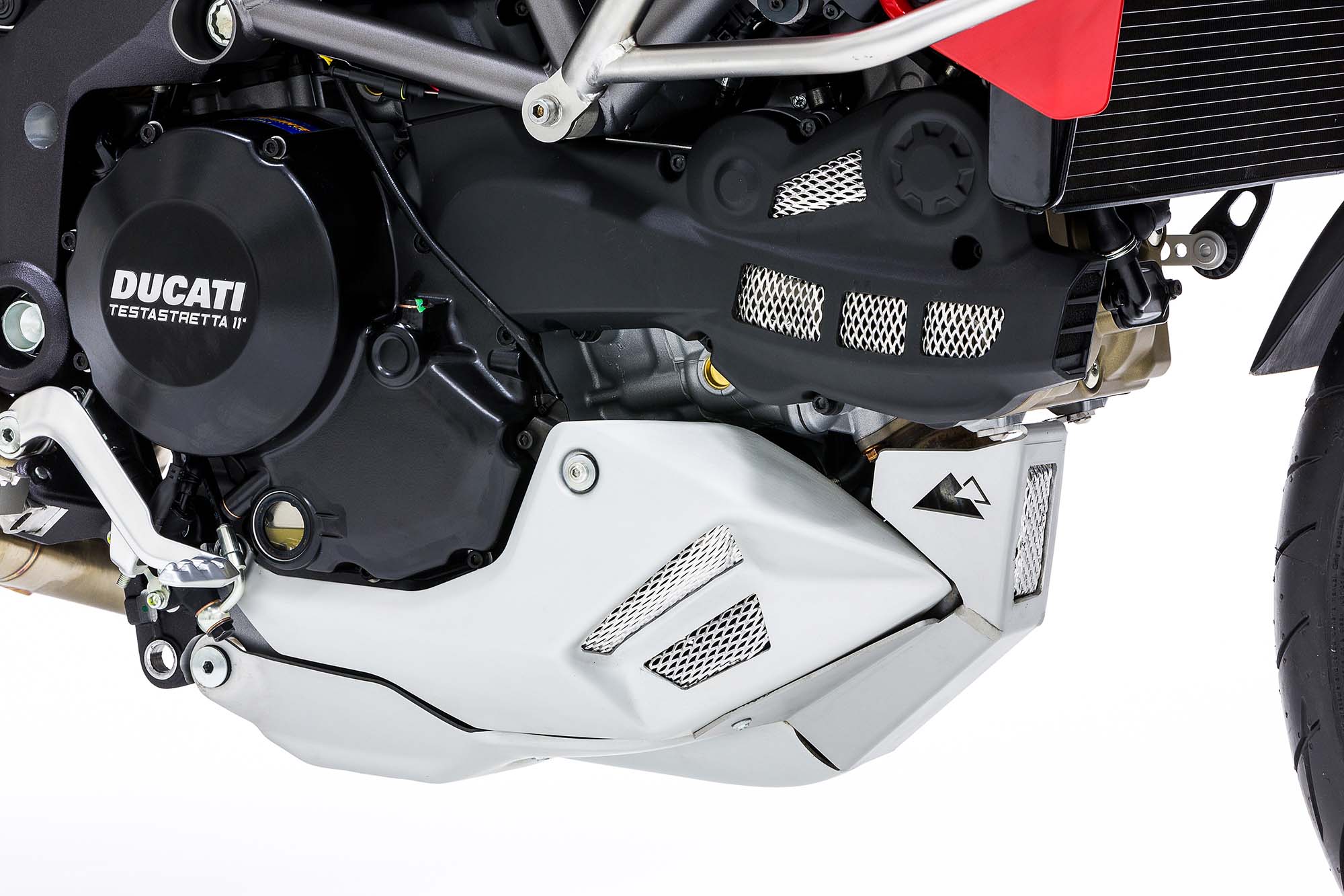 Affetto Ducati gets bonus points for the subtle meshing over the vents, stunning paint job, and carbon fiber windscreen, which add a bit of “show” to the Multi’s already stout “go” — we might be rethinking our V-Day plans after seeing this, how about you?