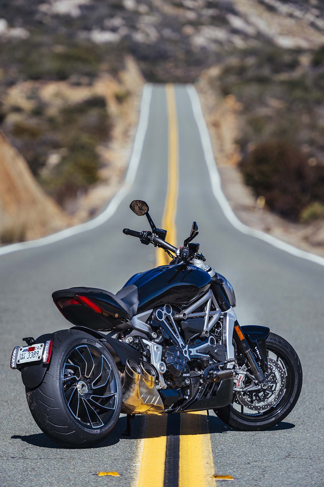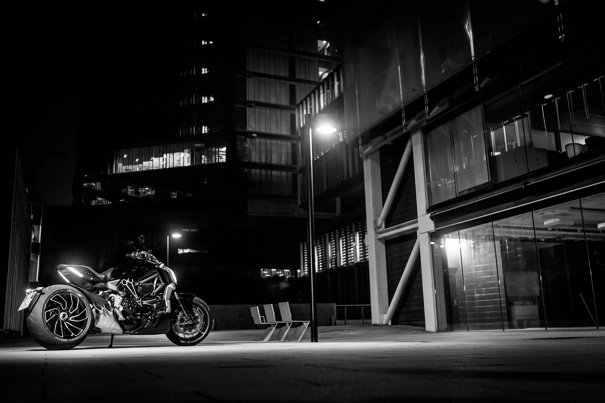Abandoning the Rosso Corsa of its siblings, Ducati says that the color of the XDiavel is black. Accordingly, we have a slew of black and white press photos for you after the jump.