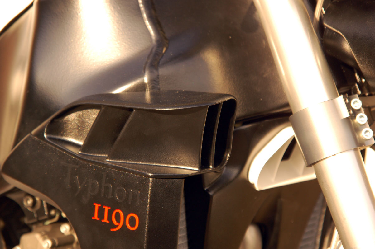 With the idea that the EBR 1190 Typhon concept could pave the way to an EBR-made model down the road, Pegasus drew heavily from the Erik Buell Racing 1190RR’s design, as well as the general Buell ethos. “Our idea was with our years of experience in Buell racing to concept the ultimate Streetfighter with outstanding performance and a unique design,” said Team Manager Jens Krüper. “To combinate a cool minimized look with real good aerodynamics is a real challenge, especially if something is so powerful as that EBR Superbike,” said Heiko Jessat of Gruner Engineering, the company that technically assisted PRT with the design for the Typhon.