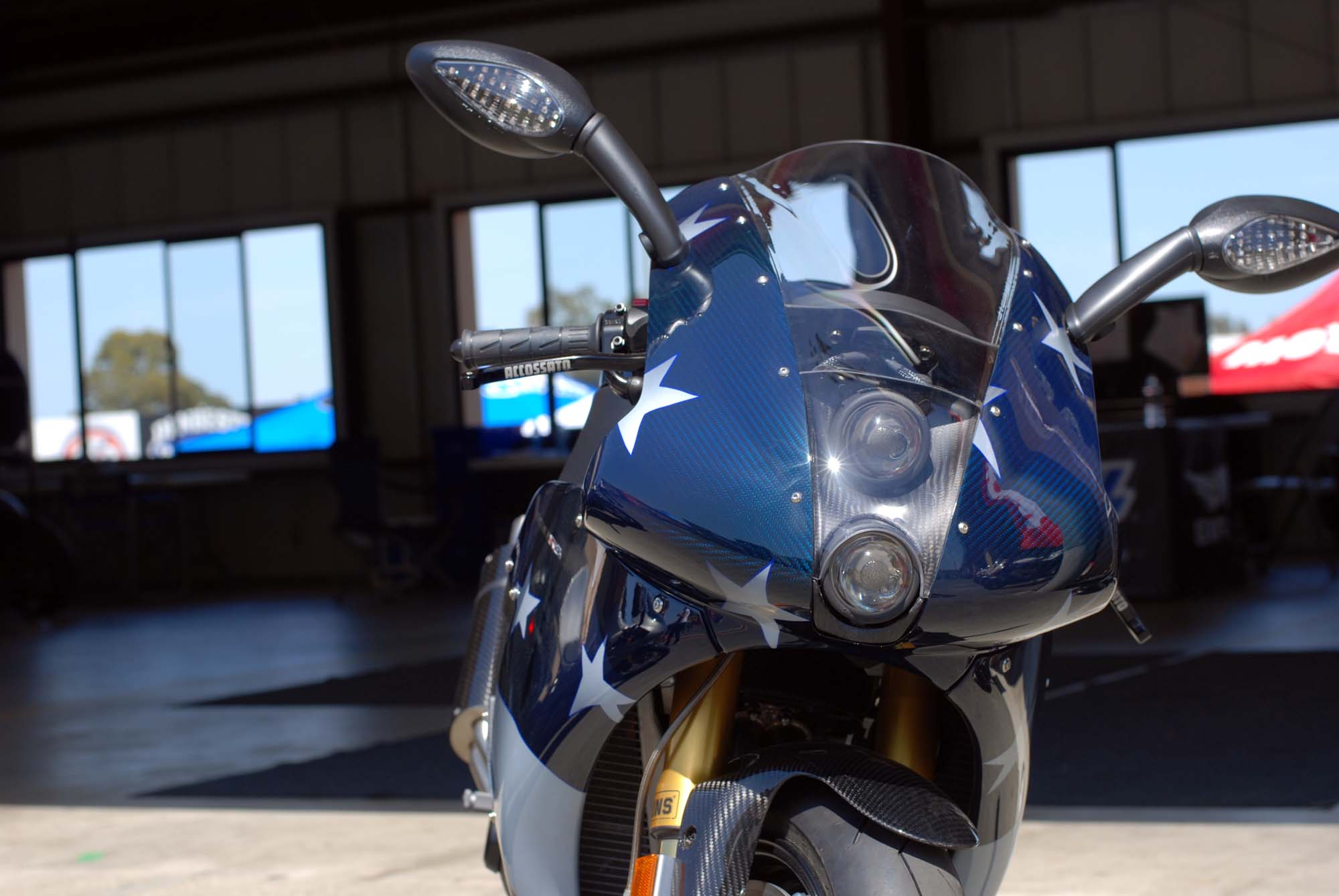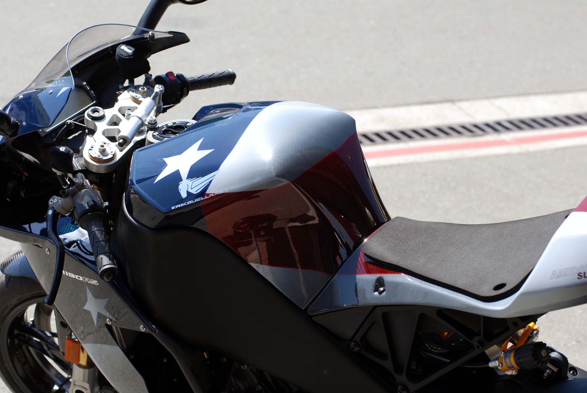 Trading patriotism for originality, Erik Buell Racing is still pushing the same worn-out Americana marketing plan that Harley-Davidson built for the sport bike company way back when. With two podium victories, a gorgeous product, and a story that is an encapsulation of hard work overcoming adversity, you would think that the folks from East Troy could put away the cheap parlor trick of using Americana to sell motorcycles. One gorgeous bike in its own right, but a played out theme as well. What happened to being innovative guys? Photos after the jump.