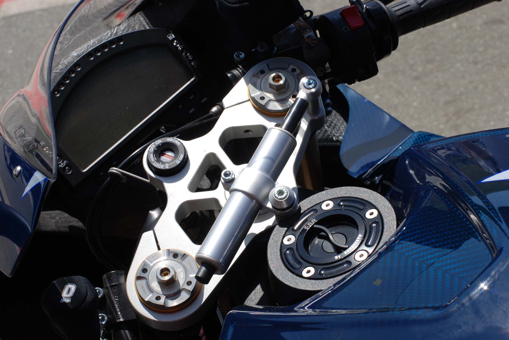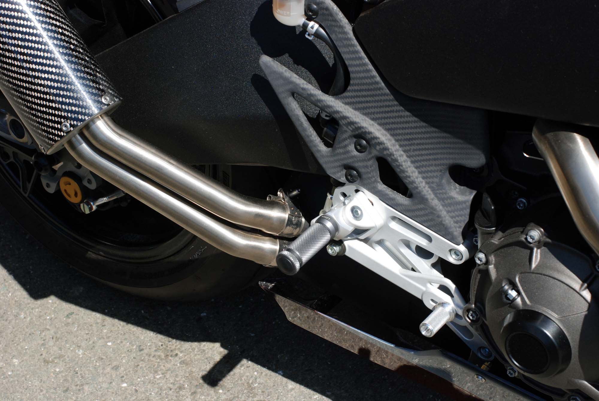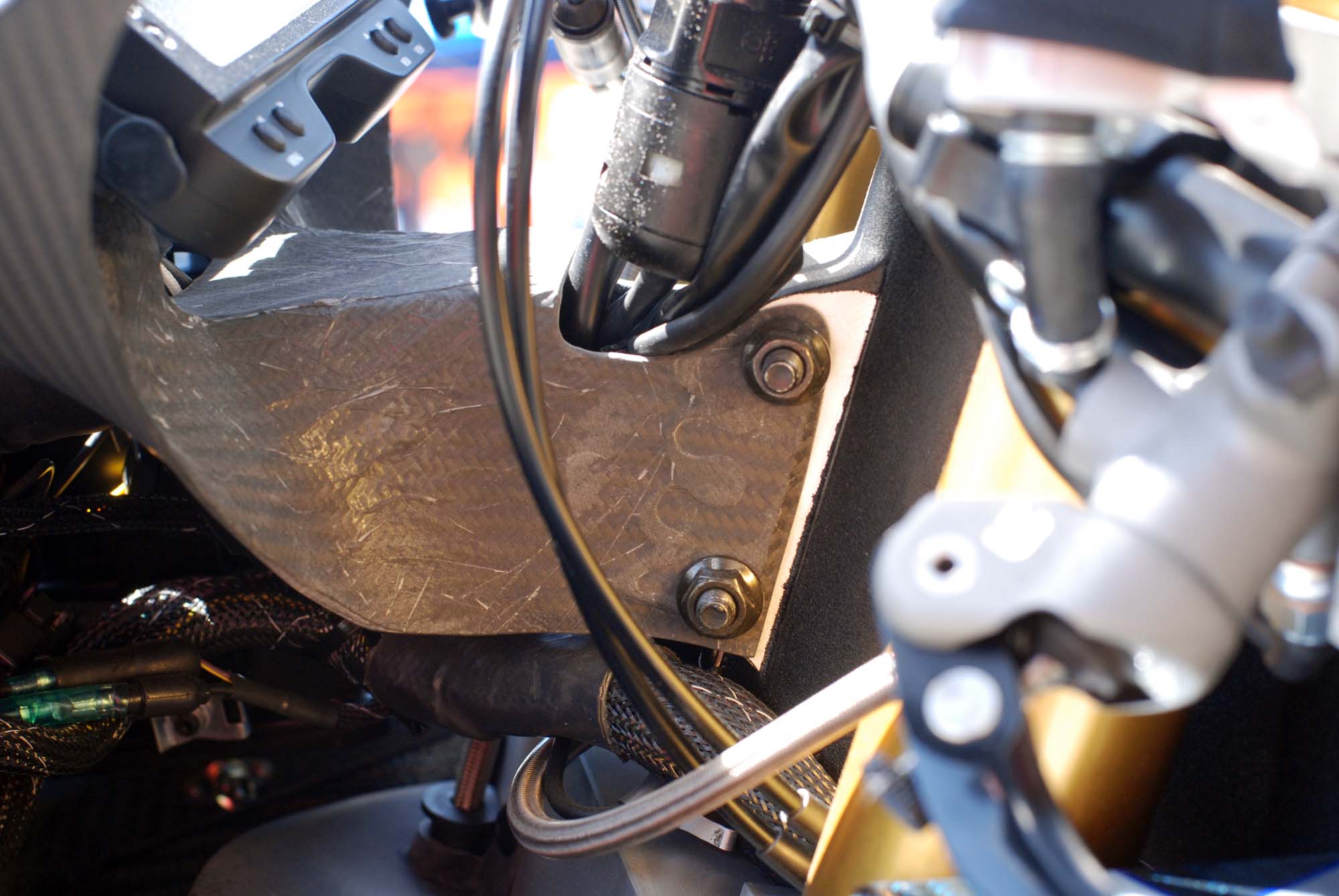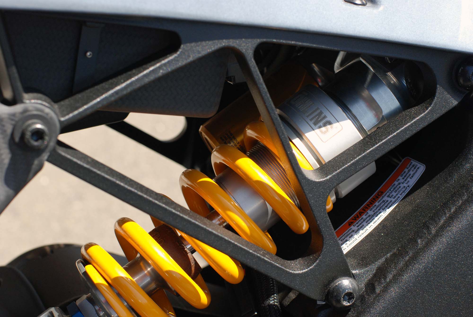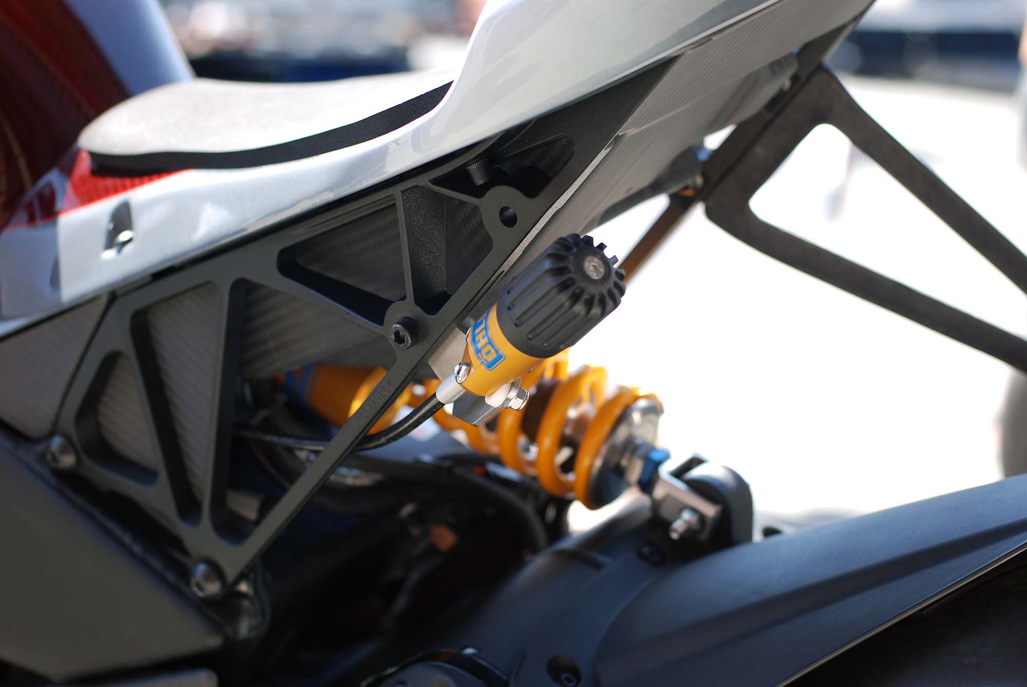 While the EBR 1190RS race bikes were on the track, their $40,000+ street-legal counterparts were on display outside of the Erik Buell Racing garage. Rocking an American flag livery, I naturally took pictures of this show bike. Eye catching to say the least, nothing says “Made in ‘merica” better than a red, white, and blue color scheme, especially when it is laid over carbon fiber. And while I want to love this bike because of its nuances and outside-of-the-box technical design, I don’t.