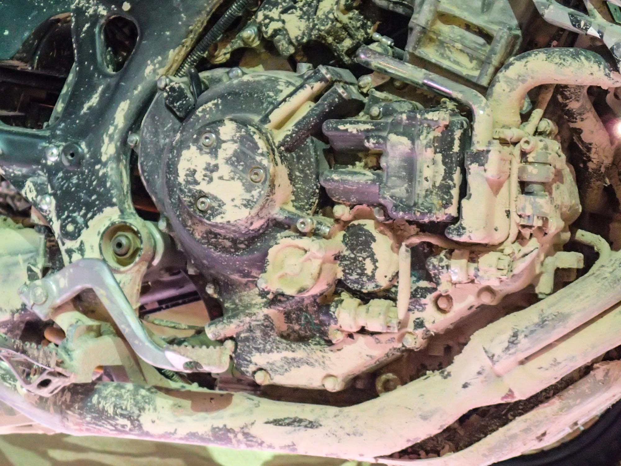 Check out the photos after the jump, and let us know if you see any other details from the muddied and camouflaged show bike.