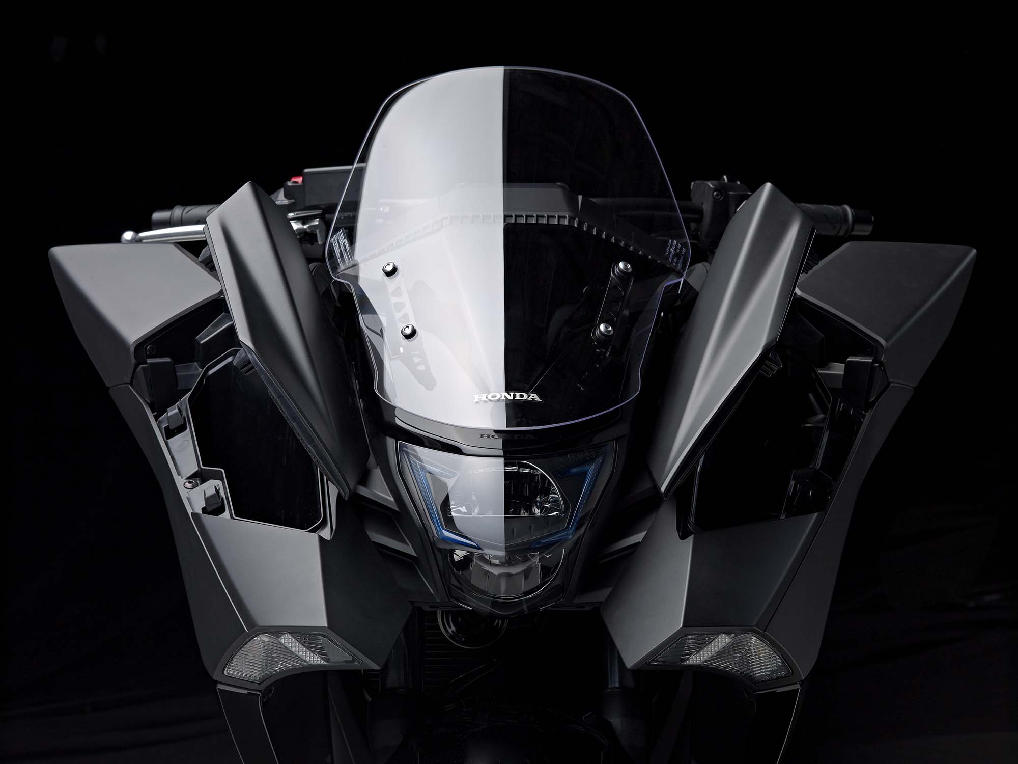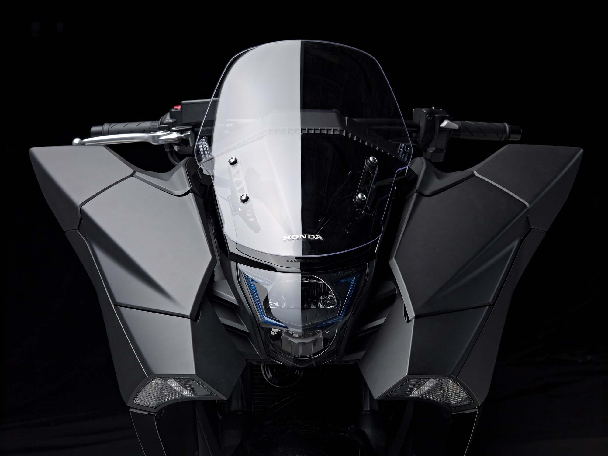 To that end, Honda says that the design concept focuses on two elements: “front massive” styling and a cockpit position. More tangible technical items include an LED headlights, tail lights, and turn signals, as well as panniers for storage (featured on the NM4-2). Underneath the hood is a 745cc, two-cylinder, 54hp engine that has Honda’s dual-clutch transmission.