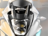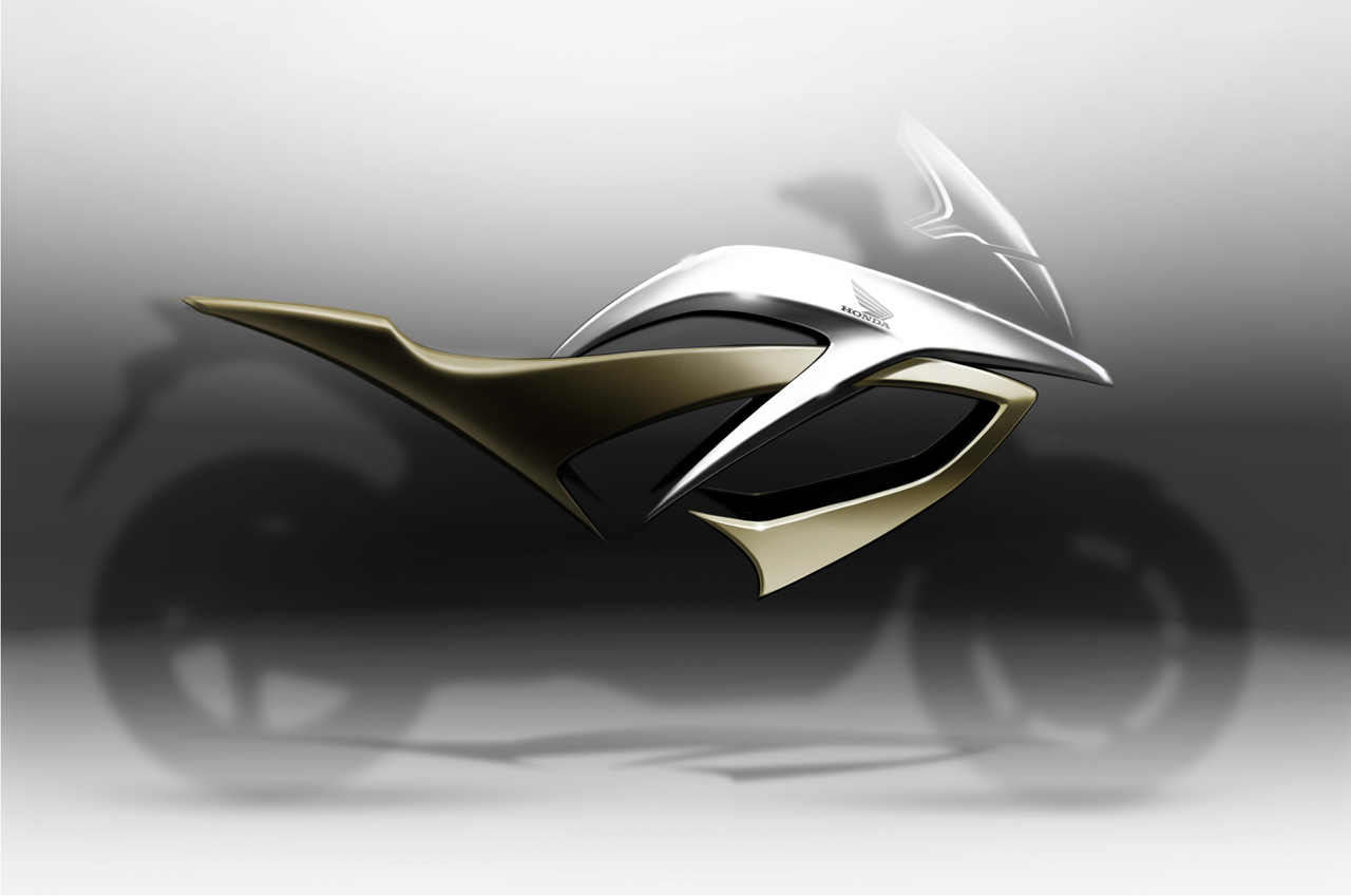 Showing the stacked headlight design, Honda’s new V4 will have a slim profile for better high-speed stability and engine/rider cooling. Honda is also saying that a “floating” instrument cluster will come on the bike, which should help keep eyes pointed down the road’s path.