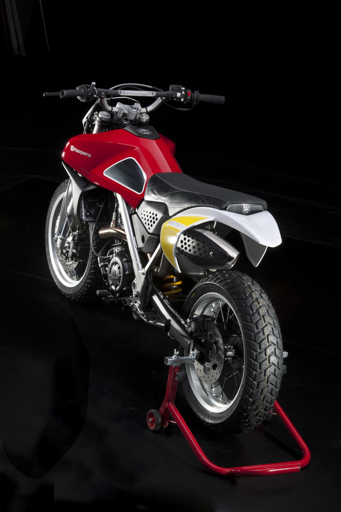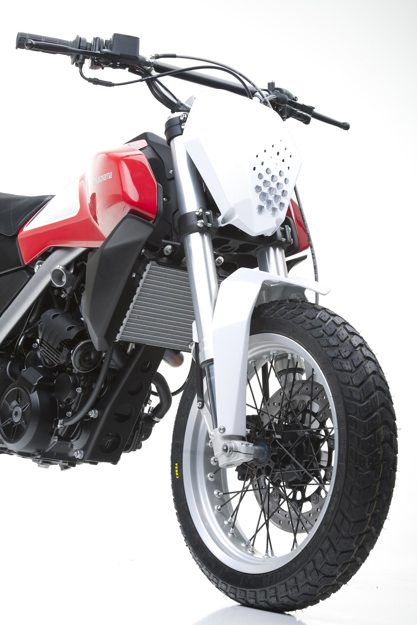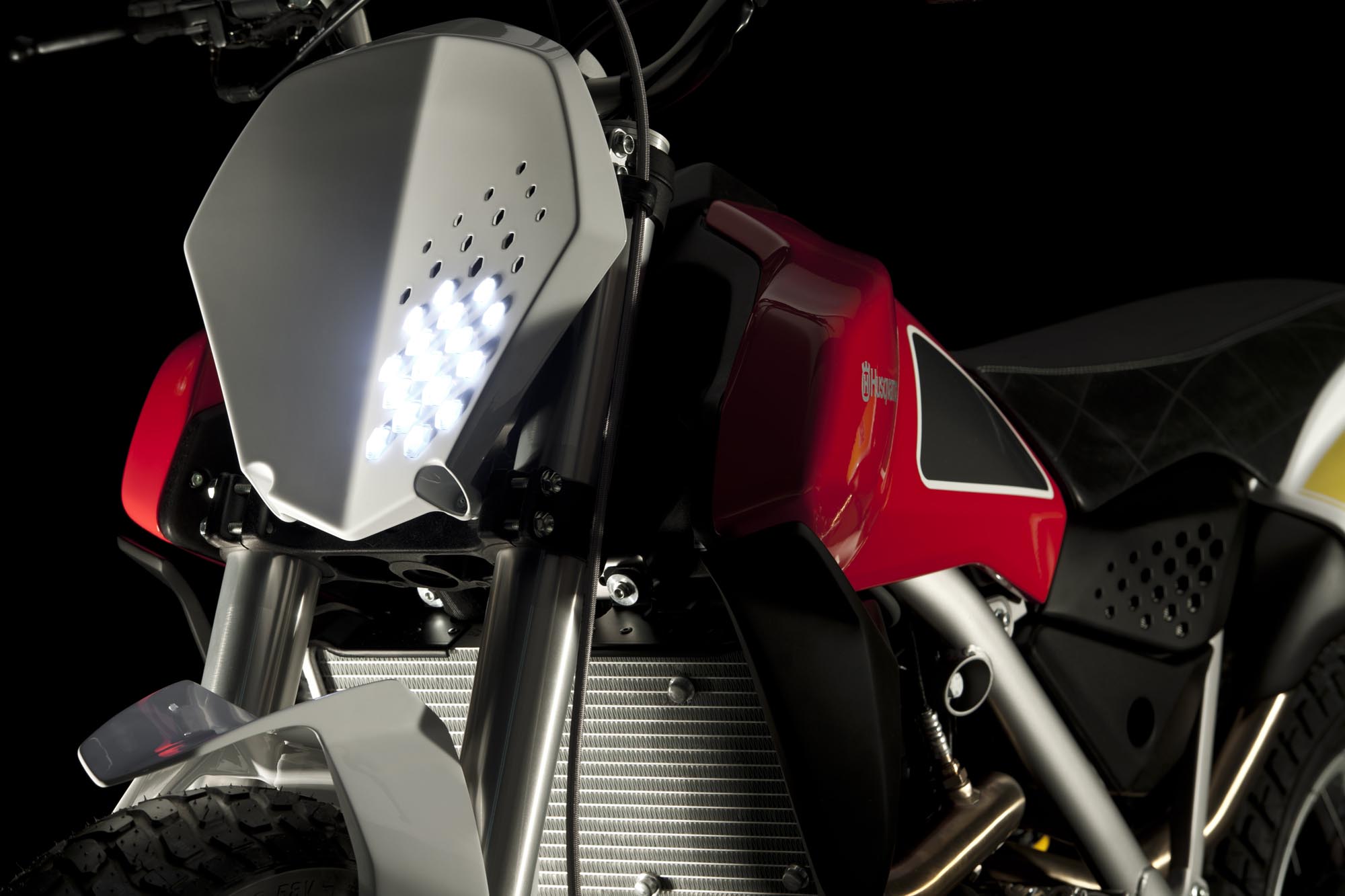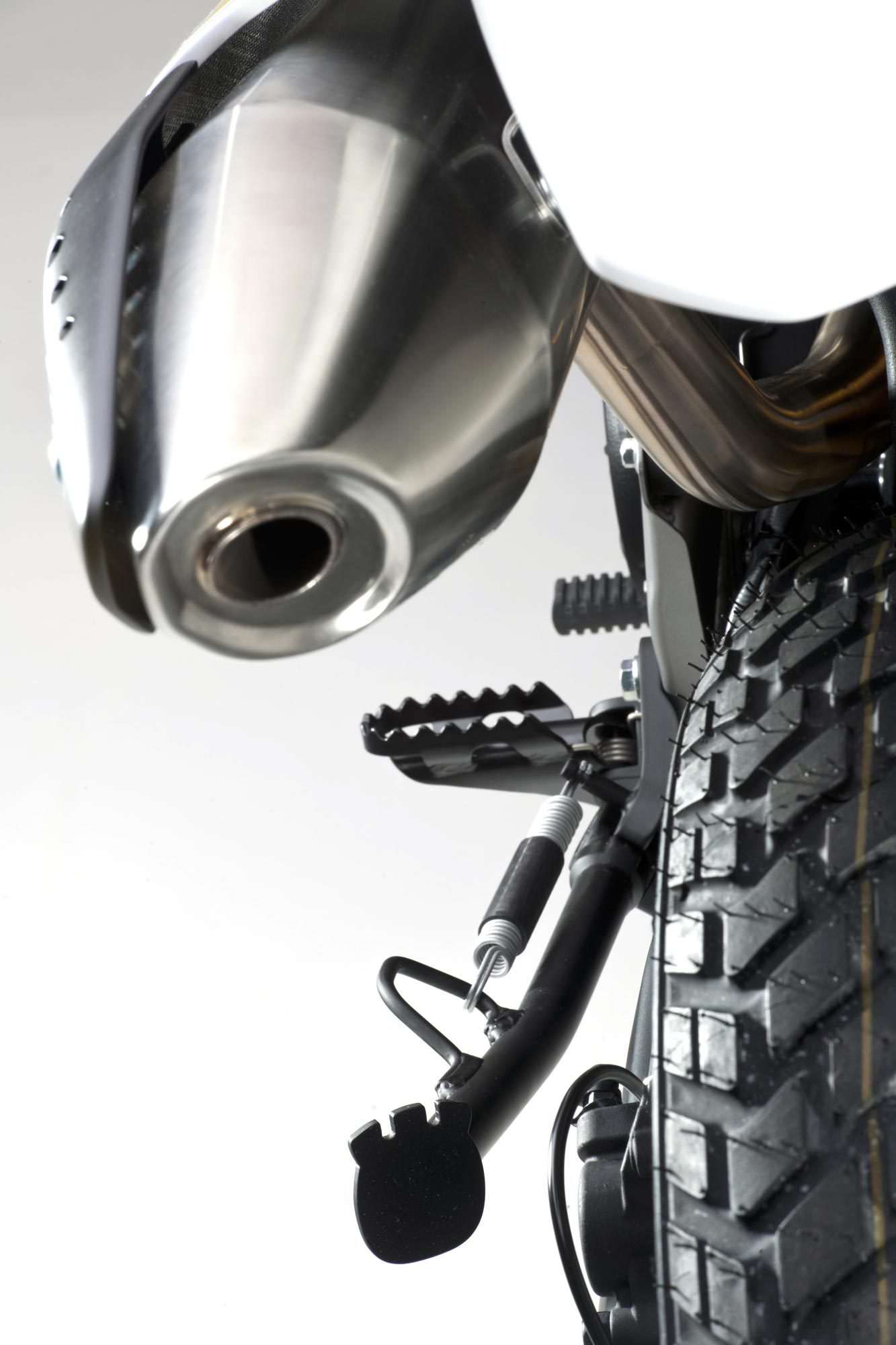 Featuring at 650cc motor with a perimeter-style frame, the Husqvarna MOAB concept also has 17″ wheels that are of course shod with semi-knobby dirt-track style tires. We especially like the LED headlight that has been built into the front number plate. For a completely exposed motor, the Husqvarna MOAB has a surprisingly clean motor display, which adds to the modern-yet-simple look of the bike. This pleases us.