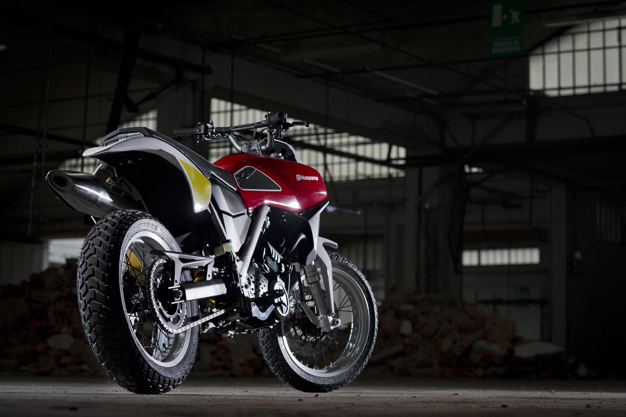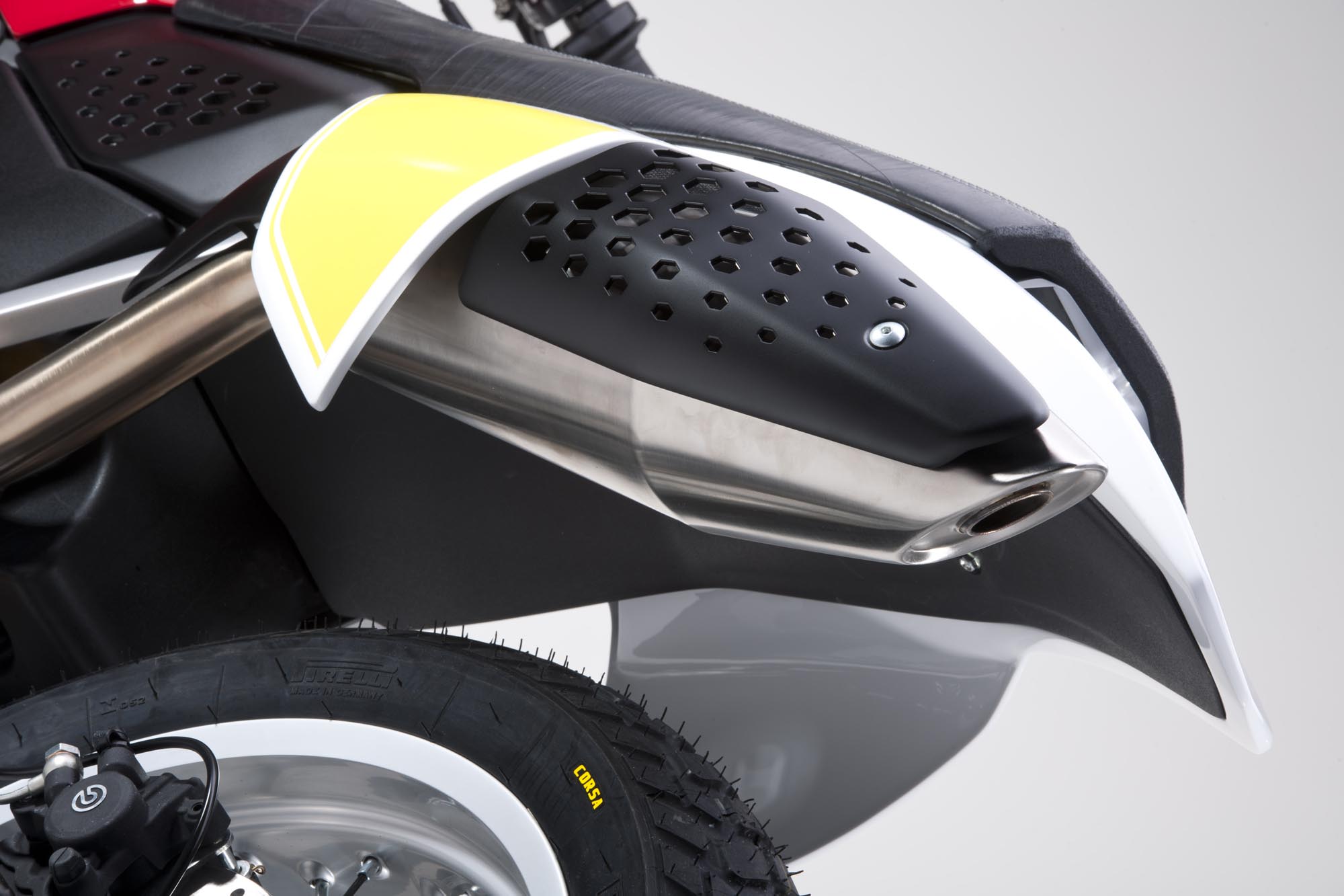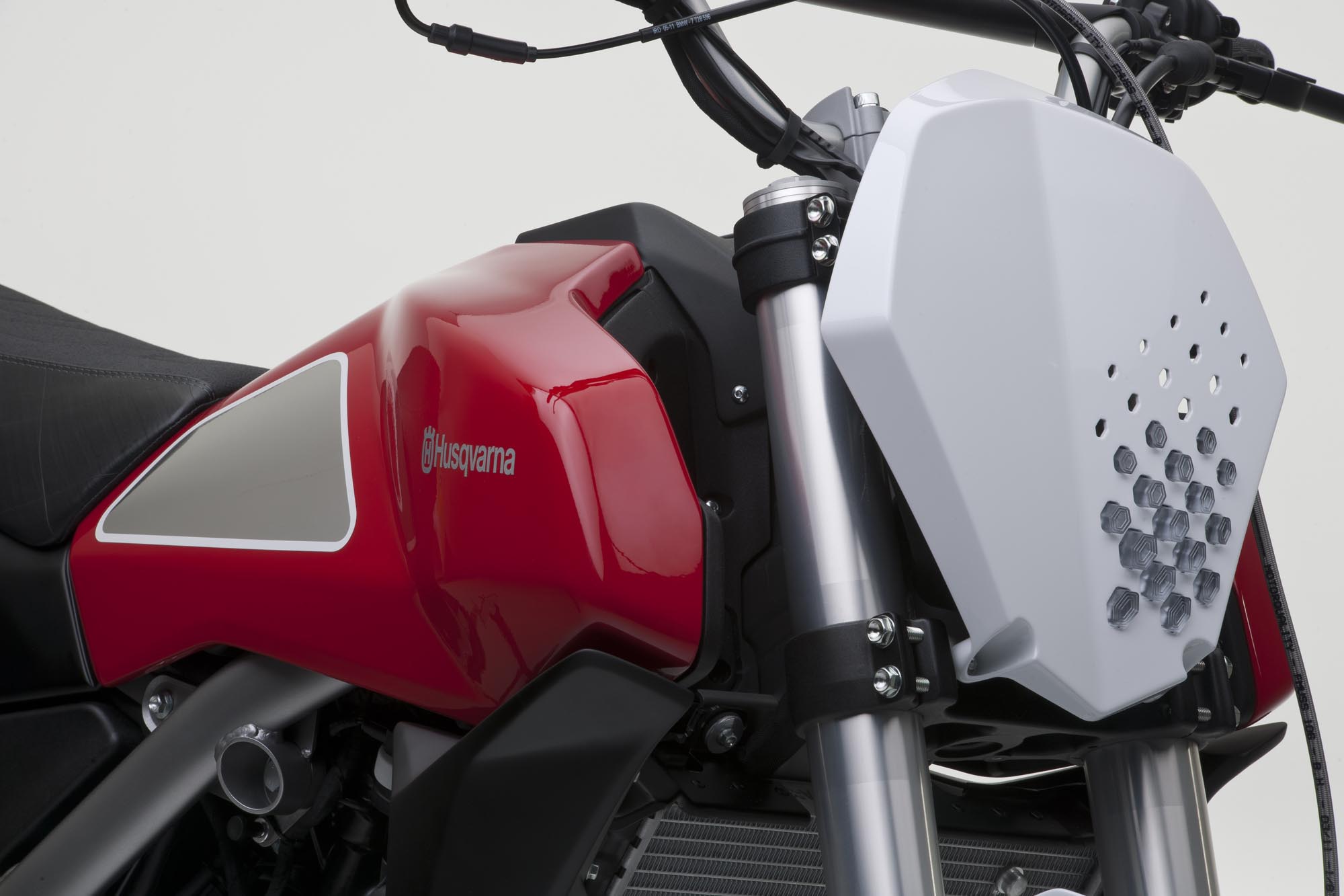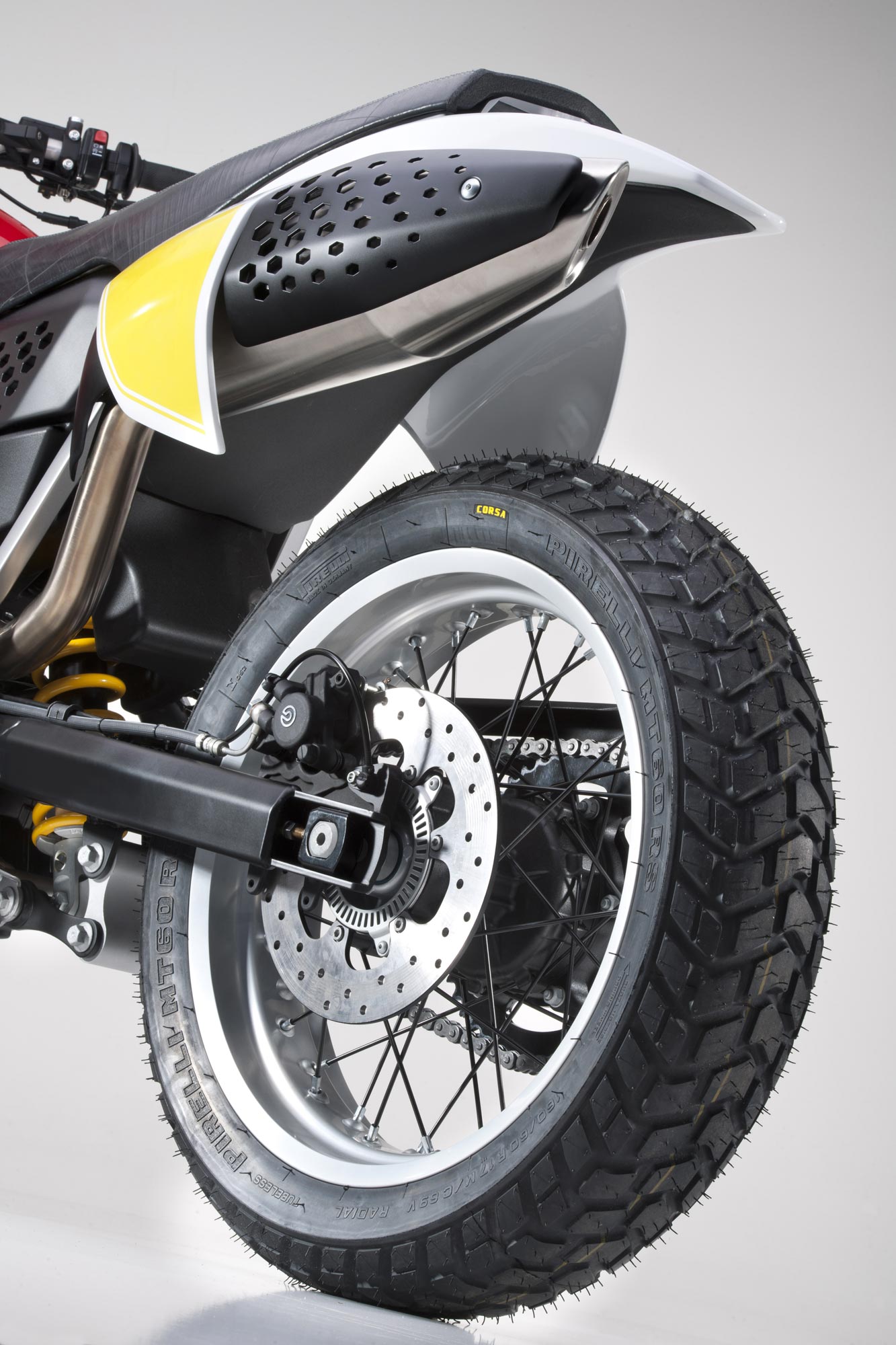 Featuring at 650cc motor with a perimeter-style frame, the Husqvarna MOAB concept also has 17″ wheels that are of course shod with semi-knobby dirt-track style tires. We especially like the LED headlight that has been built into the front number plate. For a completely exposed motor, the Husqvarna MOAB has a surprisingly clean motor display, which adds to the modern-yet-simple look of the bike. This pleases us.