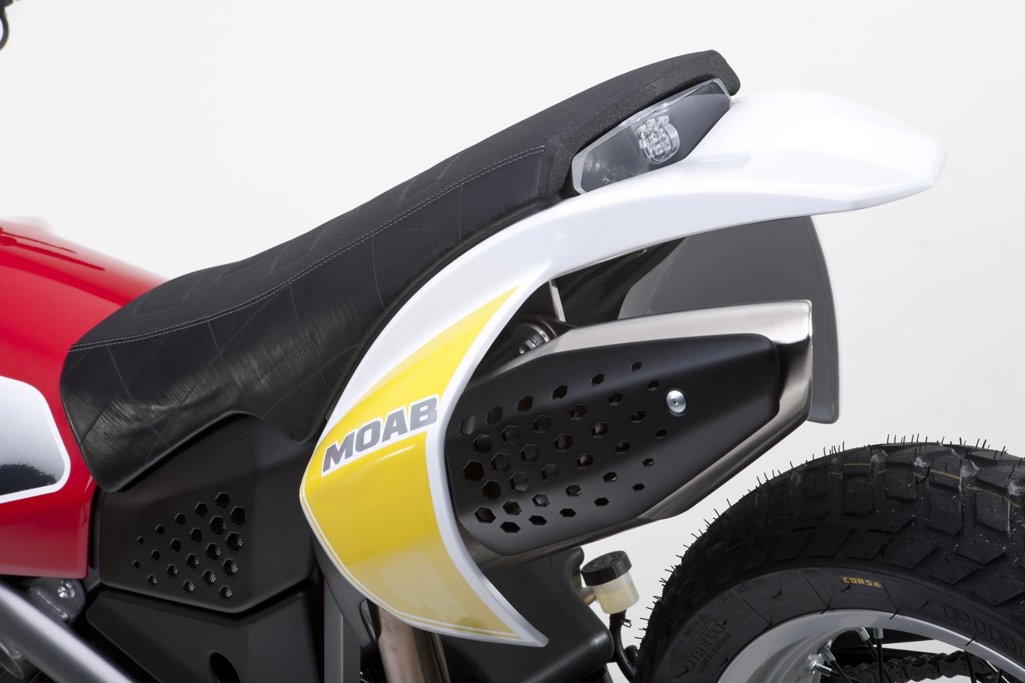 “The red tank, the spacious seat, the yellow side panel number holders, the simple stripped-down frame…these all form the essence of the new incarnation of the Husqvarna spirit,” said the company in its press release. While it is always interesting to see how a group perceives itself, it is perhaps even more telling to hear a company describe what it is trying to change itself into. While many Husqvarna hard-part liners were put-off by the debut of the Husqvarna Nuda 900, we have a feeling the Husqvarna MOAB concept will strike a chord that is clearly novel, but also true to Husky’s old values.