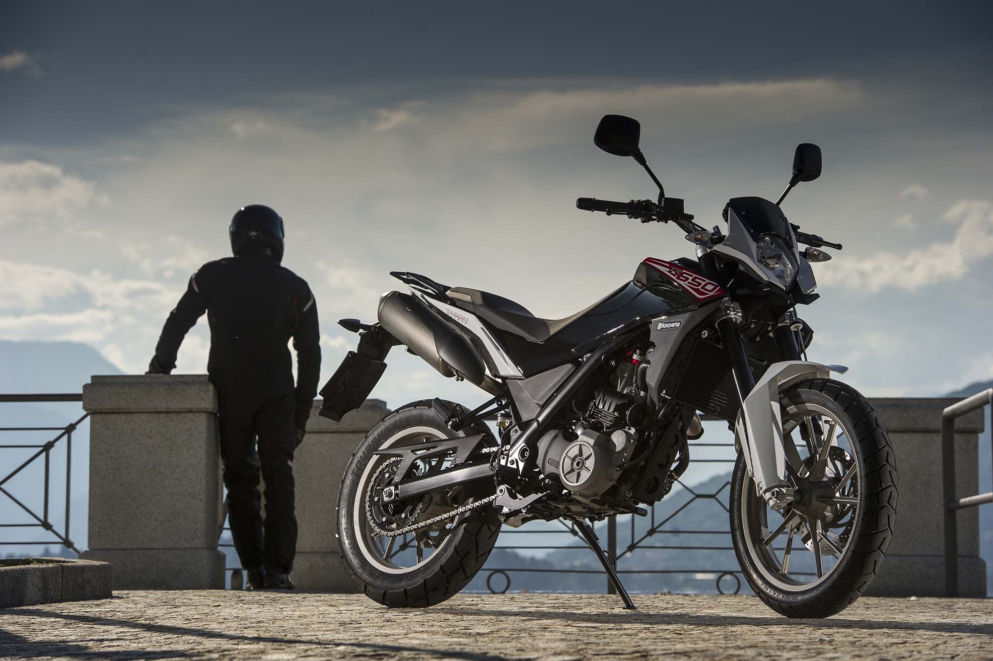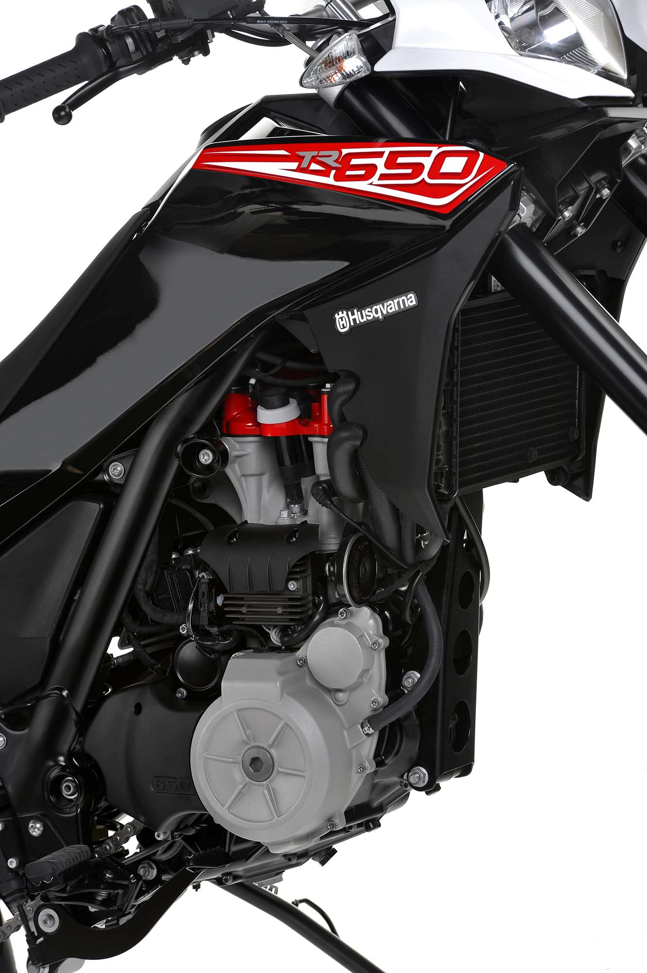 Featuring a 652cc water-cooled single-cylinder DOHC motor, the Husqvarna Strada puts out 58hp and 44.25 lbs•ft of torque (Husqvarna offers a de-tuned version of the Strada with 48hp for countries with graduated license schemes). At 375 lbs dry (414 lbs wet), the Strada has a strong power-to-weight ratio for its class, and is the on-road variant in Husqvarna’s dual-pronged single-cylinder motorcycle attack plan.