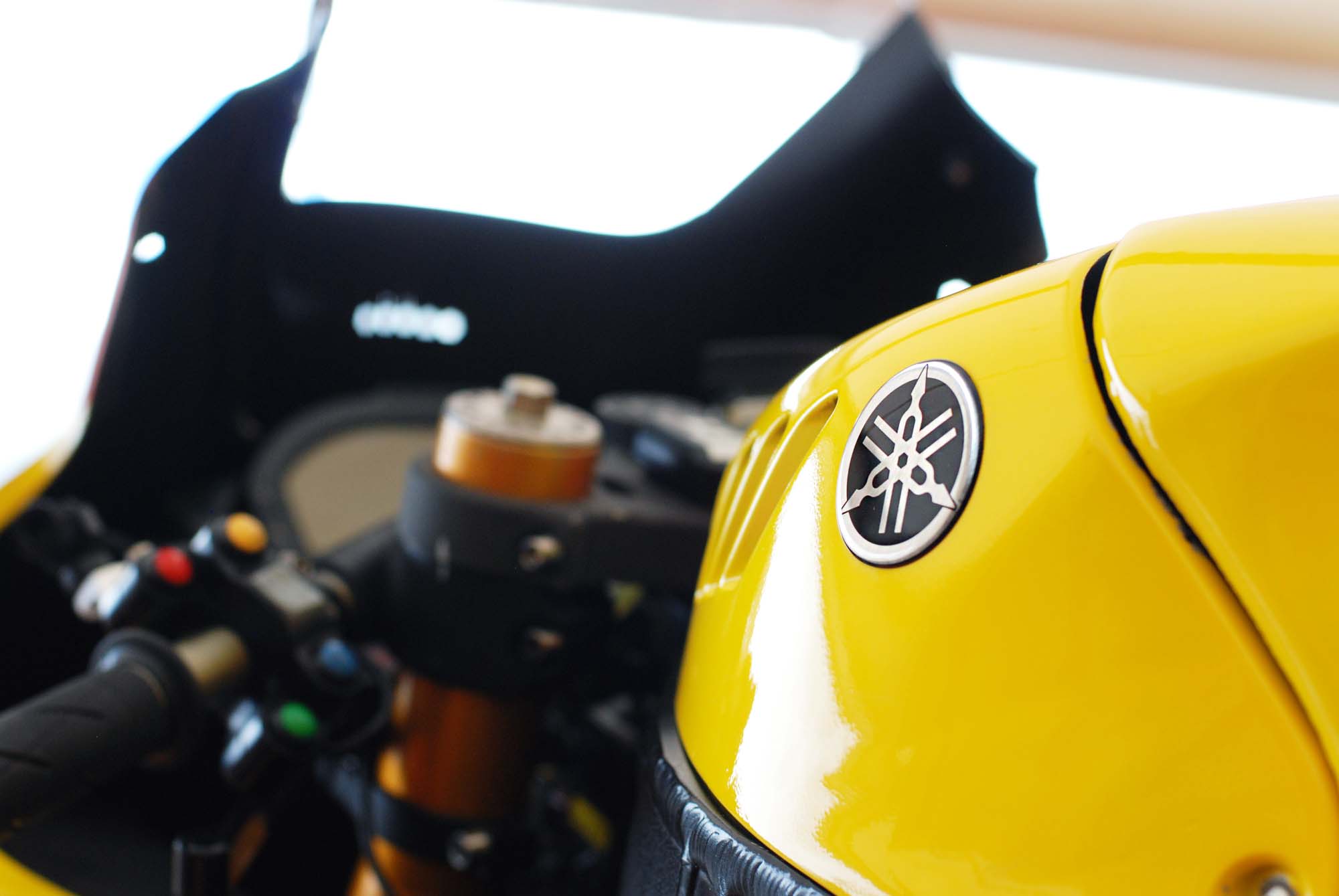 Getting up close with the Swan Yamaha R1, we can see the obvious changes that have been made to the road-going motorcycle to make it a true superbike.