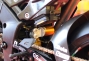 What is most striking though, is the absence of any left-side foot controls. Compensating for Hutchy’s injured leg, the team has transferred the Swan Yamaha R1’s shifter to the right-hand side of the bike via a clever rod system, thus replacing and eliminating the rear-wheel foot brake.
