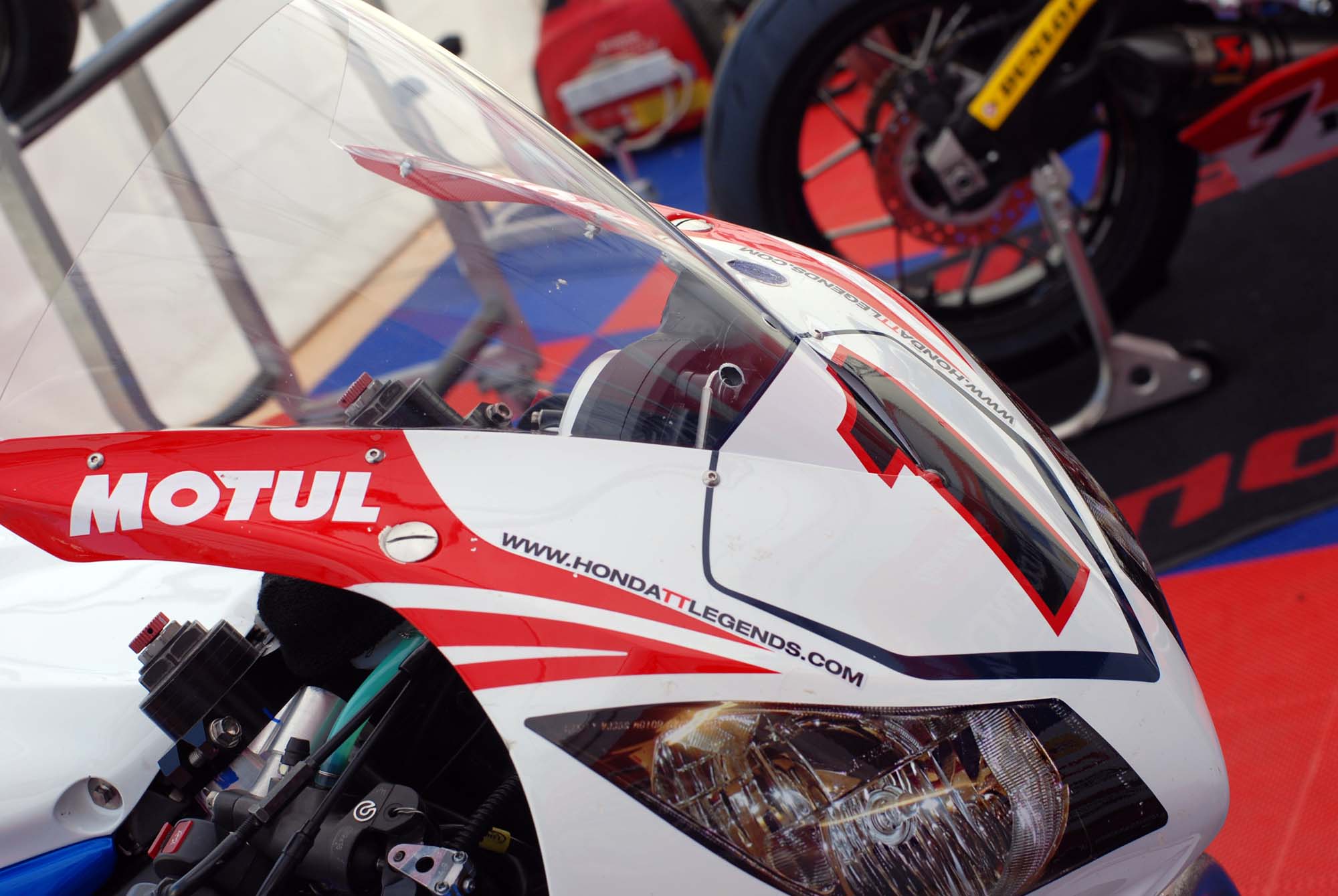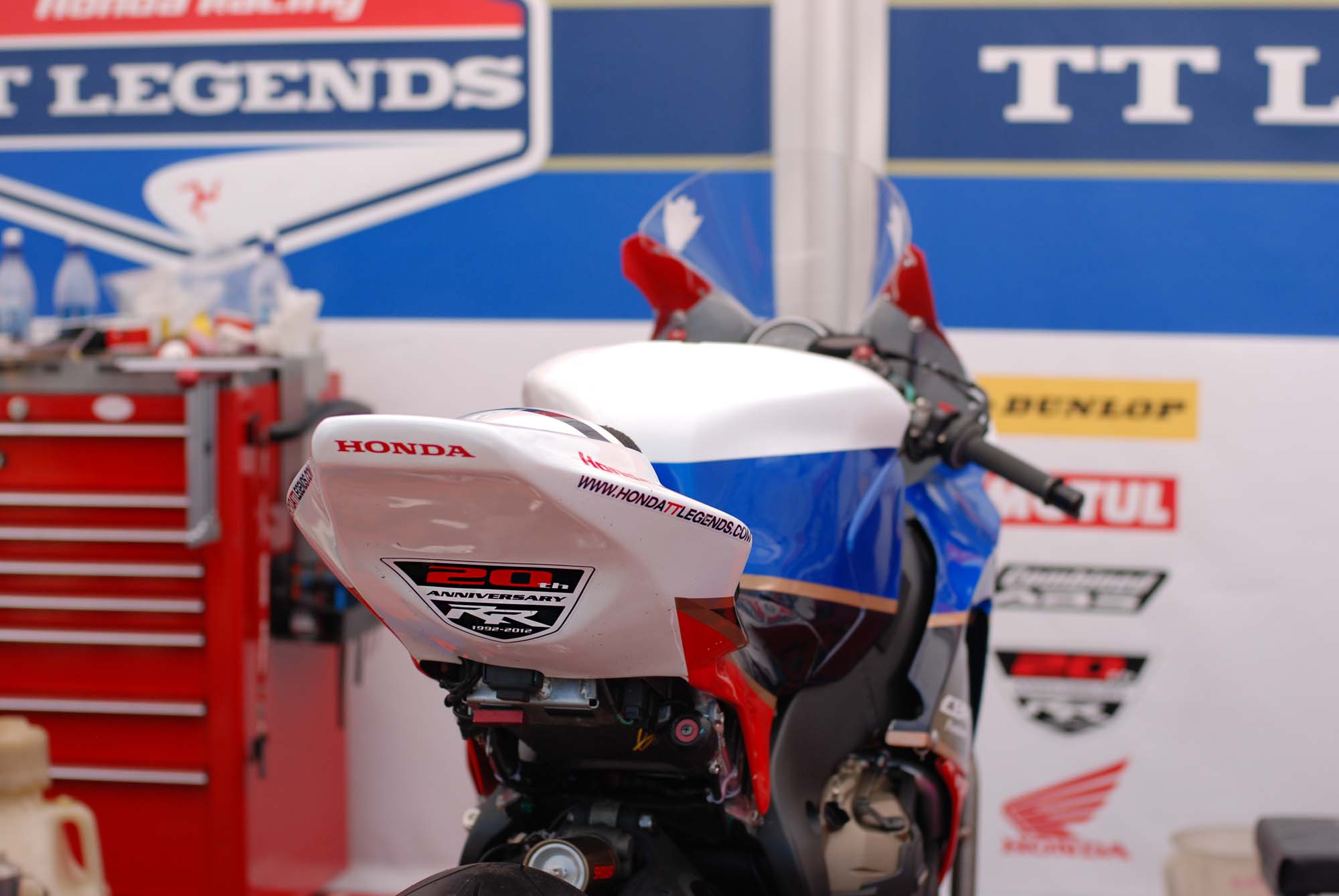 Looking at the bikes of the other teams, what is most striking about McGuinness’s ride, aside from its drool-worthy livery homage to the Honda RC30, is how stock the bike appears. Sure, there is a heavily massaged and tuned motor underneath that bodywork, and the bike’s top-shelf brakes, wheels, and quick-shifter are readily apparent, but for a bike that any racer would kill to ride, the Honda TT Legends CBR is rather unassuming, as is its portly rider. Maybe that is how they like it.
