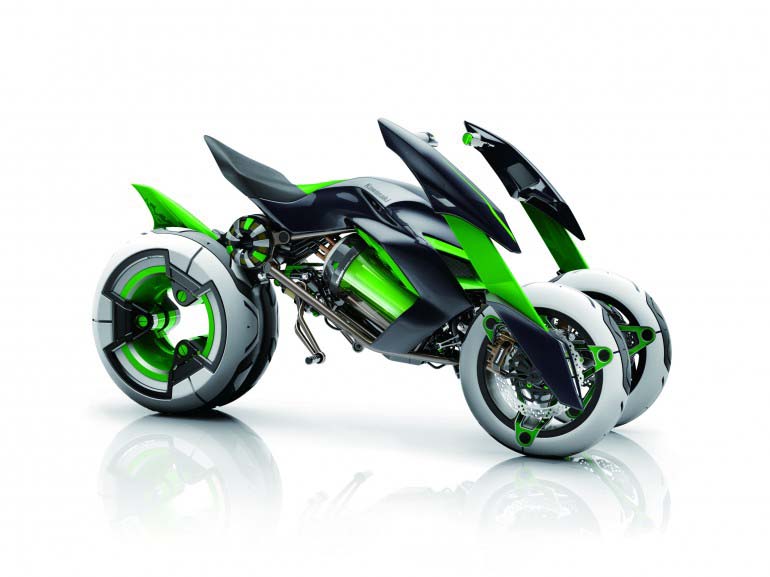 Sometimes we like our concept motorcycles to be funky, and the Kawasaki J Concept certainly delivers in that department. Debuting at the Tokyo Motor Show a vision on what the future of motorcycling could become, the Kawasaki J is an electric trike/quad with a variable riding position/chassis configuration.