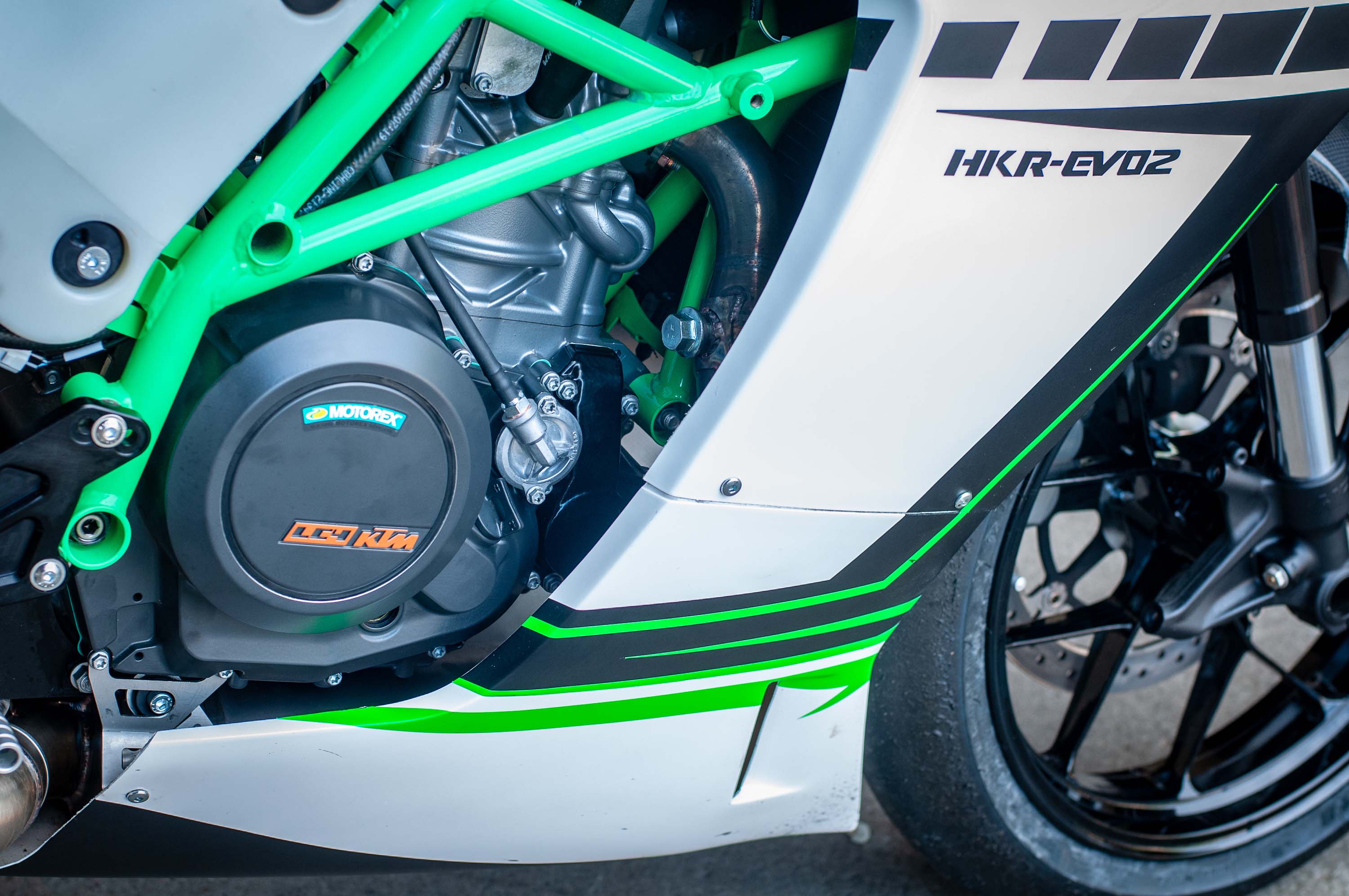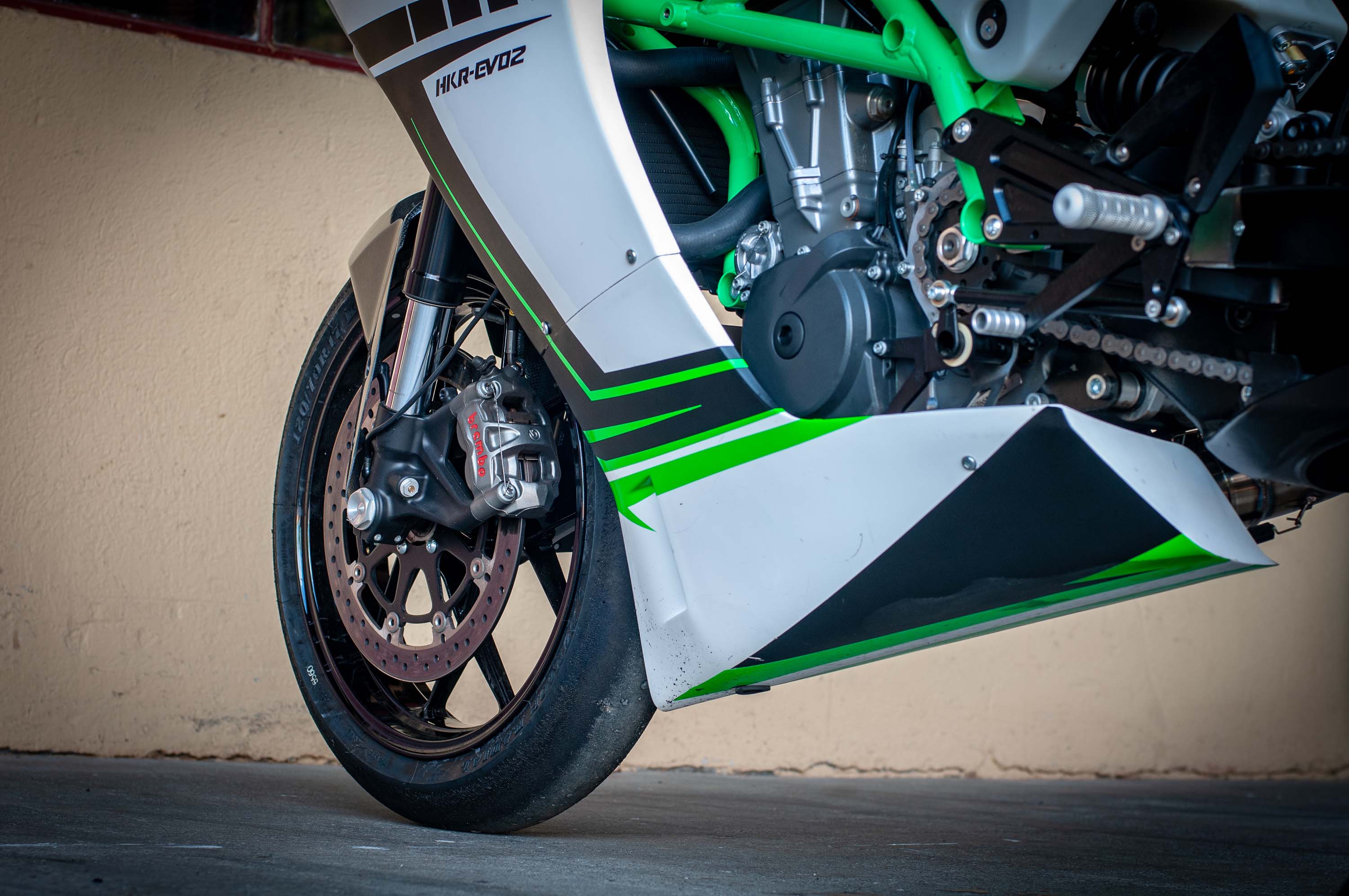 In the USA, the Krämer HKR EVO2 S is a 75hp machine, with cast wheels, and single 320mm front brake disc; whereas the Krämer HKR EVO2 R makes 81hp, comes with forged aluminum wheels, and has dual 290mm discs up front.