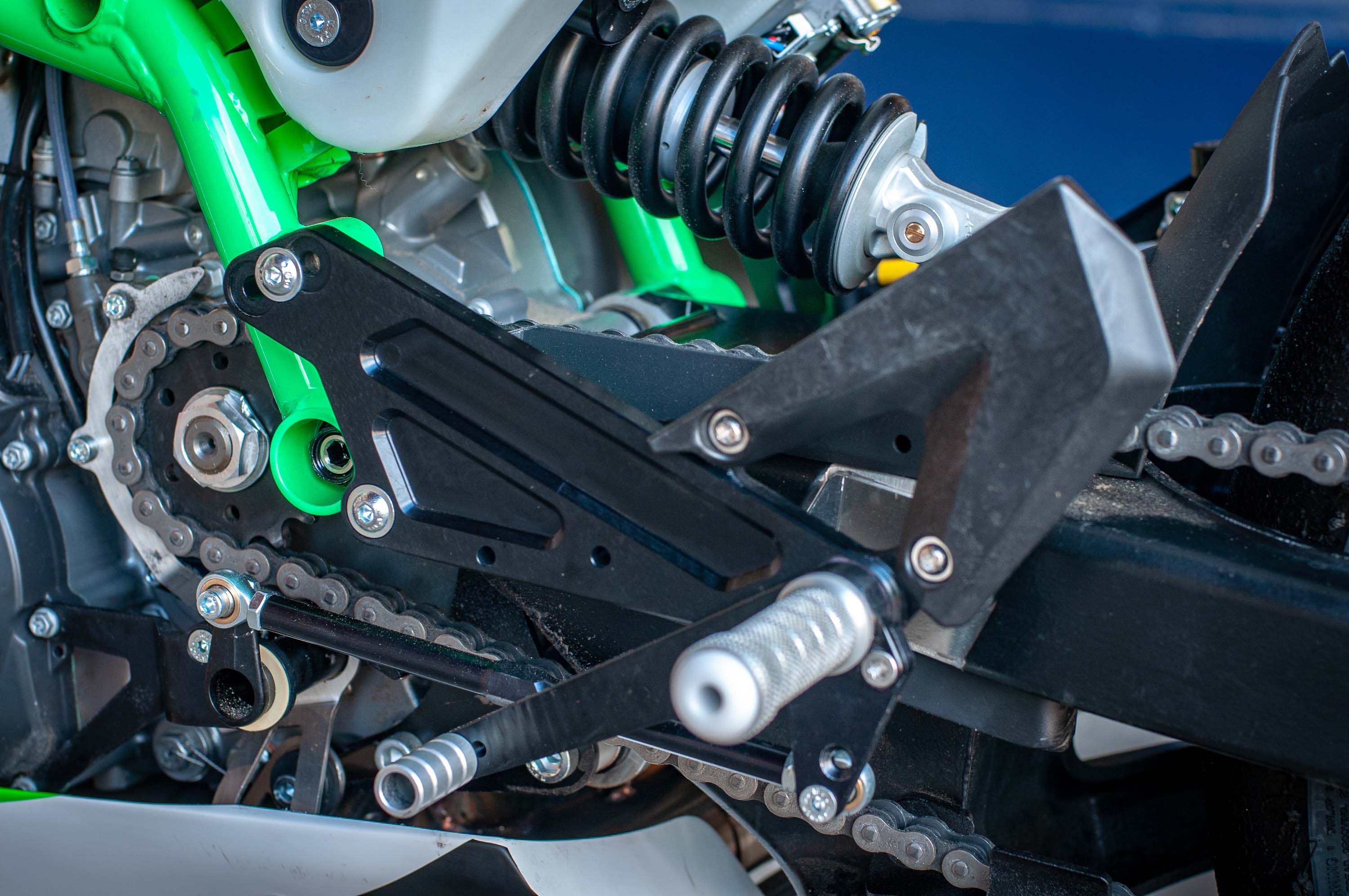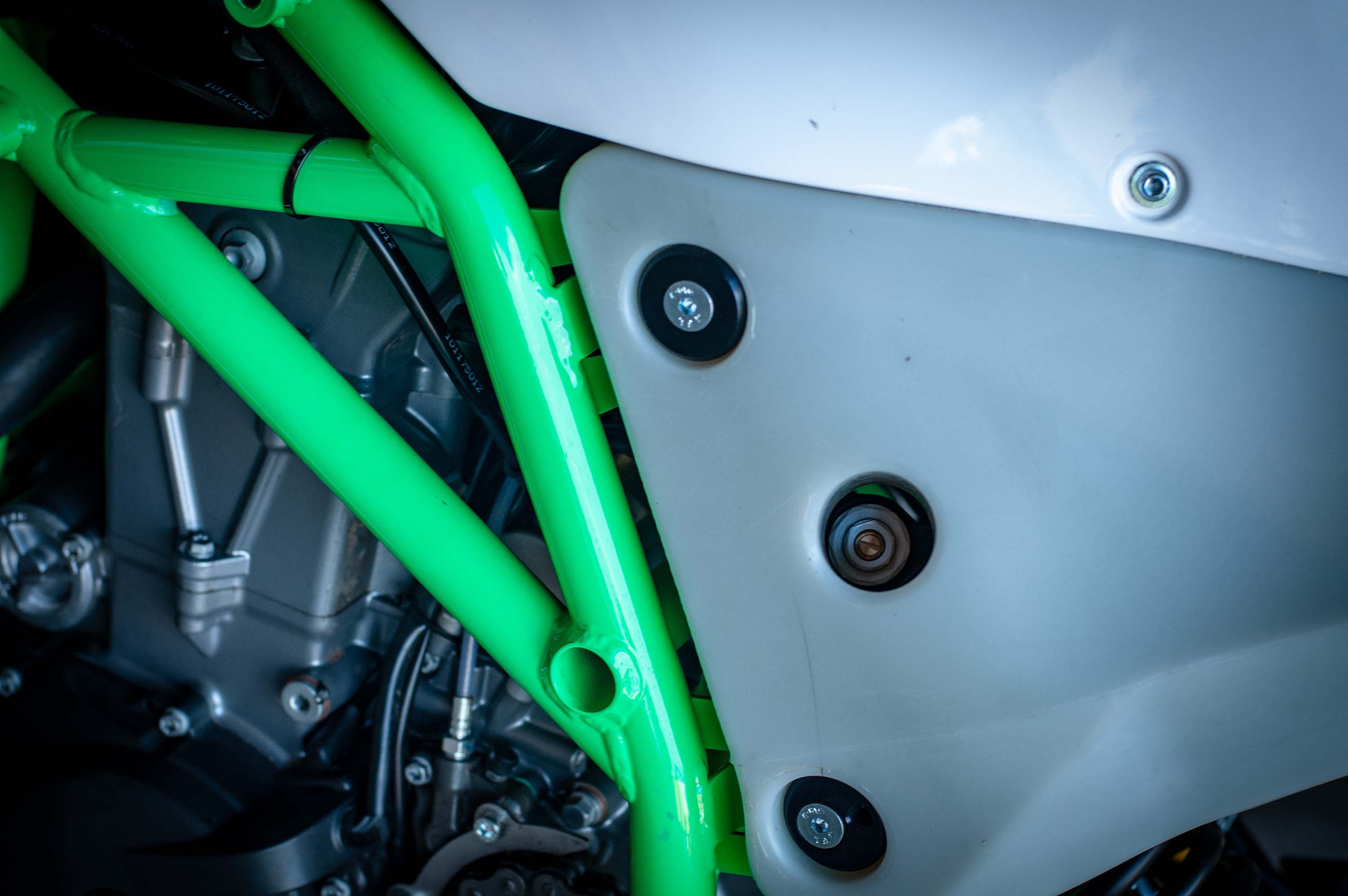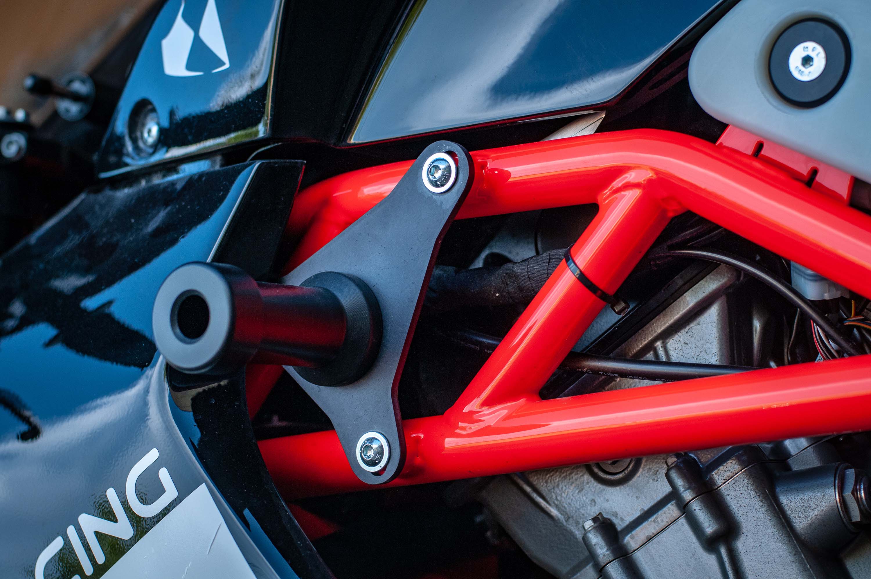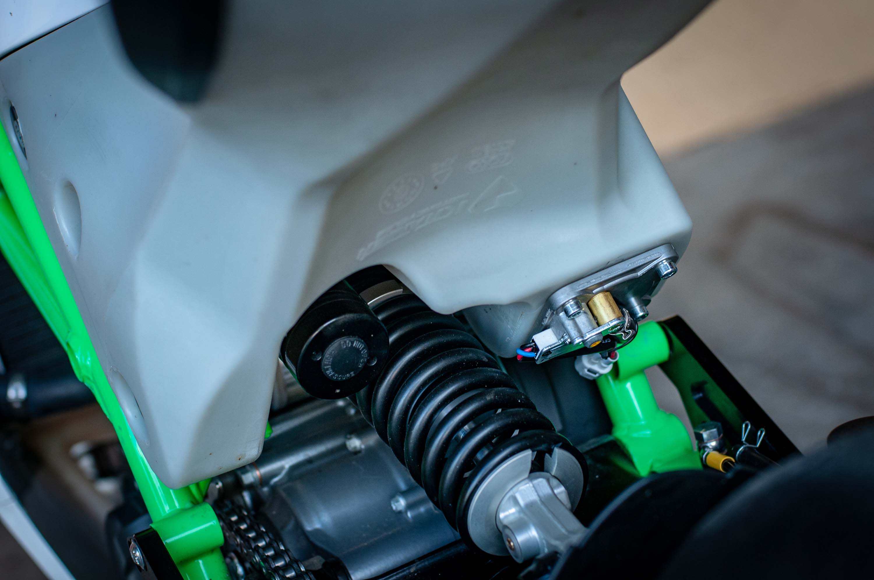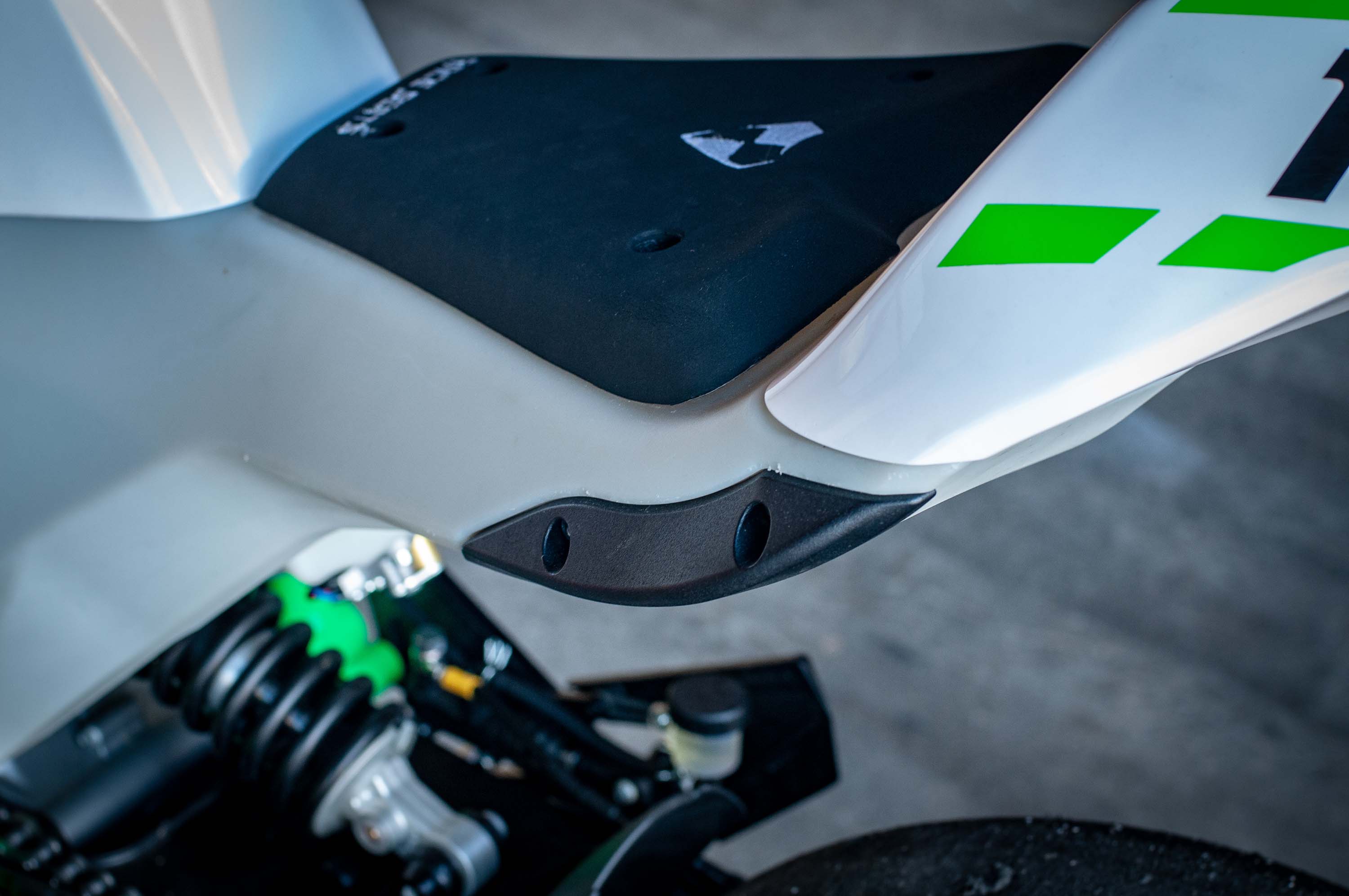 The real tasty part about the Krämer HKR EVO2 though is the attention to detail and the purposefulness of its design – take for instance the 12-liter XPE plastic fuel tank that doubles as a subframe, which has integrated crash sliders, and a sighting hole for easy adjustment of the rear shock damping.