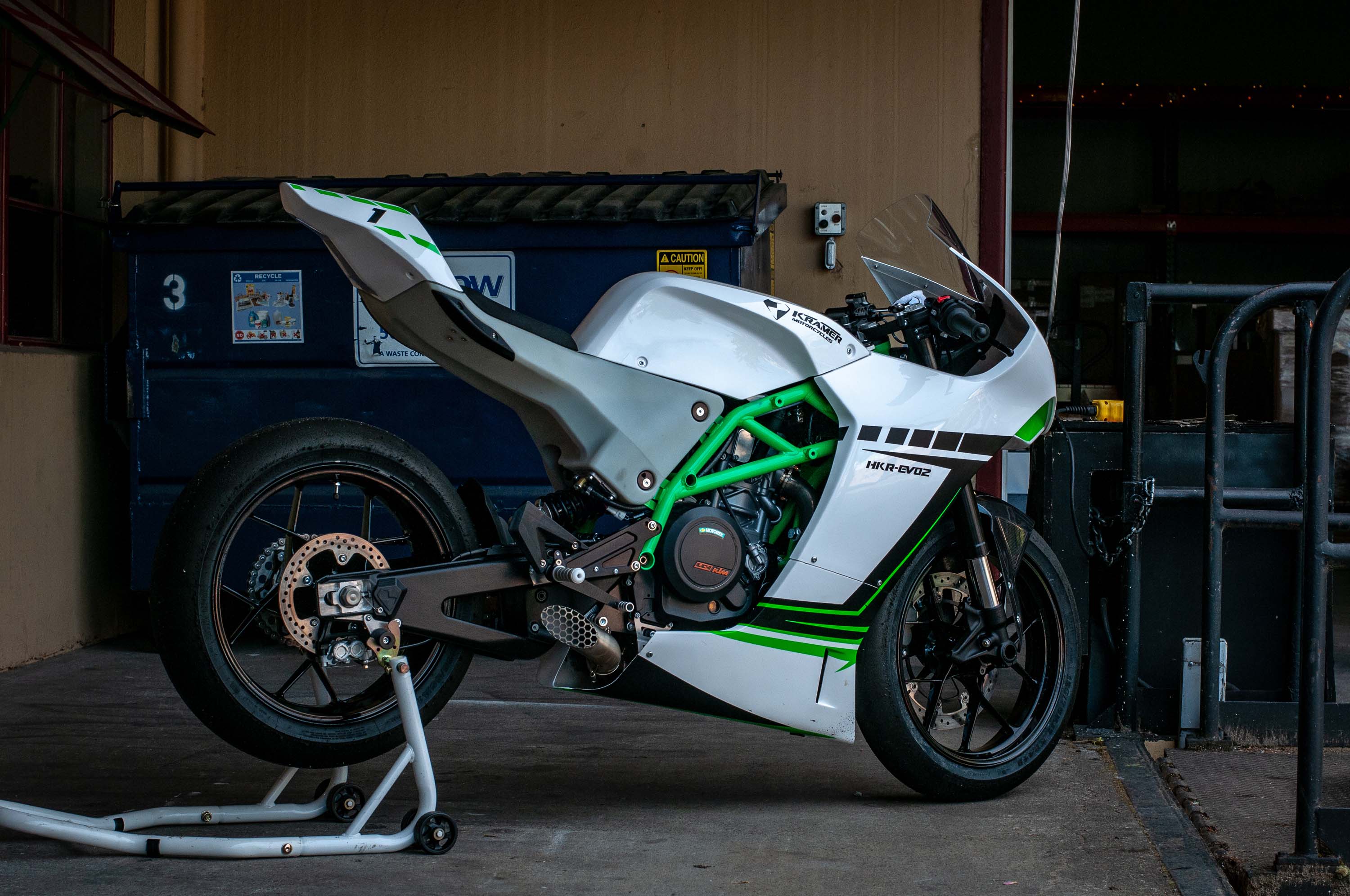 Starting life out as a KTM 690 Duke in RC8 clothing in 2009, the HKR EVO was designed to race in the SuperMono classes that were popping up in Europe. Honing the design into a weapon, the HKR EVO2 was born, as was Krämer Motorcycles in Germany in 2014.