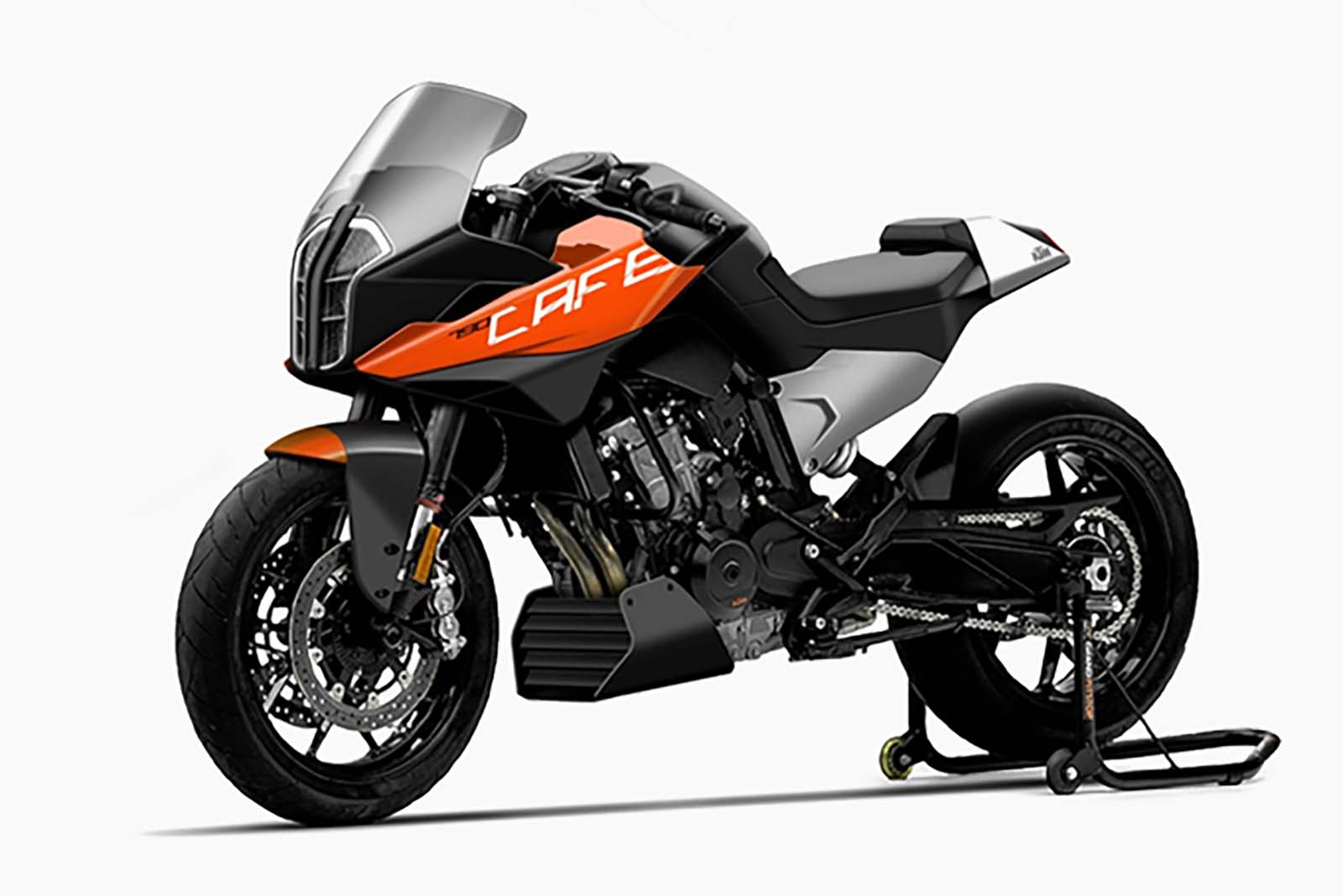 We know from investor documents that KTM has more 790/890 bikes in the pipe, the most likely of which is a 17″ shod SMT version with long-travel suspension. But, what if the company had a neo-café racer in mind?