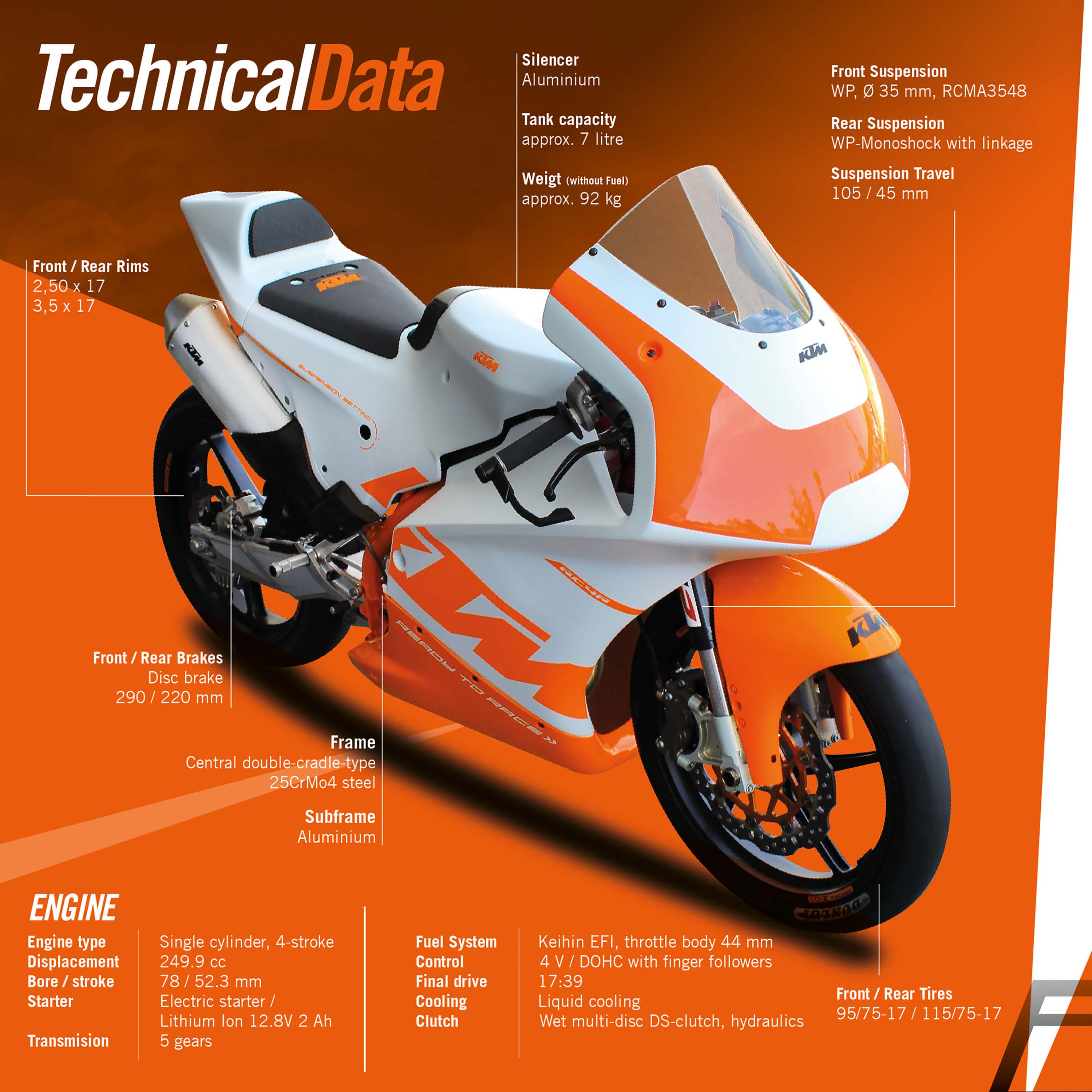 Complete technical specs are still being formed for the series, but KTM has released the graphic below explaining some of the RC4R’s technical aspects.