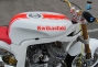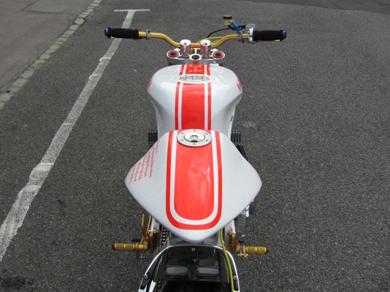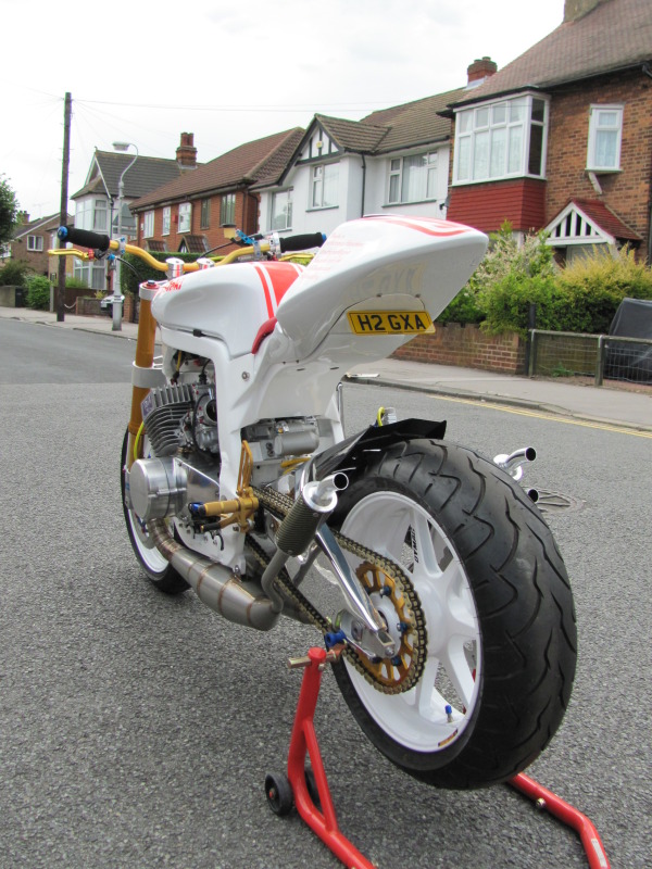 While everyone is busy trying to murder out every piece of their motorcycles with the darkest shades of dark (quick diversion: has anyone noticed how the OEMs are all finally catching onto the styling trend?), cabbie is going the other way with his design: all white everything. The result is a bright and eye-catching bike, and oh…check out those three gorgeous two-stroke exhaust pipes. We’d write more, but we’ve soiled ourselves. More photos after the jump.