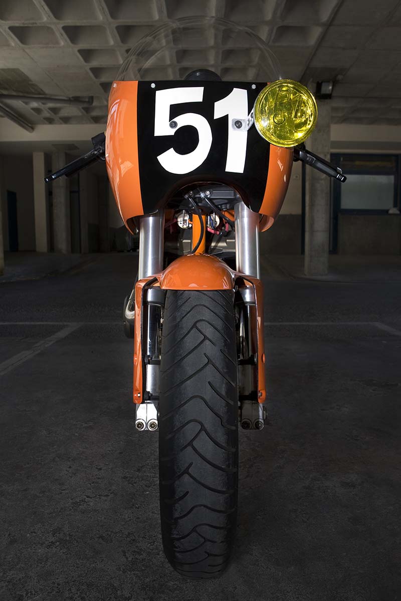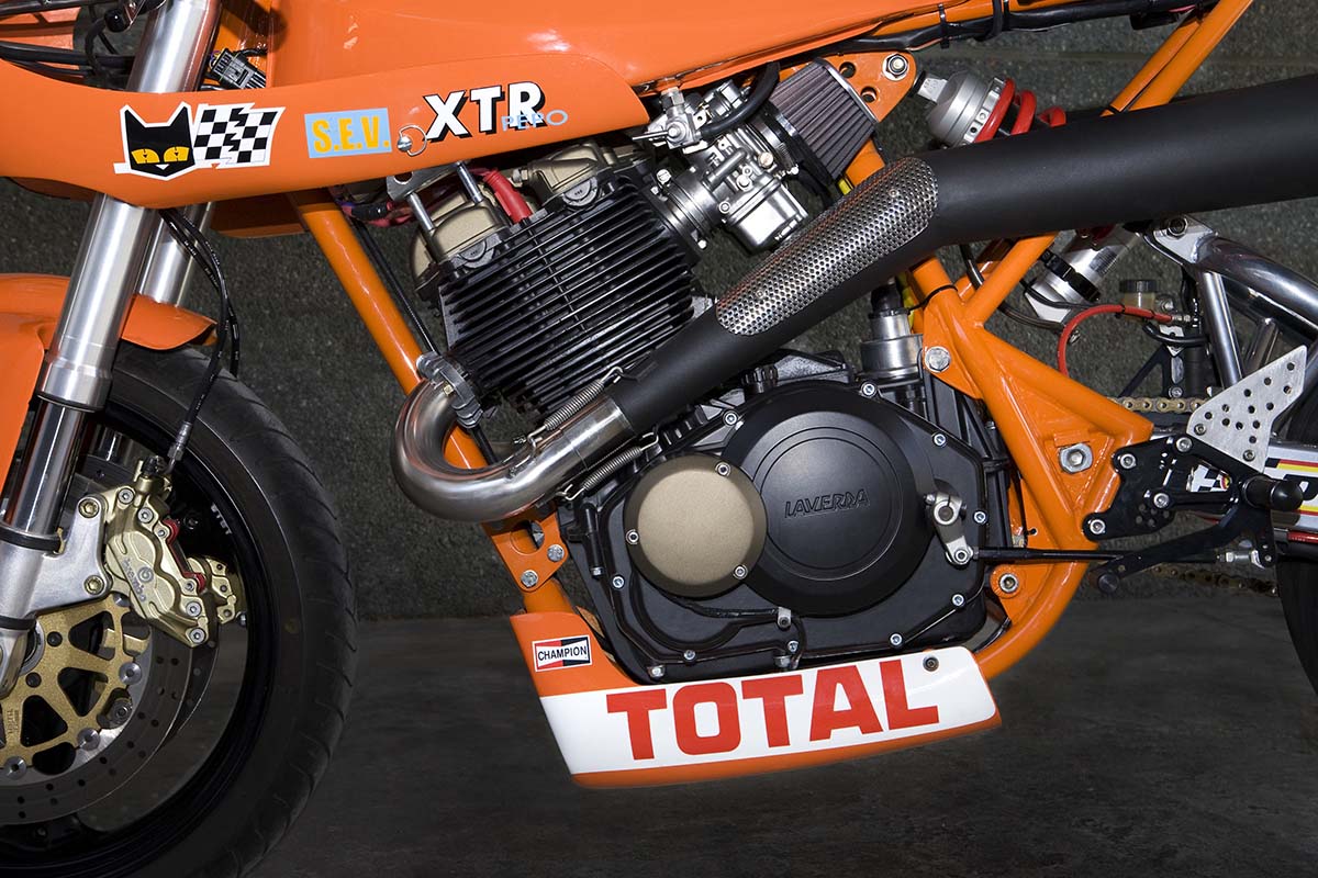 While there are a number of Laverda parts in the build, if you look closely at XTR Pepo’s Monty, you will see the swingarm from a Suzuki Bandit, front forks from a Ducati Monster, a GSX-R600 clutch lever, and Honda CBR600RR footpegs — all in the name of continuing of XTR Pepo’s motorcycle pick-and-pull build style.