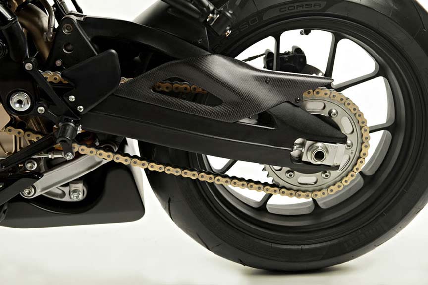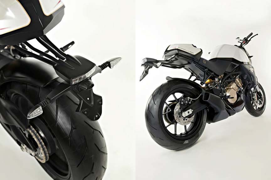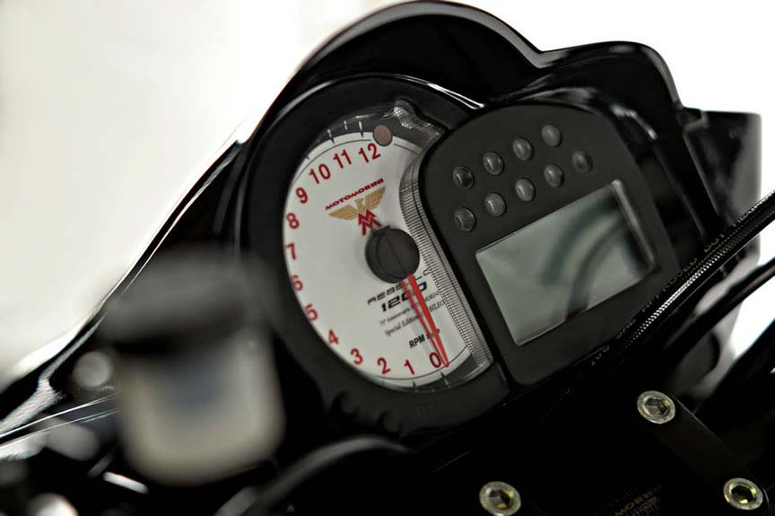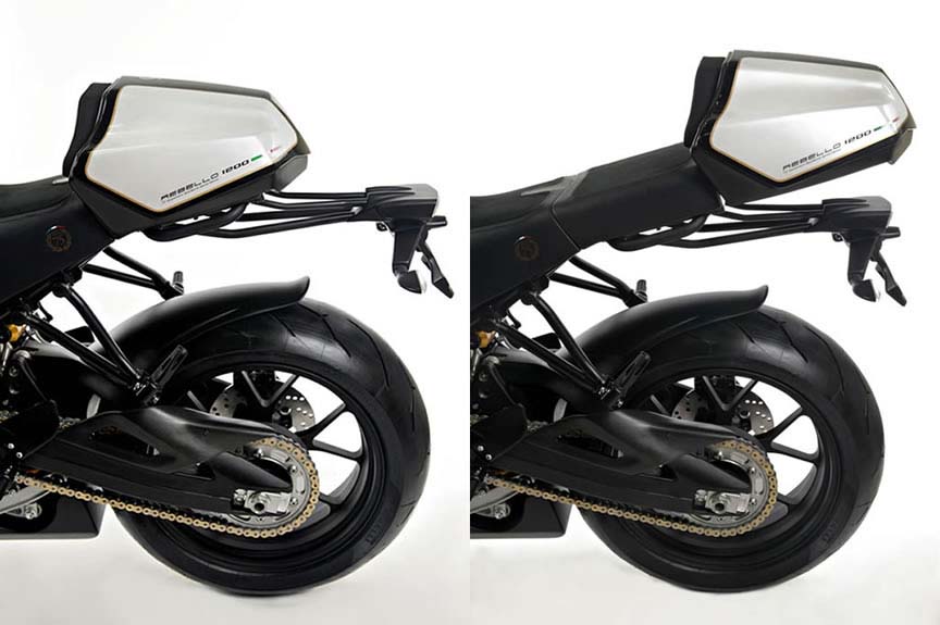 Easily our favorite detail is the unique “electric moveable saddle” that takes the Rebello 1200 Giubileo from monoposto to biposto with a simple flick of switch, while maintaing the bike’s rear-cowling look. It would seem gone are the days of having to remove a rear seat cover, or swapping out a rear cowl for a padded seat. Molto bene.