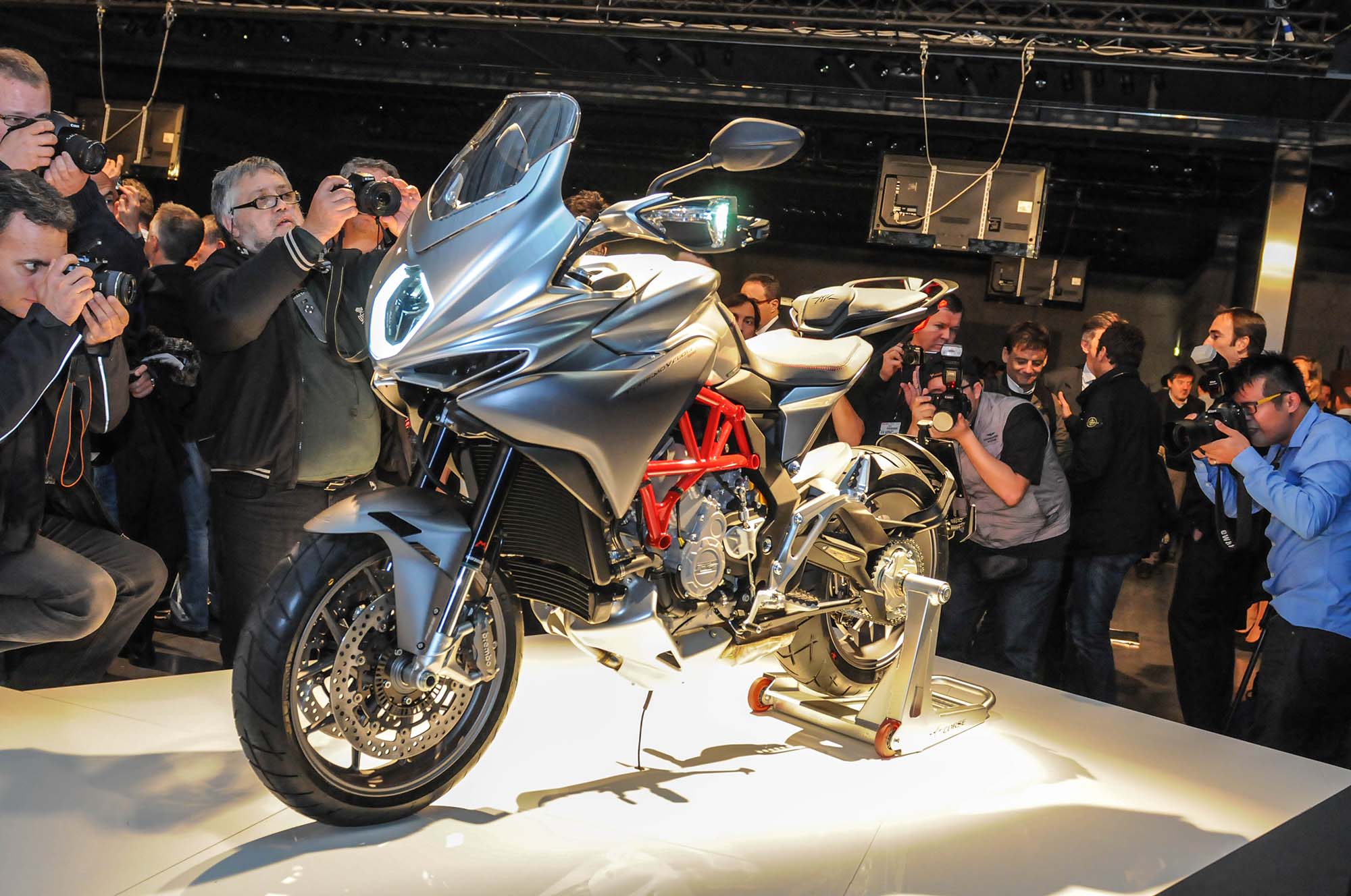 MV Agusta’s big announcement at the 2013 EICMA show was of course its new sport-tourer, the MV Agusta Turismo Veloce 800. Based around the Italian brand’s 800cc three-cylinder engine, the Turismo Veloce is a big step for MV Agusta, though one taken cautiously both in terms of progress and design.