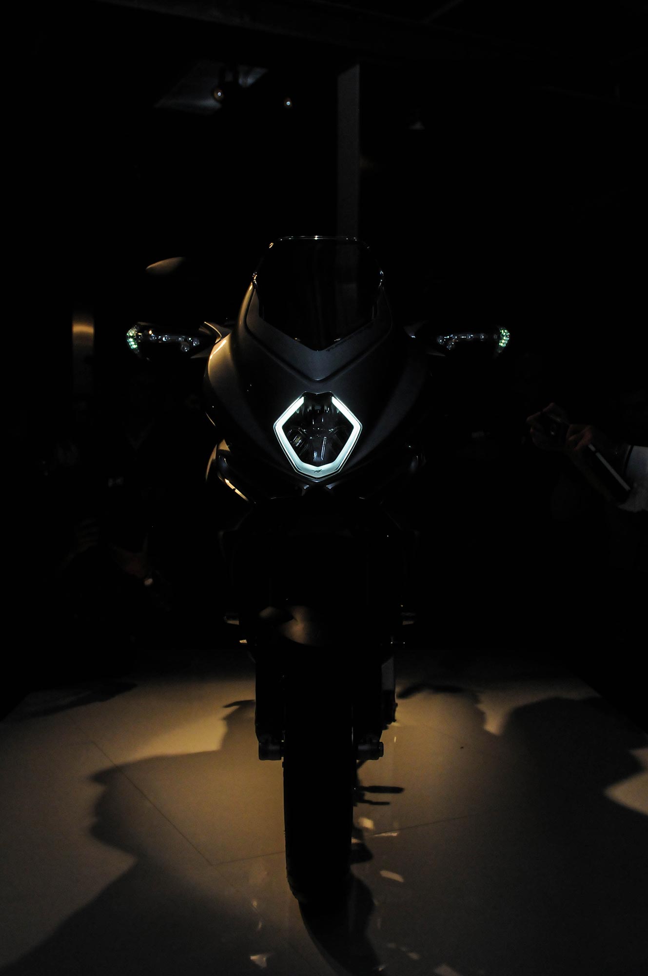 Even though the tail section is a very interesting element, our favorite piece is the LED illuminated headlight. The tastefully done halo ring adds dimension to the now iconic MV Agusta headlight shape, and makes for a dramatic effects in low-light situations.