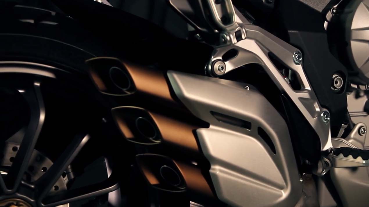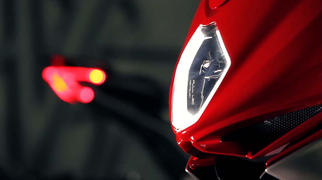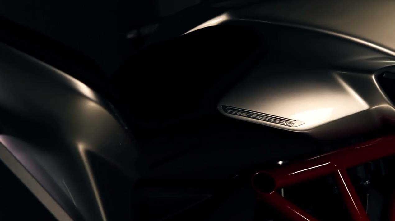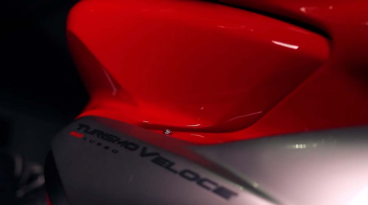 Teasing the new model now in a video, we can get our first glimpse at what MV Agusta has been cooking up back in Varese. Fusing the three-pipe exhaust of the MV Agusta F3 with the squared-off exhaust tips of the MV Agusta F4, MV Agusta has taken many design elements from its other models to make the MV Agusta Turismo Veloce 800 — note the Rivale handguards and signals, for instance.
