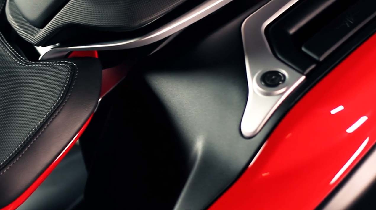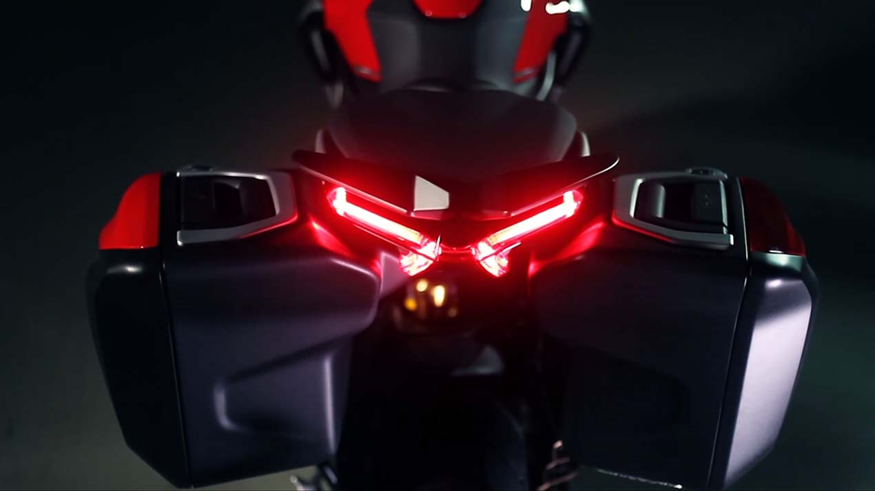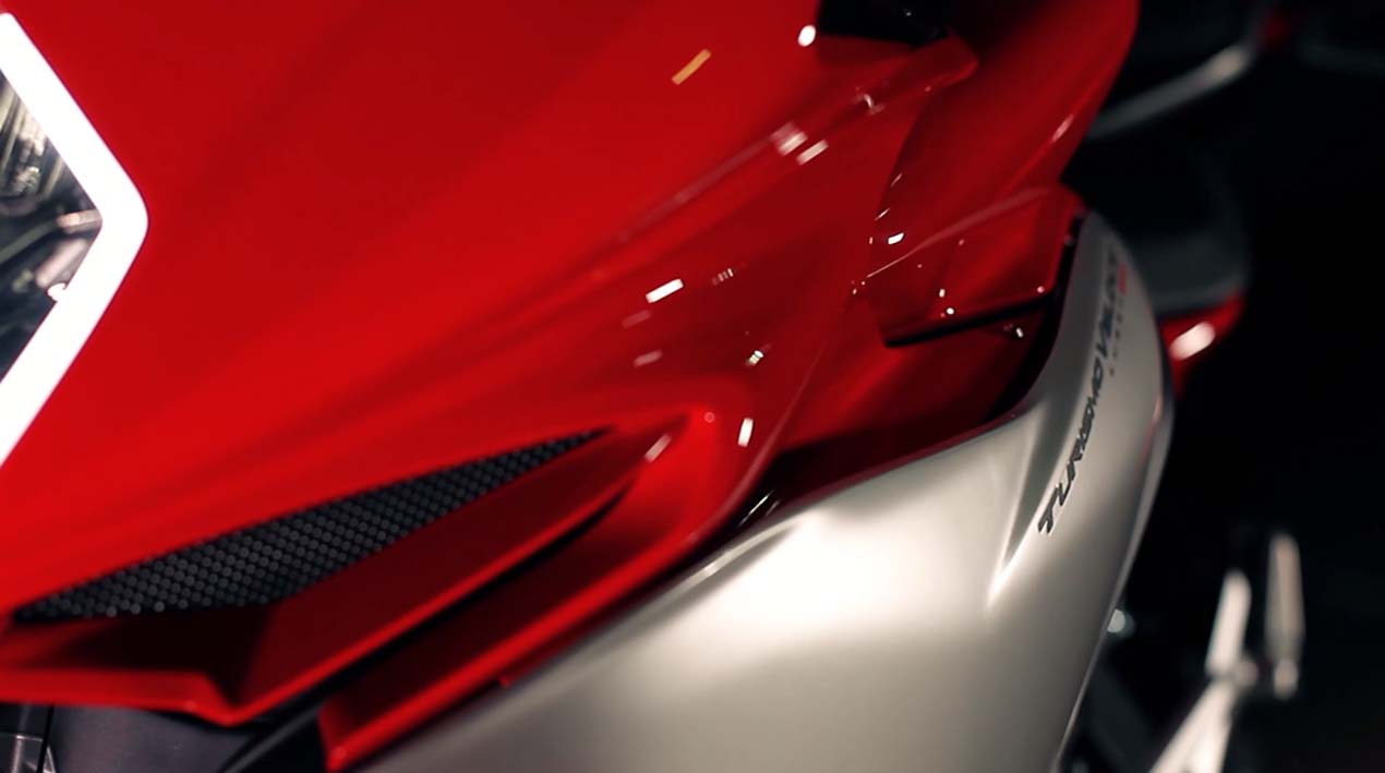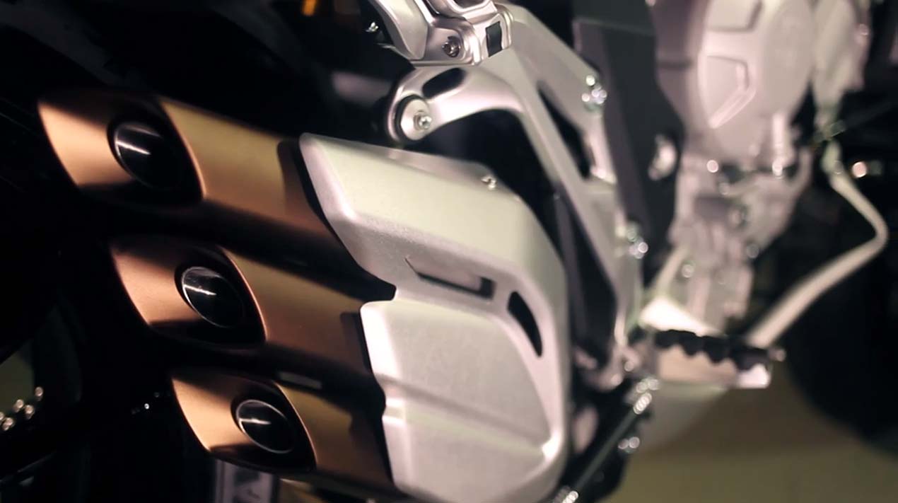 Teasing the new model now in a video, we can get our first glimpse at what MV Agusta has been cooking up back in Varese. Fusing the three-pipe exhaust of the MV Agusta F3 with the squared-off exhaust tips of the MV Agusta F4, MV Agusta has taken many design elements from its other models to make the MV Agusta Turismo Veloce 800 — note the Rivale handguards and signals, for instance.