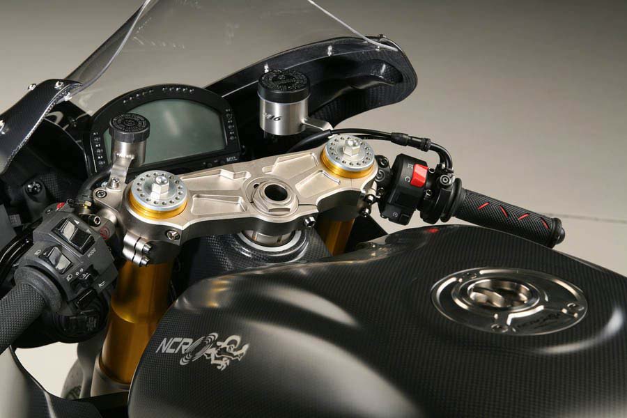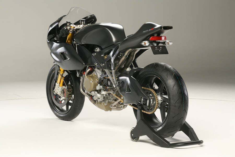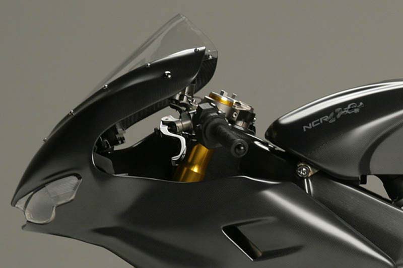 After teasing us last week with just a shot of the motor NCR Millona M16 motor, NCR has finally released full pictures of their take on the Desmosedici RR. Weighting just 319lbs, and making over 200hp at the wheel, we called the NCR M16 a Desmosedici on steroids when we first saw the specs. Now looking at the detail shots of the bike, we see plenty to drool over. Photos and more after the jump.